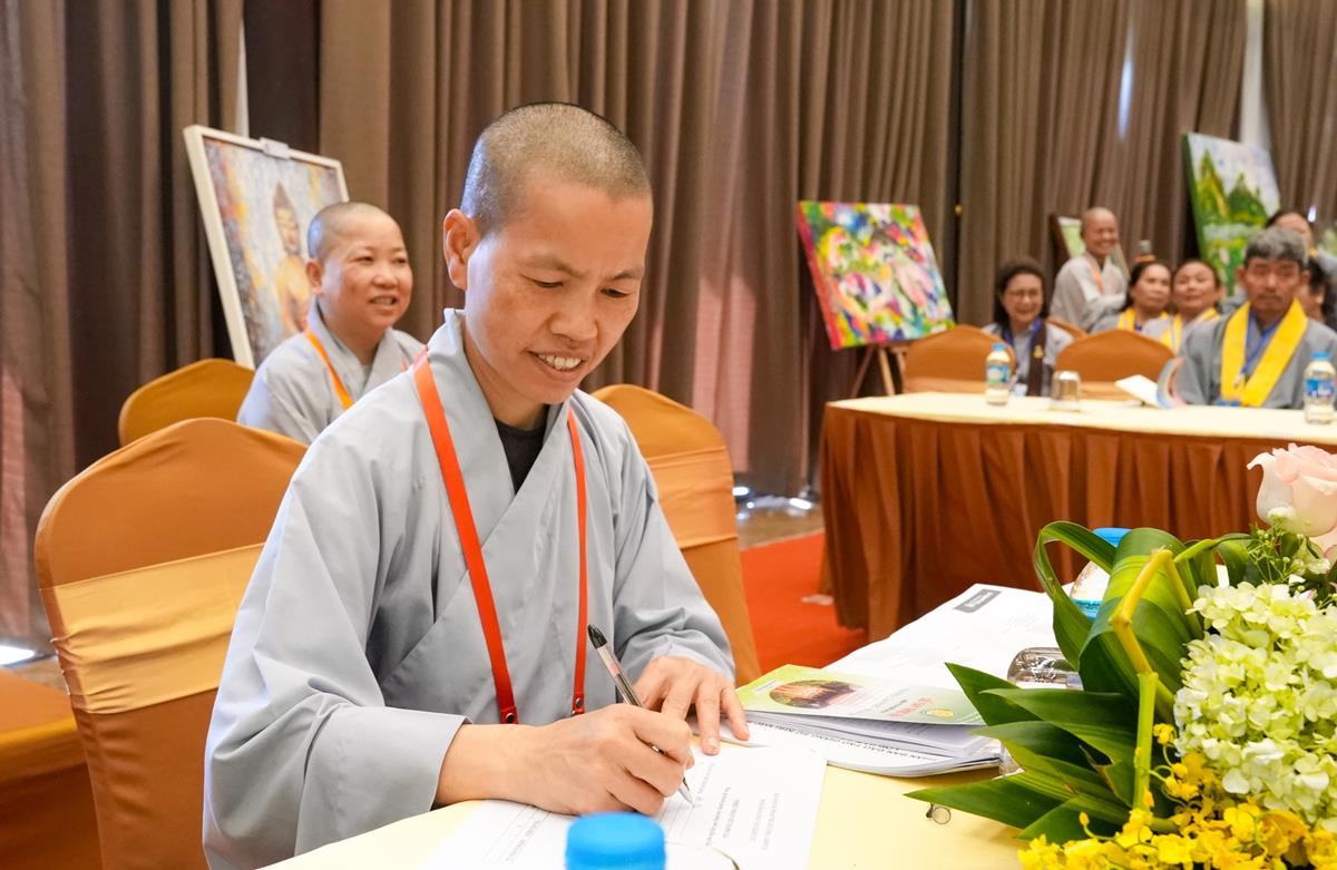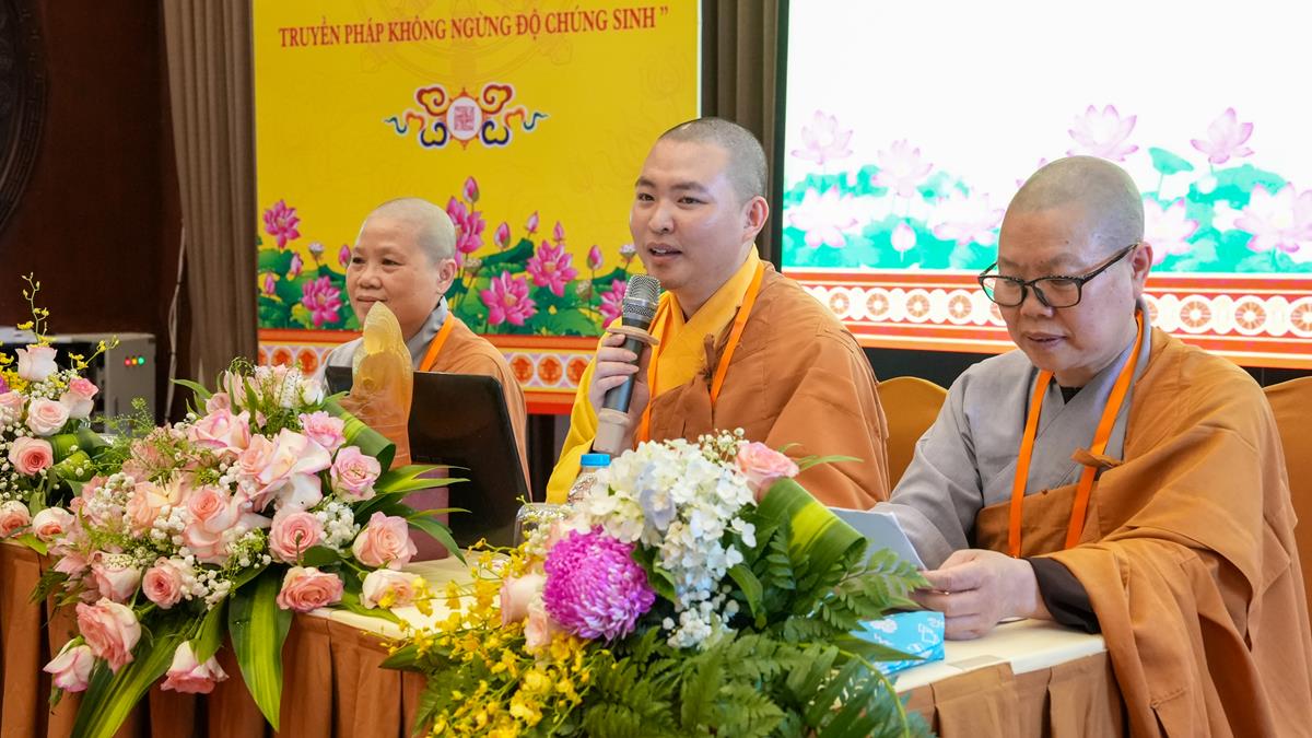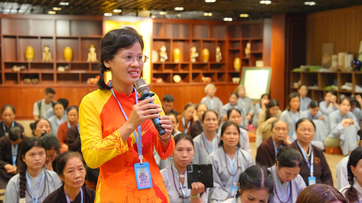 Dưới sự chứng minh và chủ tọa của Thượng tọa Thích Thiện Hạnh – Ủy viên thường trực Ban Hoằng pháp TW cùng chư Tôn đức Ủy viên Ban Hoằng pháp TW: Thượng tọa Thích Thanh Phương, Thượng tọa Thích Giác Minh, Đại đức Thích Tâm Thành và chư Tôn đức Ban điều hành lớp Đào tạo Giảng sư, buổi tọa đàm tại Tổ 2 như một bản giao hưởng dịu nhẹ của “Tâm Từ” – chủ đề khiến người nghe như được sưởi ấm bởi hình ảnh “vòng tay mẹ hiền ôm lấy cuộc đời”. Phật tử lắng đọng trước những câu hỏi: “Khi nào từ tâm dễ bị che lấp?”, “Làm sao để nuôi dưỡng tâm từ giữa đời sống bộn bề?”. Những lời chia sẻ đầy minh triết từ chư Tăng Ni đã soi sáng cho người học đạo một lối đi rõ ràng, đưa tâm từ trở về với hơi thở hàng ngày.
