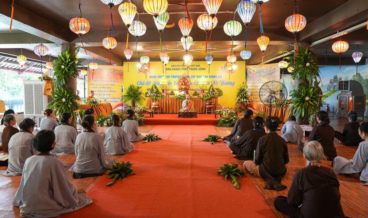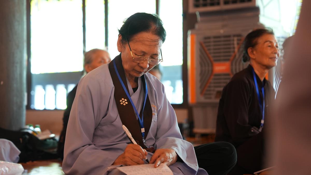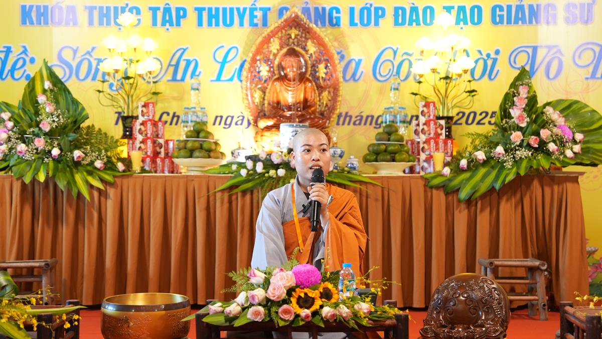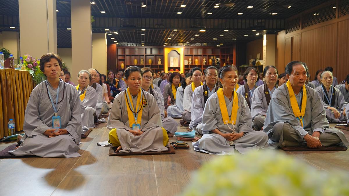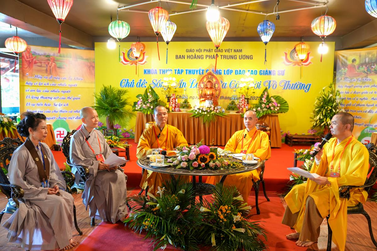 Cuối cùng, tại tổ 5, Sư cô Thích Bảo Trí chia sẻ về “Giá trị của việc tụng kinh trong đời sống tu tập”, một sự hành trì tuy giản dị mà bền bỉ như dòng sông đào sâu nền tảng chính tín. Cùng tổ, Sư cô Thích Như Quang khai triển đề tài “Sống an lạc giữa cõi đời vô thường” – đưa người nghe quán chiếu sự vô thường không như bóng ma đáng sợ, mà như lời nhắc nhở để sống trọn vẹn trong từng khoảnh khắc.