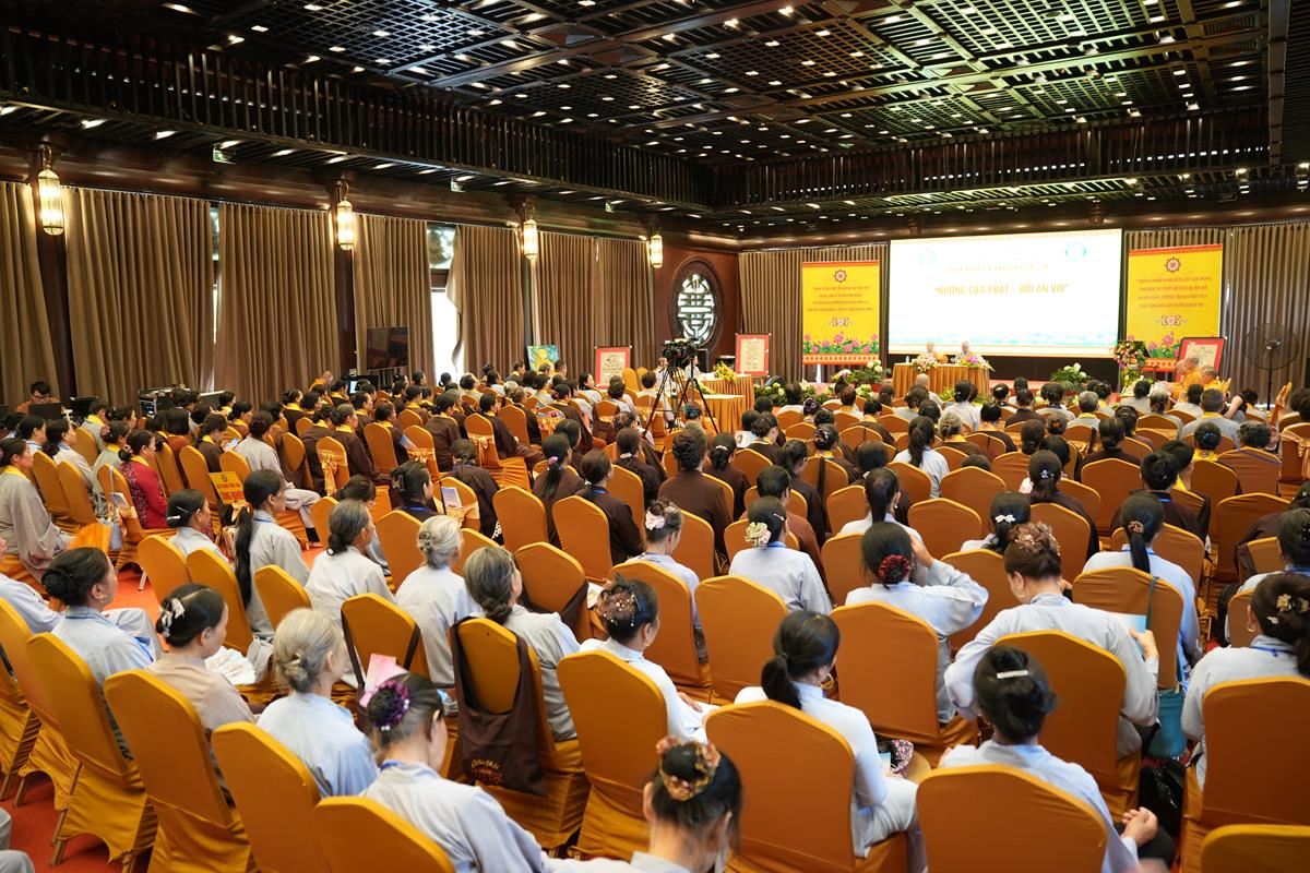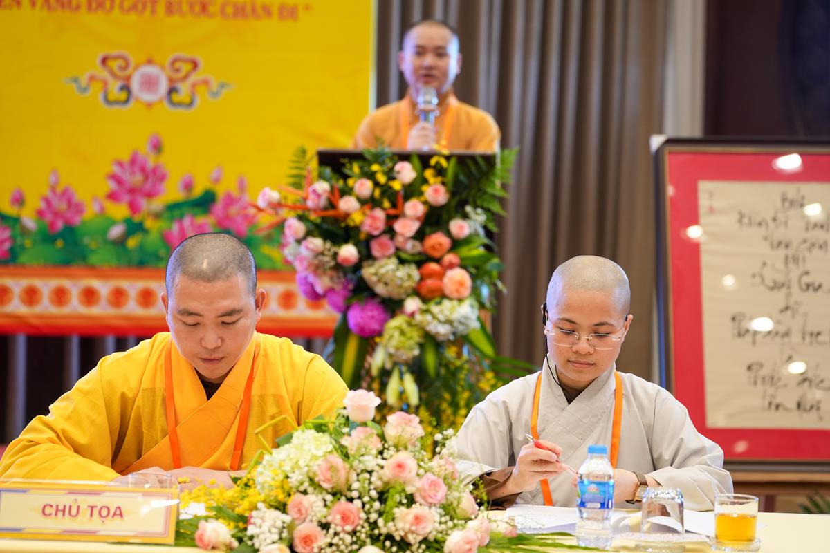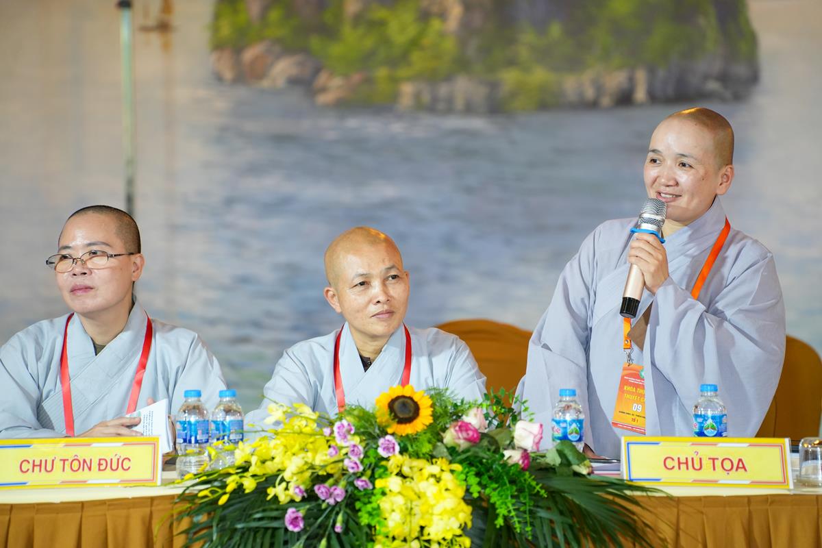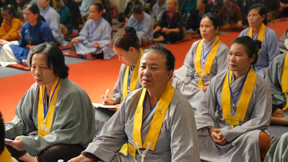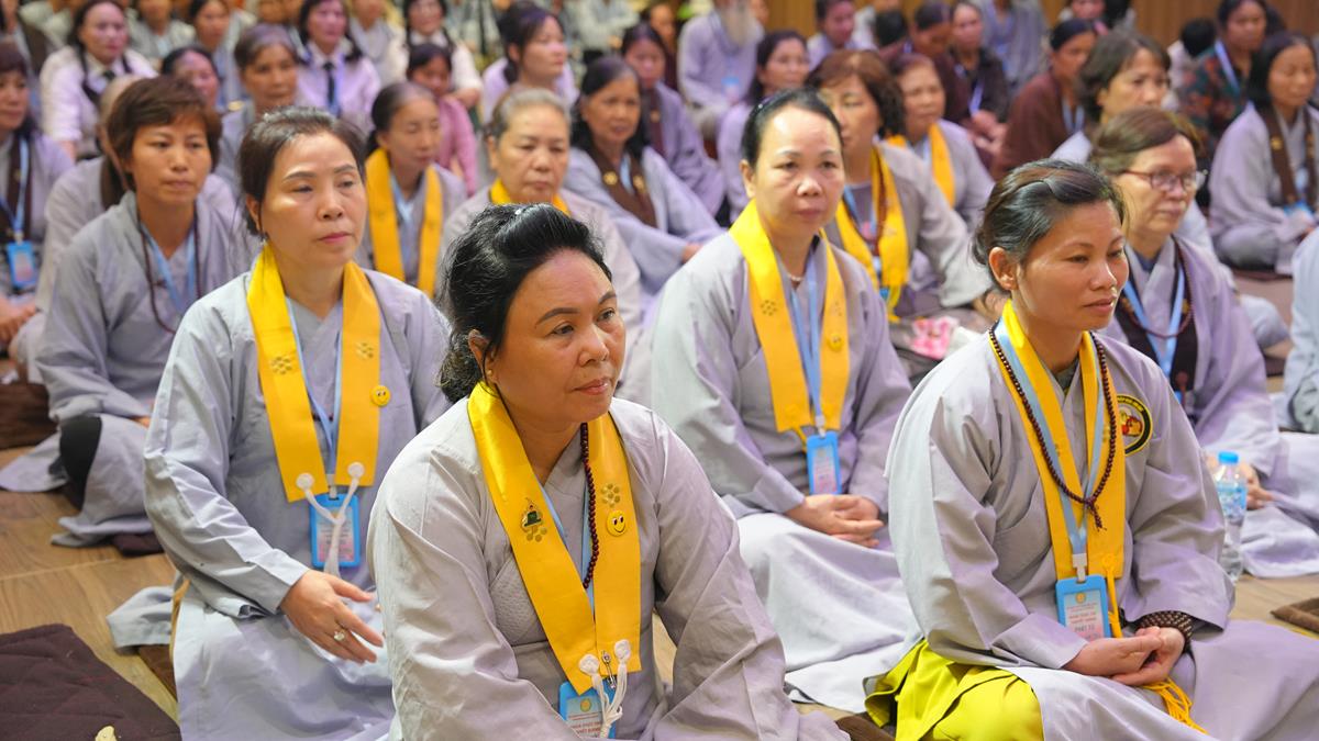 Cuối cùng, tại tổ 5, Sư cô Thích Bảo Trí chia sẻ về “Giá trị của việc tụng kinh trong đời sống tu tập”, một sự hành trì tuy giản dị mà bền bỉ như dòng sông đào sâu nền tảng chính tín. Cùng tổ, Sư cô Thích Như Quang khai triển đề tài “Sống an lạc giữa cõi đời vô thường” – đưa người nghe quán chiếu sự vô thường không như bóng ma đáng sợ, mà như lời nhắc nhở để sống trọn vẹn trong từng khoảnh khắc.