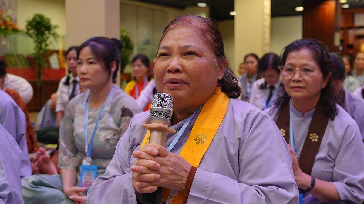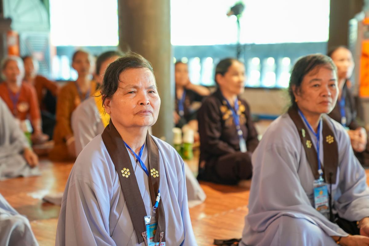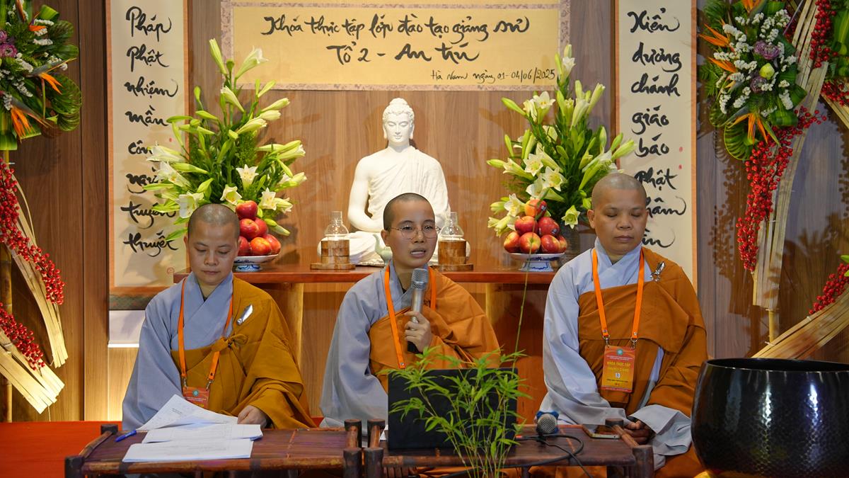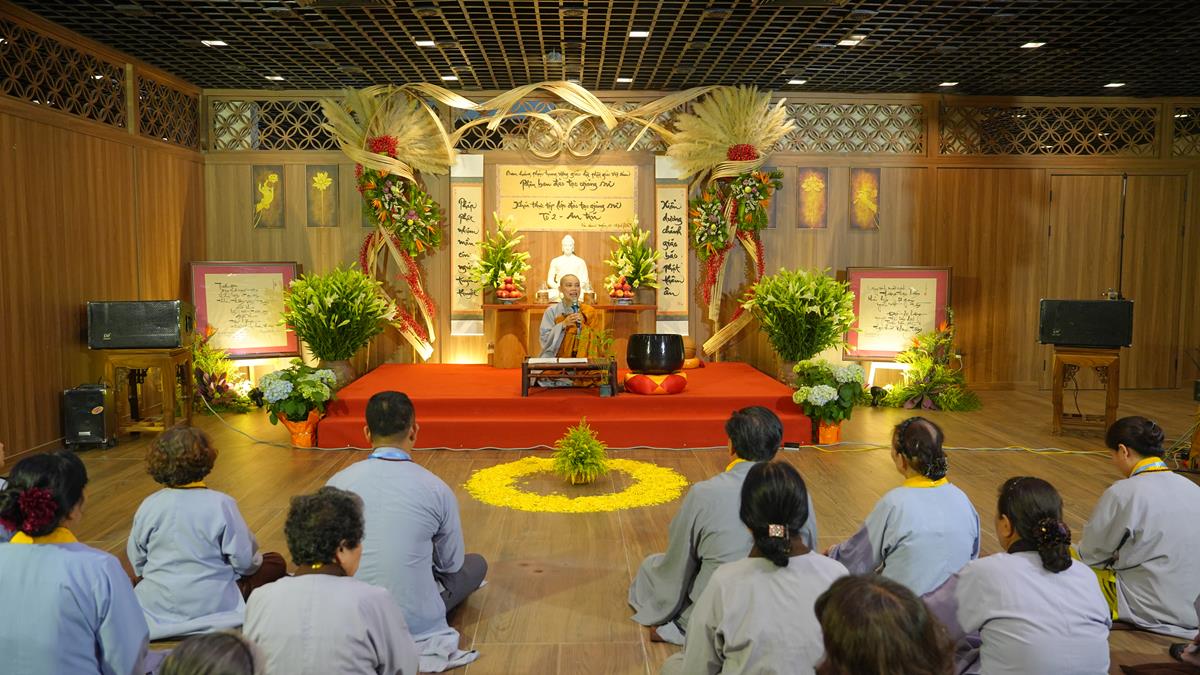 Ở tổ 1, Sư cô Thích Đàm Uyên đã chia sẻ về “Hạnh nguyện của người con Phật trong đời sống”, một đề tài như tiếng chuông cảnh tỉnh giữa cuộc sống đa đoan, nhắc nhở người tu học luôn giữ gìn tâm nguyện ban đầu. Tiếp nối là bài giảng của Sư cô Thích Hòa Hạnh, khai mở về “Mười thiện nghiệp đạo – nhân lành đi đến cõi đời”, mở ra con đường đưa đến an lạc bền vững trong cả hiện đời và mai sau.