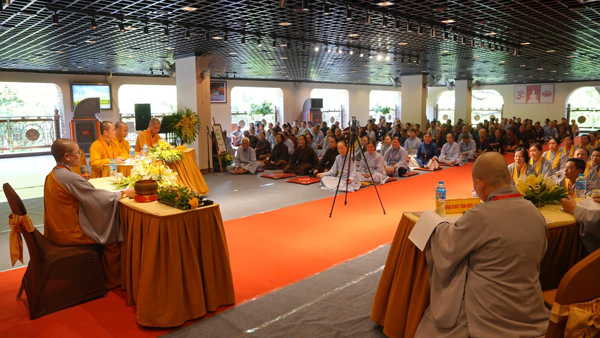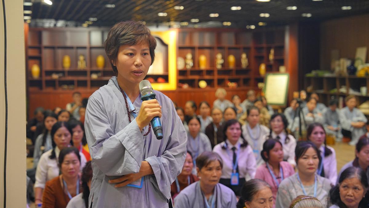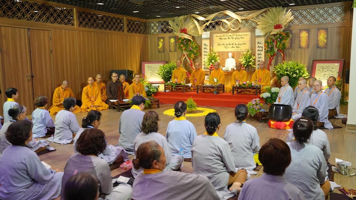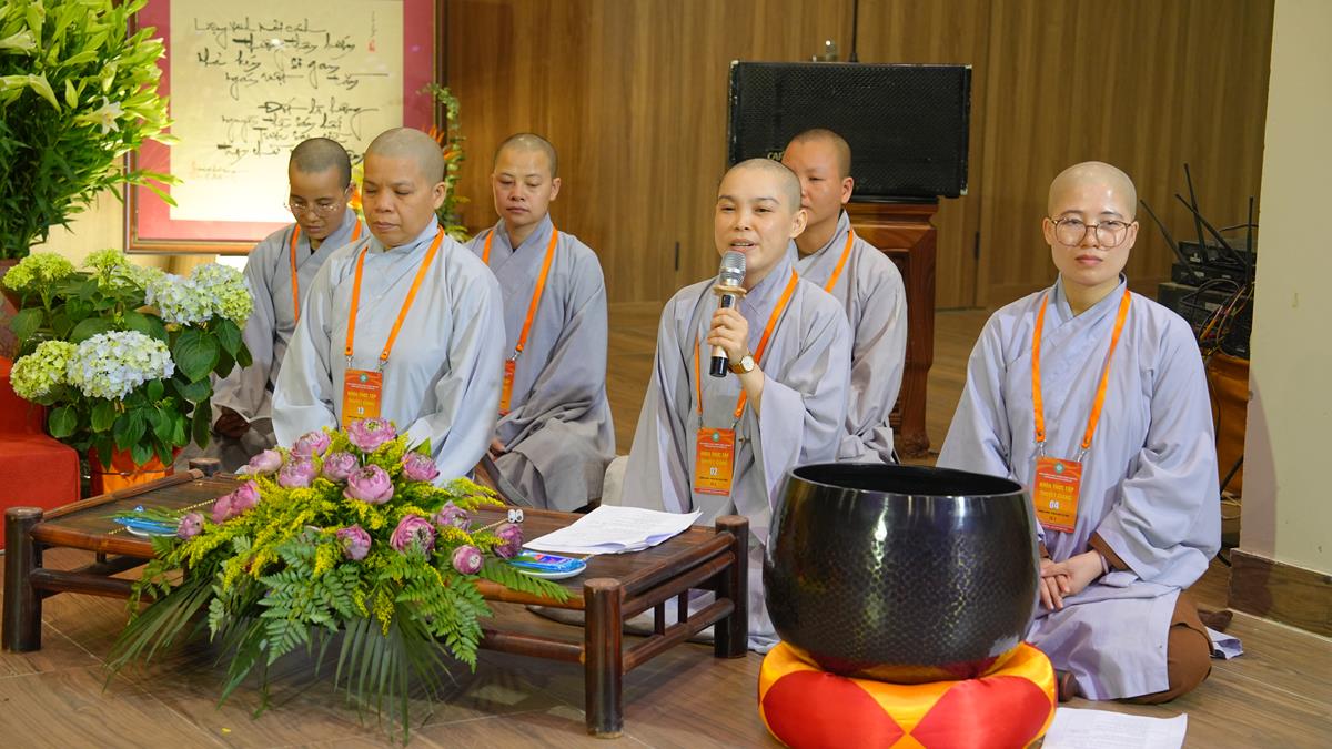 Ở tổ 1, Sư cô Thích Đàm Uyên đã chia sẻ về “Hạnh nguyện của người con Phật trong đời sống”, một đề tài như tiếng chuông cảnh tỉnh giữa cuộc sống đa đoan, nhắc nhở người tu học luôn giữ gìn tâm nguyện ban đầu. Tiếp nối là bài giảng của Sư cô Thích Hòa Hạnh, khai mở về “Mười thiện nghiệp đạo – nhân lành đi đến cõi đời”, mở ra con đường đưa đến an lạc bền vững trong cả hiện đời và mai sau.