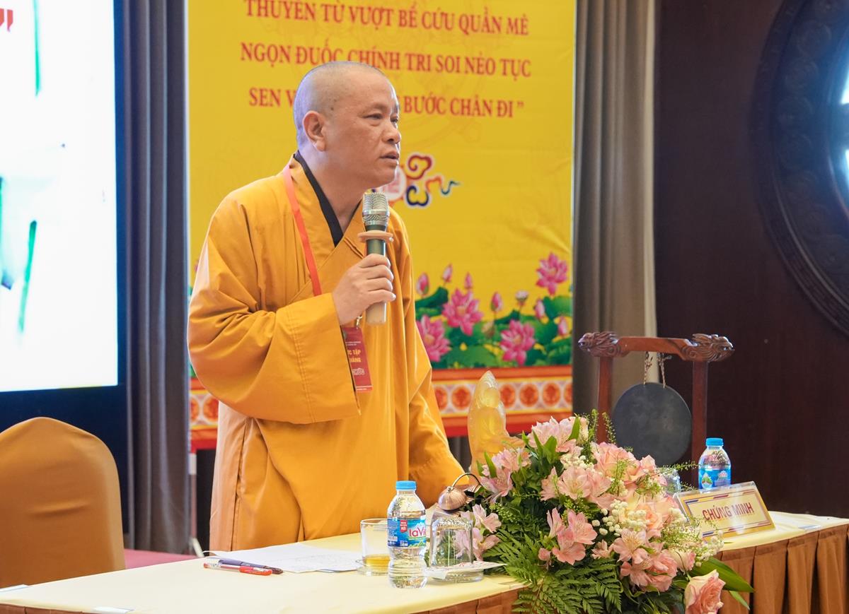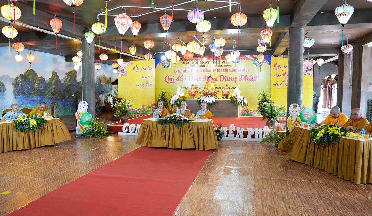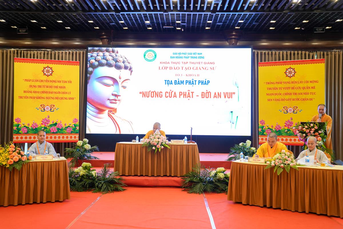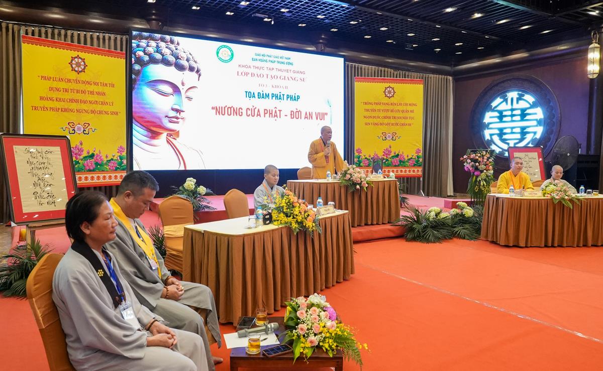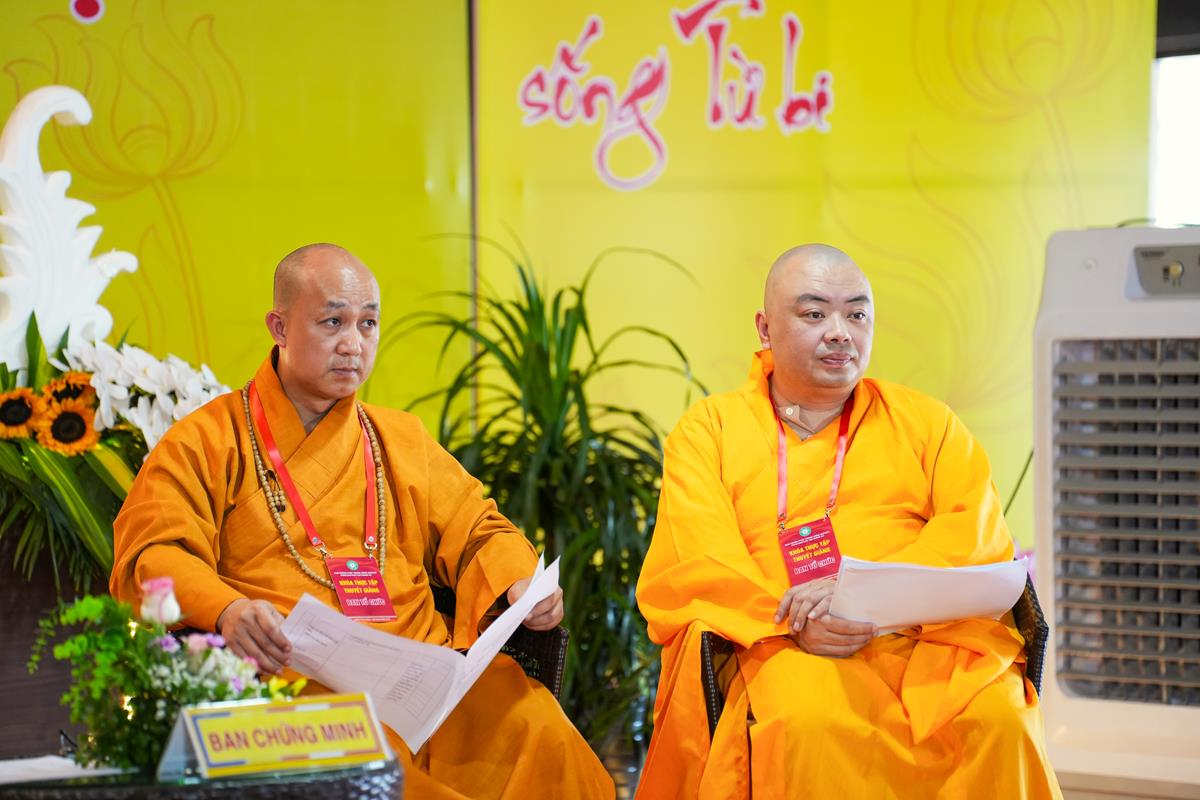 Với sự quang lâm chứng minh của Thượng tọa Thích Chiếu Tuệ – Ủy viên HĐTS, Phó trưởng Ban thường trực Ban Hoằng pháp TW, Trưởng Ban tổ chức; Thượng tọa Thích Chúc Tiếp – Ủy viên HĐTS, Phó Ban Hoằng pháp TW; Đại đức Thích Pháp Minh – Ủy viên Ban Hoằng pháp TW cùng chư Tôn đức Tăng Ni trong Ban điều hành, khối Văn phòng lớp Đào tạo giảng sư khóa II khu vực phía Bắc, buổi tọa đàm của Tổ 1 với chủ đề “Từ bi trong Đạo Phật” được khai triển một cách sâu sắc, từ kinh tạng cho đến ứng dụng thực tiễn. Những chia sẻ, câu hỏi và suy tư của Phật tử đã tạo nên một không gian pháp thoại sinh động, gần gũi và đầy cảm xúc.