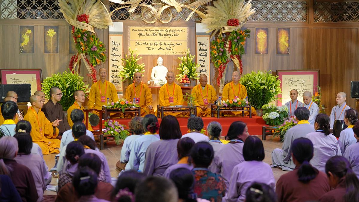 Tại Tổ 3, với buổi tọa đàm mang tên “Nương cửa Phật – Đời an vui”, Thượng tọa Thích Tâm Hoan – Ủy viên HĐTS, Ủy viên thường trực Ban Hoằng pháp TW đã quang lâm chứng minh. Trong không khí thanh tịnh, các Phật tử đã lắng nghe và đặt ra nhiều câu hỏi thực tiễn, xoay quanh con đường chuyển hóa khổ đau bằng sự nương tựa nơi Tam Bảo. Những lời giảng từ bi và thấu hiểu của quý Thầy đã tiếp thêm niềm tin cho người học đạo, gieo hạt an vui giữa dòng đời bất an.