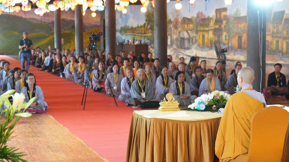 Bắt đầu từ 8h sáng, các tổ đồng thời bước vào phần thuyết giảng với nhiều chủ đề thiết thực, gắn liền với đời sống tu tập của người Phật tử tại gia và xuất gia. Những bài giảng không chỉ là lý thuyết trong Tam Tạng Thánh Giáo, mà là nhịp cầu chuyển tải Phật pháp từ trang kinh vào đời sống thường nhật, hướng đến sự chuyển hóa thân tâm và vun bồi hạnh lành.
