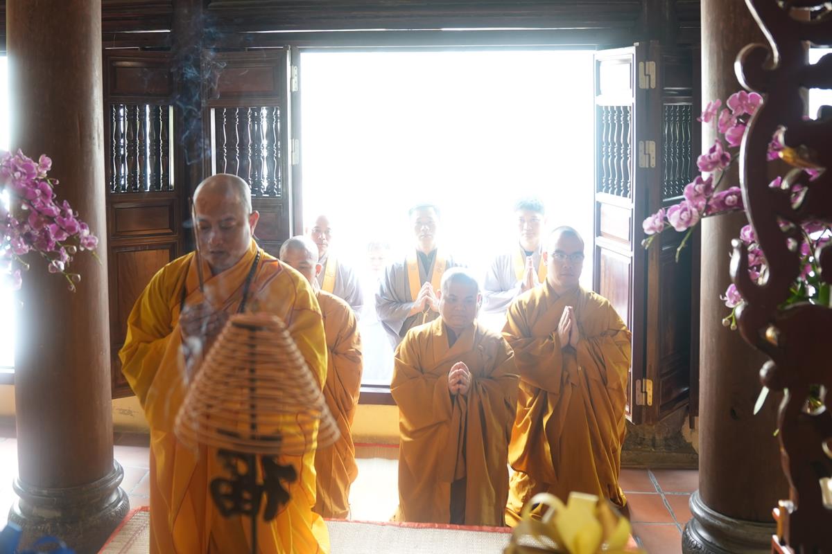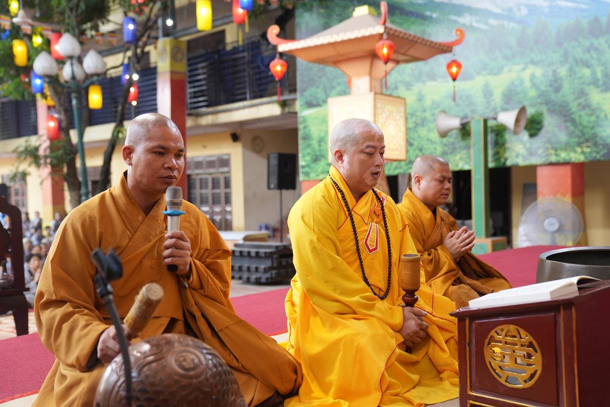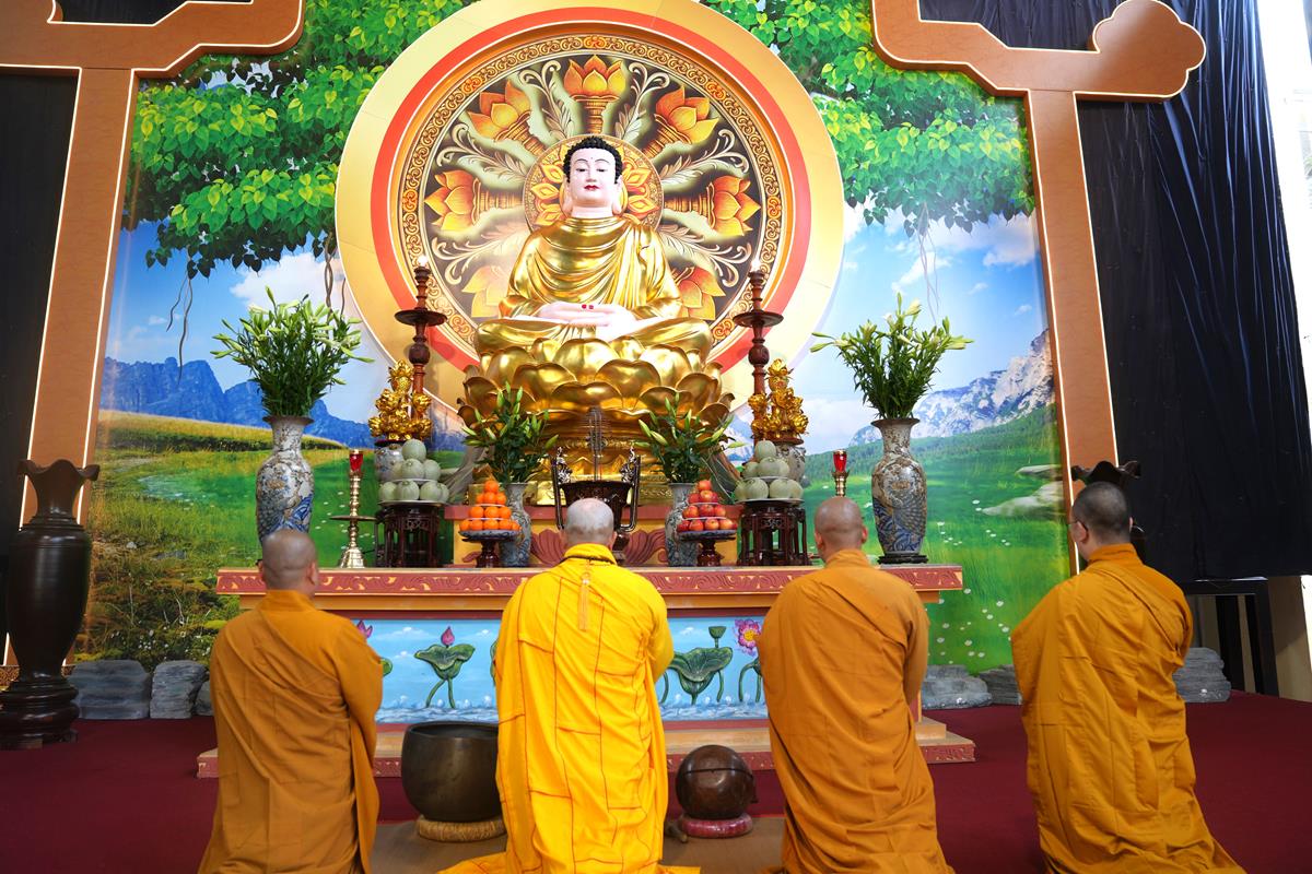 Buổi chiều, trong không khí thanh tịnh, dưới sự chủ lễ của chư Tôn đức Tăng bản tự, đại chúng cùng tụng Kinh Dược Sư, nguyện cầu quốc thái dân an, thế giới hòa bình, muôn loài an lạc.