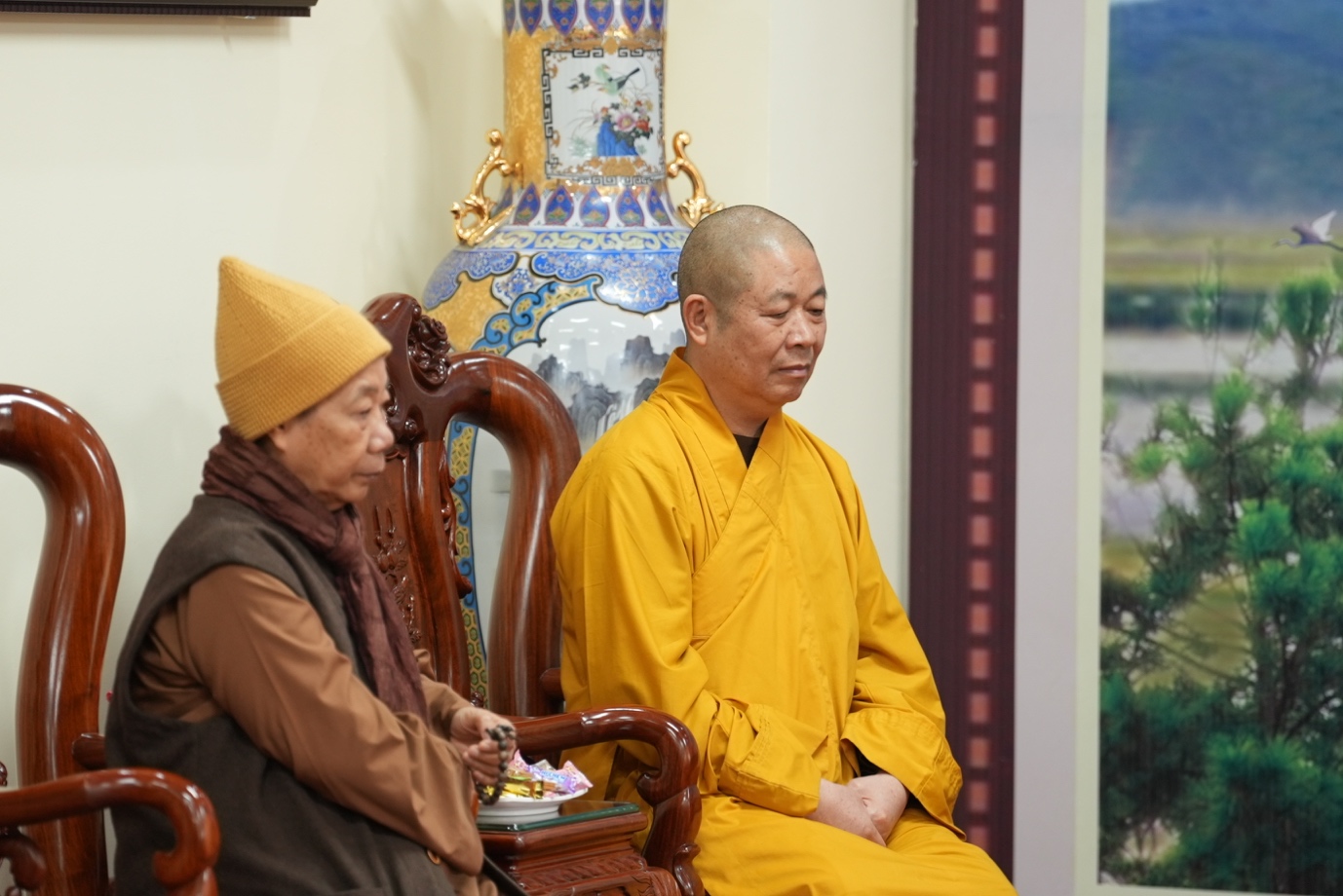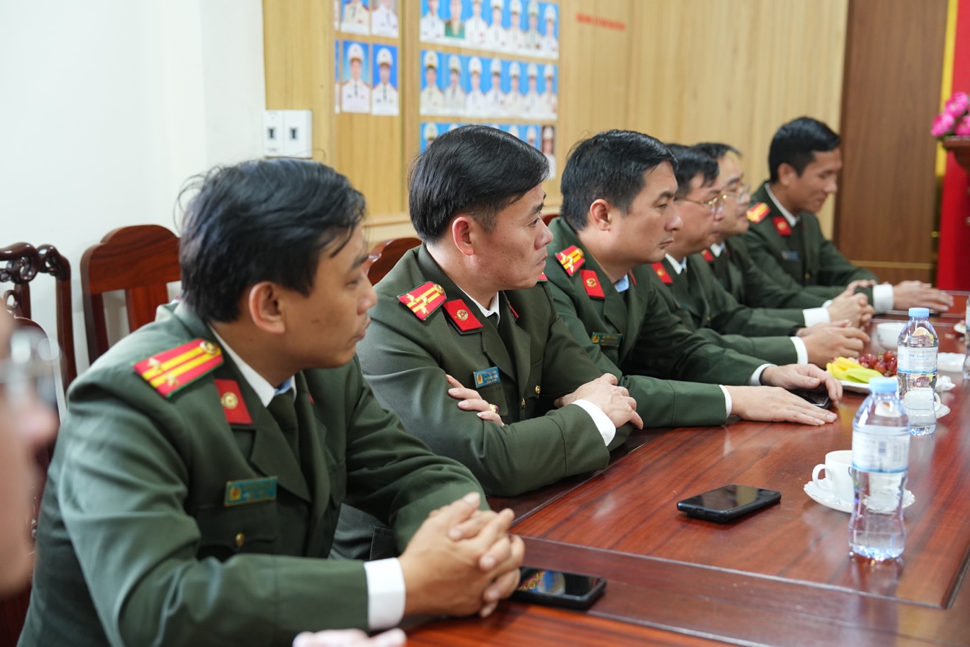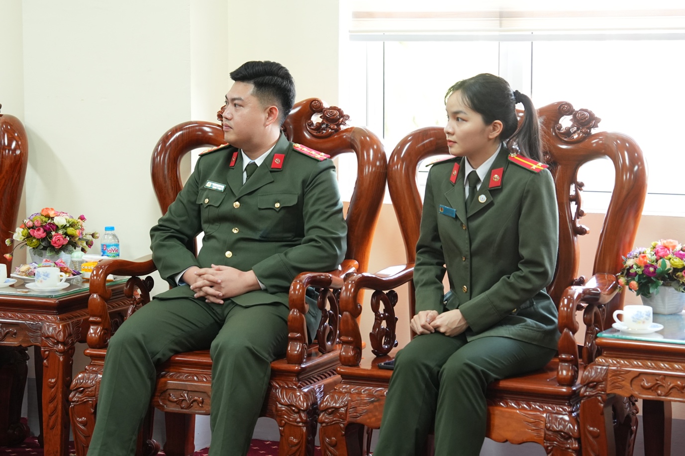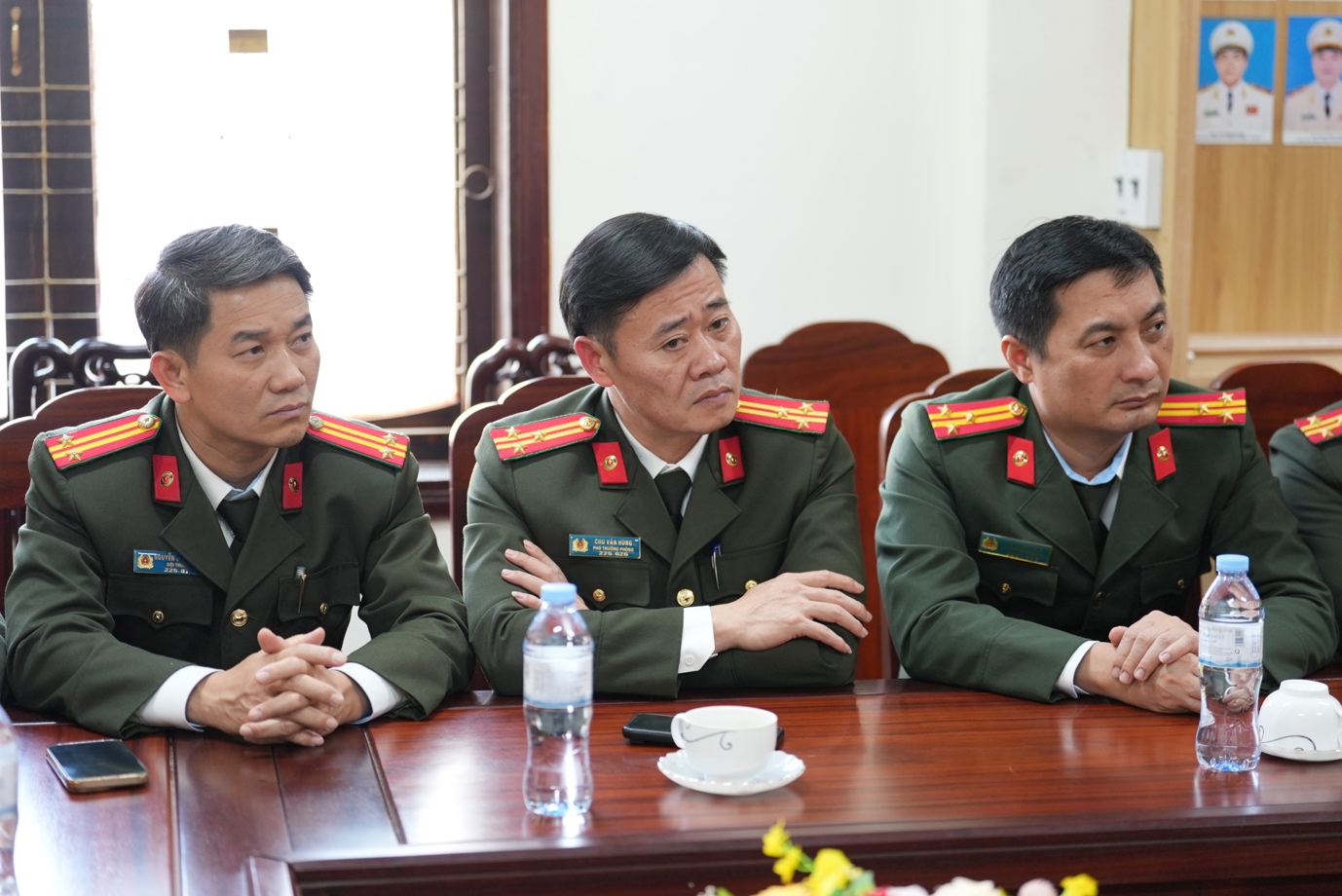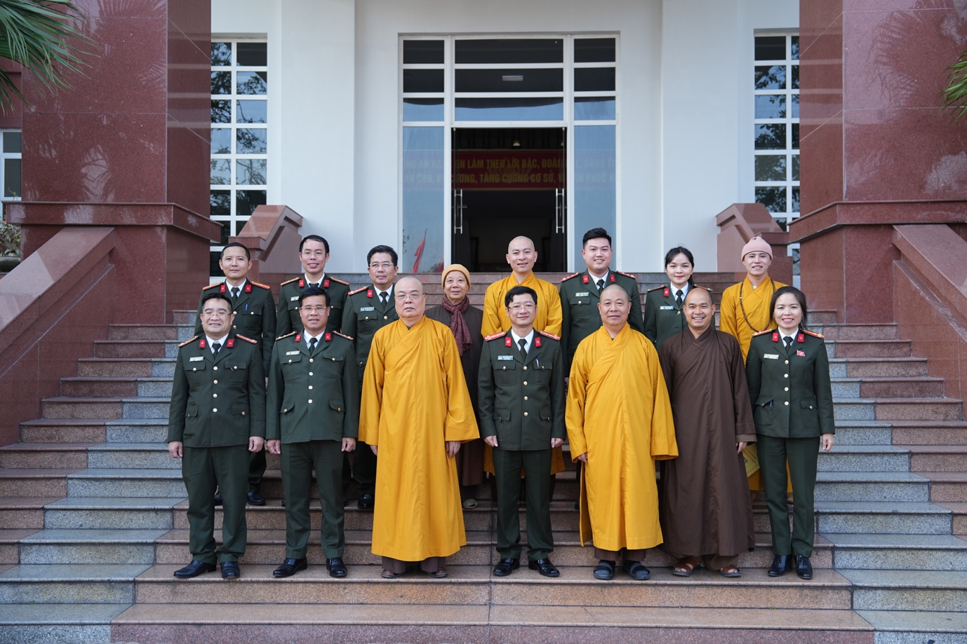 Trong không khí thân mật, Thượng tá Lê Đức Dũng – Trưởng Phòng An ninh nội địa, Công an tỉnh Nghệ An gửi lời chúc Xuân an lạc đến phái đoàn. Sự quan tâm của Phật giáo là nguồn động viên lớn với các cán bộ chiến sĩ công an để tiếp tục cống hiến vì sự nghiệp an ninh Tổ quốc. Trong nhiều năm qua, hai bên đã phối hợp chặt chẽ để xây dựng, phát triển GHPGVN tỉnh; và chư Tăng Ni, Phật tử trên địa bàn tỉnh đã đóng góp không nhỏ giữ gìn sự yên bình của địa phương. Thượng tá mong muốn Phòng An ninh nội địa và GHPGVN tỉnh tiếp tục phối hợp, chăm lo an sinh xã hội, an ninh trật tự cho nhân dân xứ Nghệ.