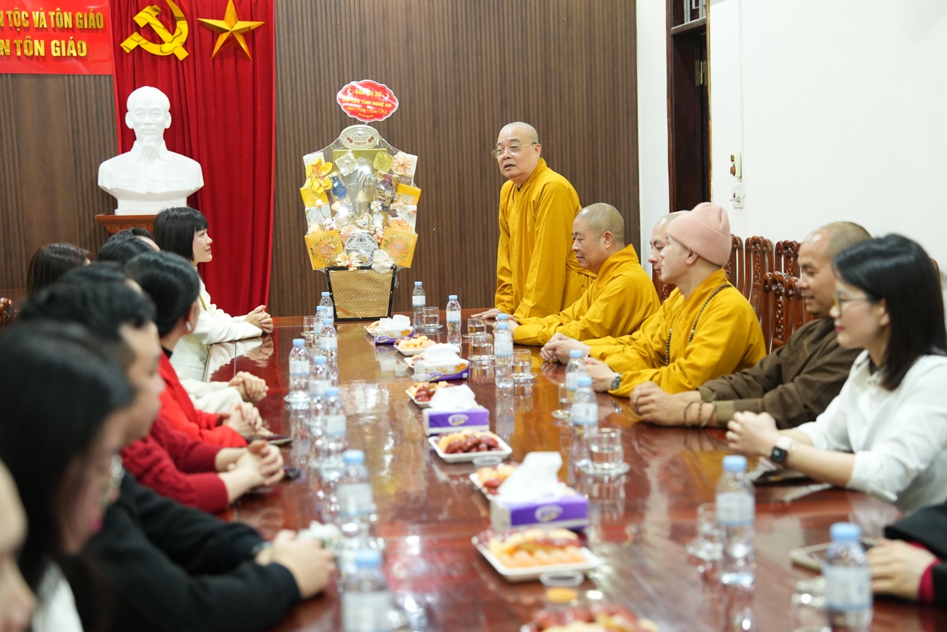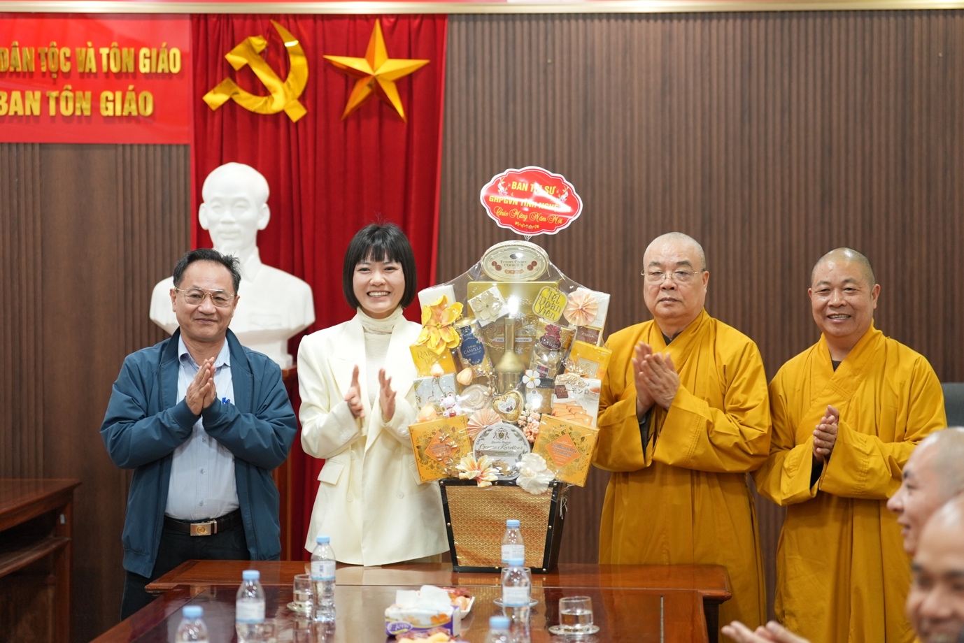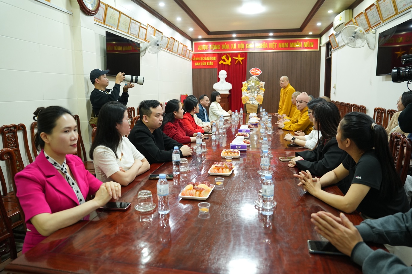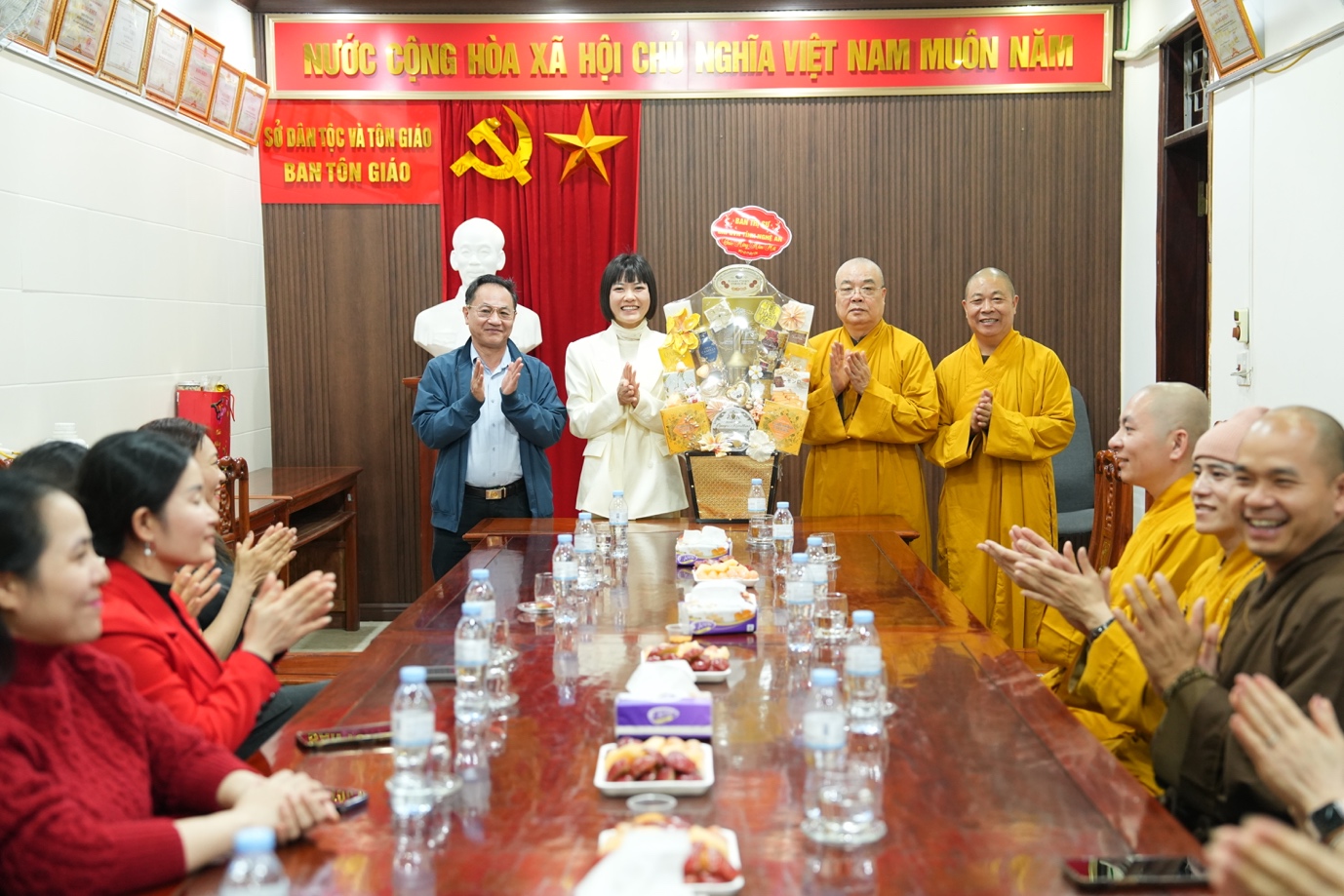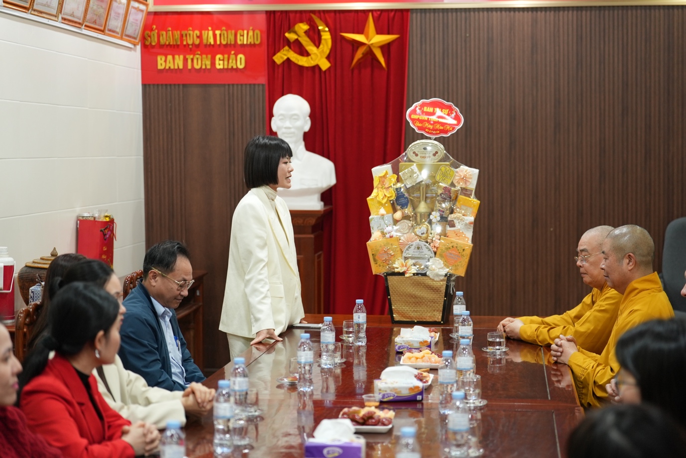 Tại trụ sở Ban Tôn giáo – Sở Dân tộc và Tôn giáo tỉnh Nghệ An, Bà Trần Thị Thanh Huyền – Trưởng Ban Tôn giáo tỉnh trân trọng cảm ơn tình cảm của phái đoàn. Bà cam kết Ban Tôn giáo luôn đồng hành cùng GHPGVN tỉnh, thực hiện các nhu cầu chính đáng của Phật giáo. Ban Tôn giáo sẽ là cầu nối giữa GHPGVN với các cấp chính quyền tỉnh để giải quyết các vấn đề tôn giáo, cũng như phối hợp hoạt động để các Phật sự trong thời gian tới được thành tựu.