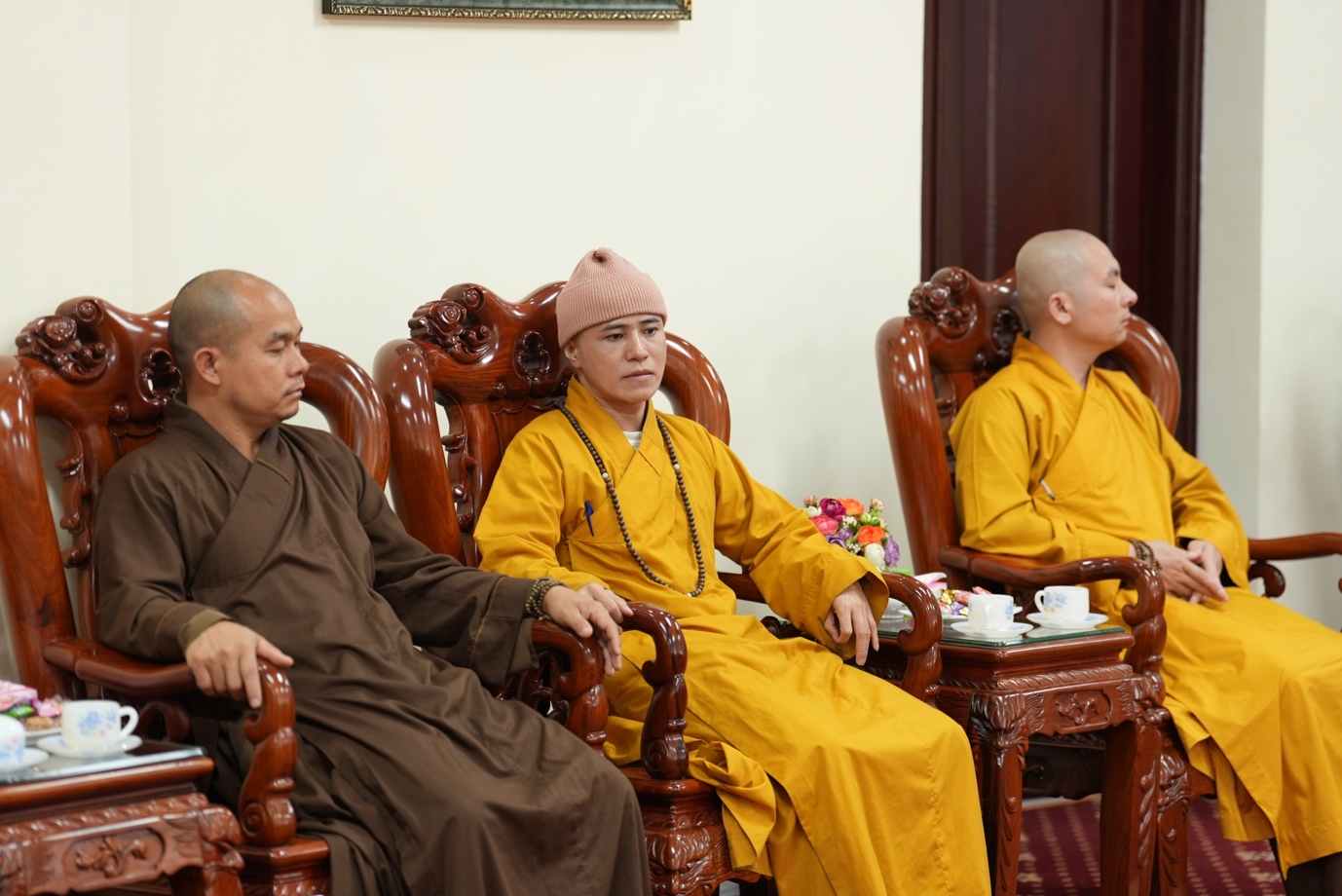 Tại trụ sở Ban Tôn giáo – Sở Dân tộc và Tôn giáo tỉnh Nghệ An, Bà Trần Thị Thanh Huyền – Trưởng Ban Tôn giáo tỉnh trân trọng cảm ơn tình cảm của phái đoàn. Bà cam kết Ban Tôn giáo luôn đồng hành cùng GHPGVN tỉnh, thực hiện các nhu cầu chính đáng của Phật giáo. Ban Tôn giáo sẽ là cầu nối giữa GHPGVN với các cấp chính quyền tỉnh để giải quyết các vấn đề tôn giáo, cũng như phối hợp hoạt động để các Phật sự trong thời gian tới được thành tựu.