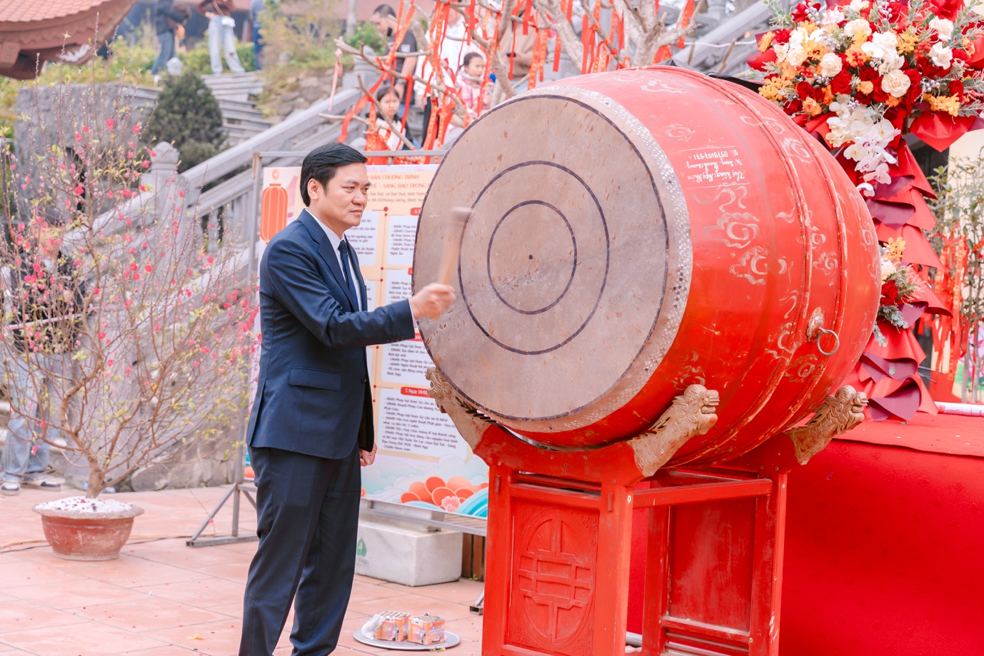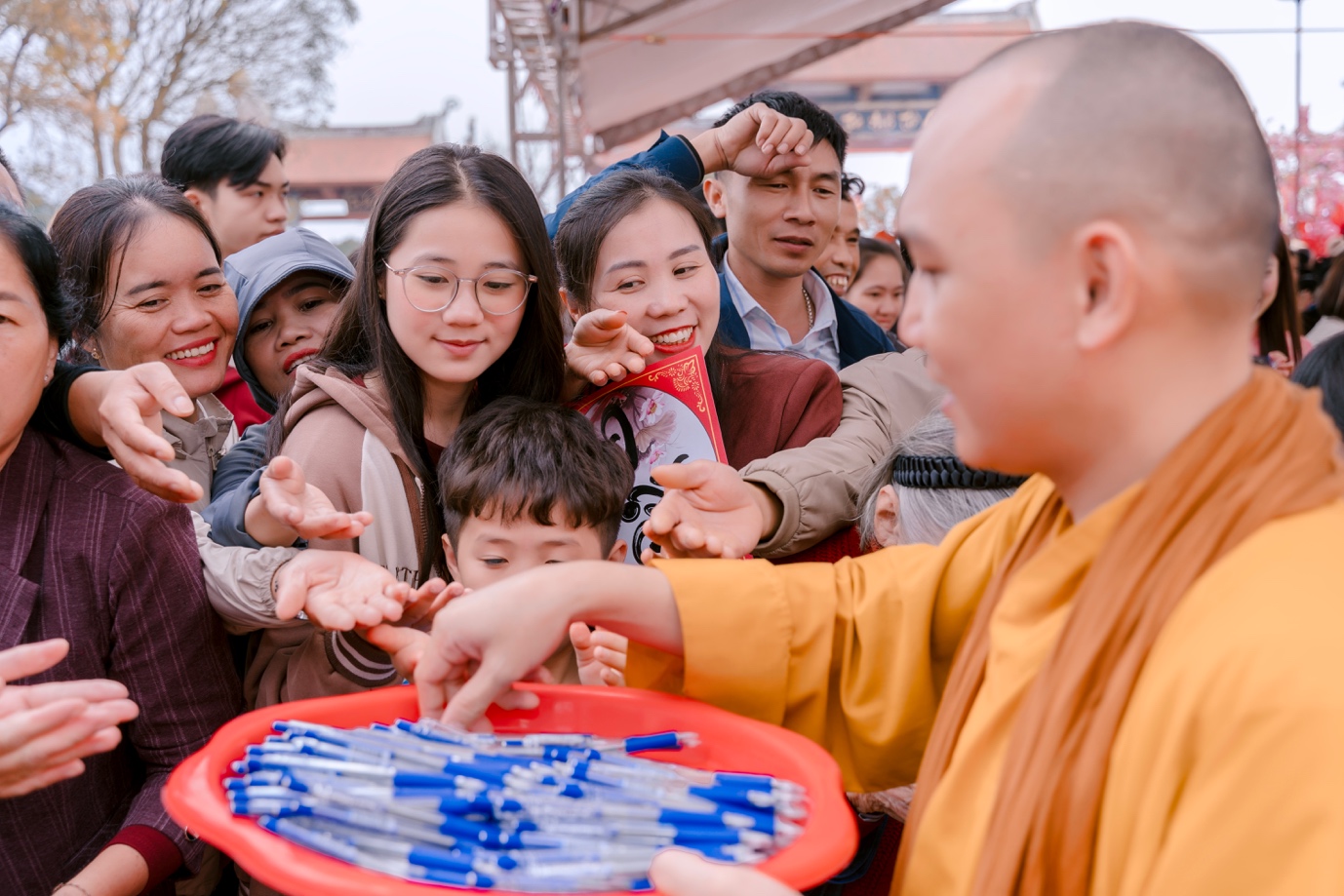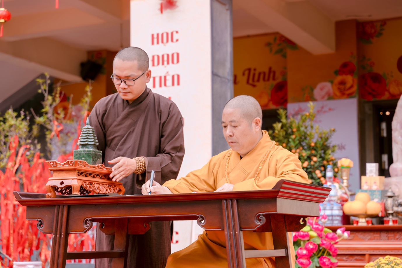 Ngay sau phần lễ, chư Tăng Ni và lãnh đạo tỉnh Nghệ An đã khai bút, khai ấn và tặng bút viết cho du khách thập phương. Ban Tổ chức cũng bố trí nhiều điểm viết chữ thư pháp để tặng du khách.