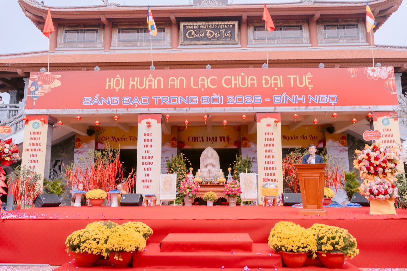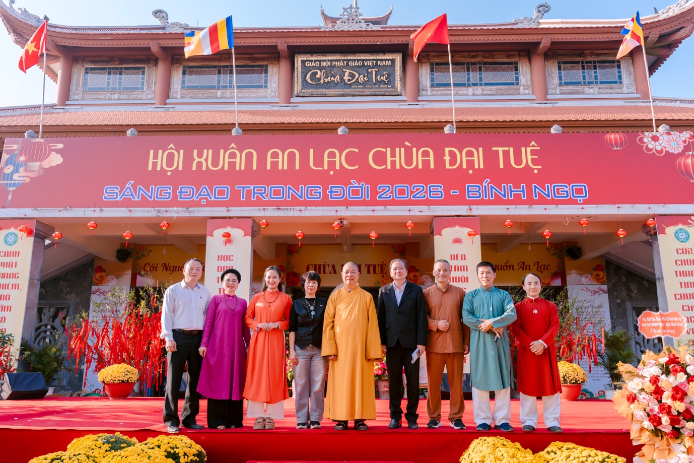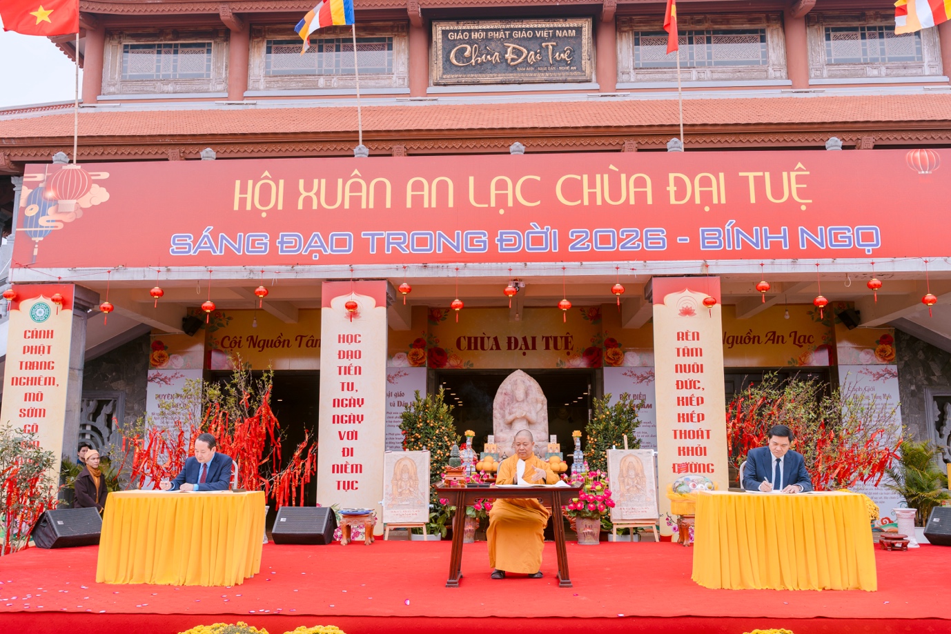 Sáng ngày 21/02/2026 (nhằm ngày 05/01 năm Bính Ngọ), tại chùa Đại Tuệ (xã Đại Huệ, tỉnh Nghệ An), Ban Văn hóa TW GHPGVN, Ban Trị sự GHPGVN tỉnh Nghệ An, chùa Đại Tuệ và các đơn vị đồng hành tổ chức chương trình Khai bút đầu Xuân Bính Ngọ 2026. Hàng nghìn Phật tử, người dân trong, ngoài tỉnh đã trở về đây để xin chữ, hướng tâm về những điều thiện lành, khởi đầu một năm mới nhiều niềm vui.
