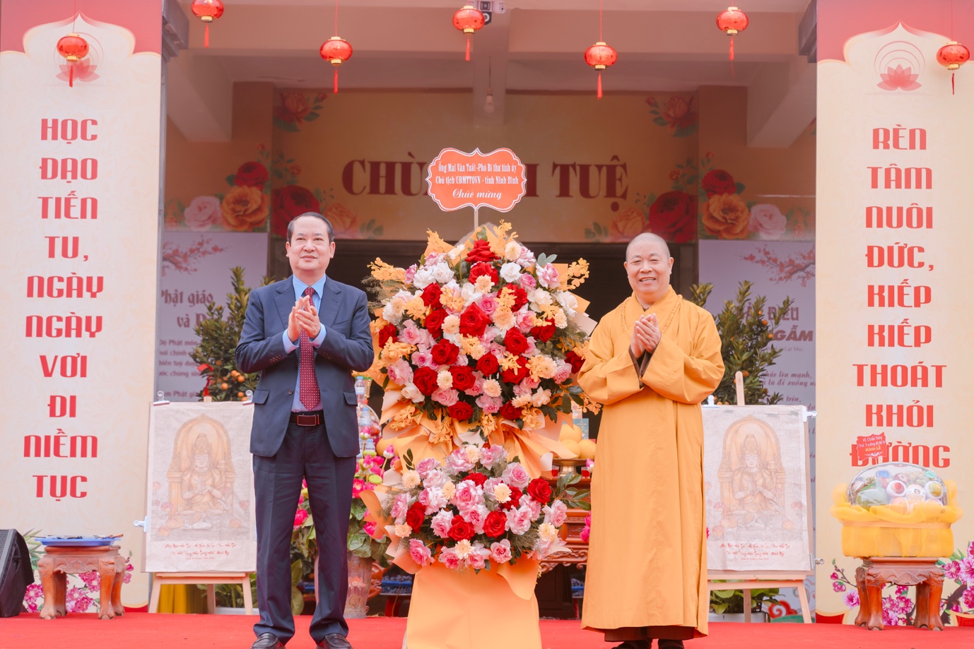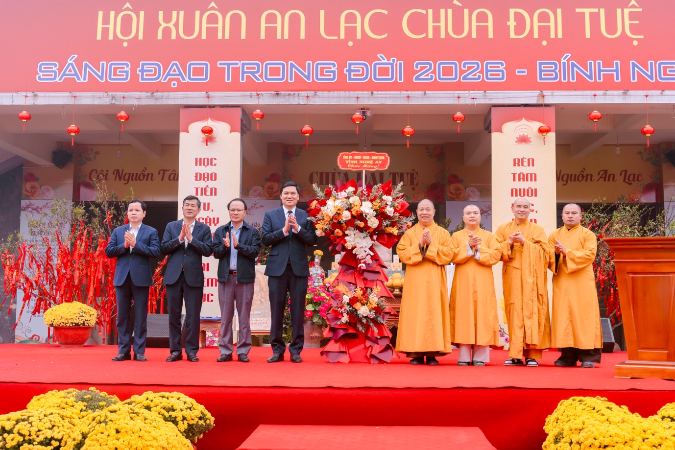 Chương trình có sự hiện diện của: Hoà thượng Thích Thọ Lạc – Trưởng Ban Văn hoá TW GHPGVN, Phó Trưởng Ban thường trực BTS GHPGVN tỉnh Nghệ An, Trụ trì chùa Đại Tuệ; chư Tăng Ni Ban Trị sự GHPGVN tỉnh Nghệ An và chùa Đại Tuệ.