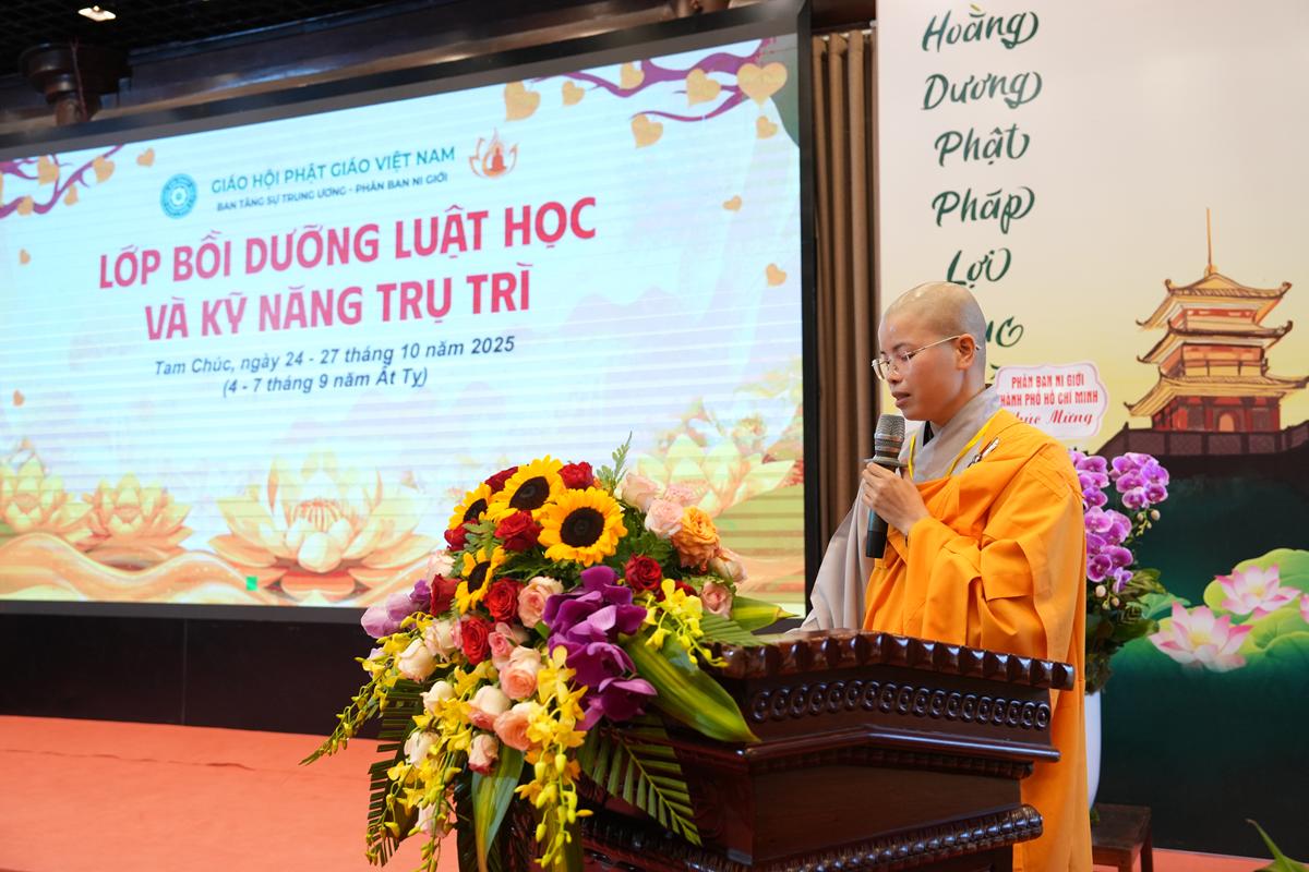 Trong báo cáo tổng kết khóa học, Ni sư Thích Diệu Tâm – Ủy viên Thường trực, Phó Thư ký Phân ban Ni giới TƯ cho biết: khóa học nằm trong chương trình hoạt động Phật sự năm 2025 của Ban Tăng sự Trung ương, dưới sự chỉ đạo của Ni trưởng Thích Nhật Khương – Ủy viên thường trực HĐTS, Trưởng Phân ban Ni giới TƯ GHPGVN. Tiếp nối thành công của khóa bồi dưỡng khu vực phía Nam tại Đồng Nai, lần này, khóa học quy tụ gần 250 hành giả Ni giới đến từ 15 tỉnh, thành khu vực phía Bắc.
