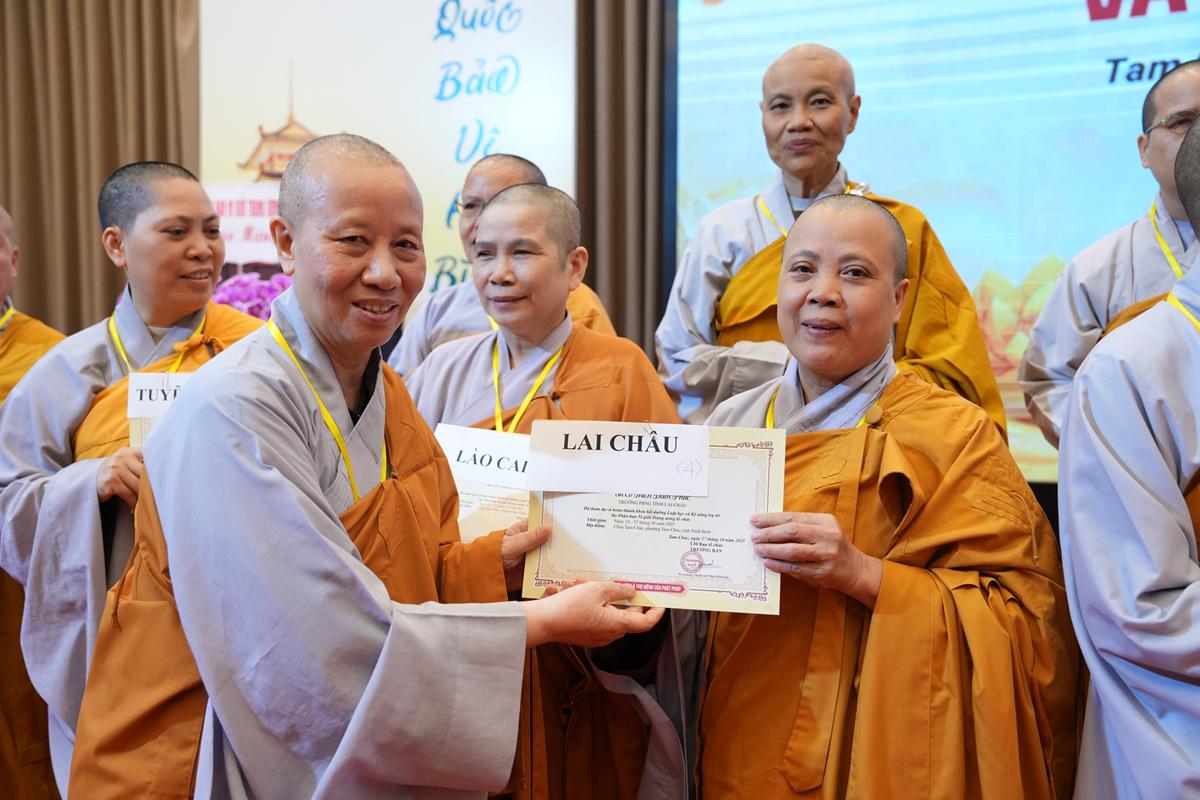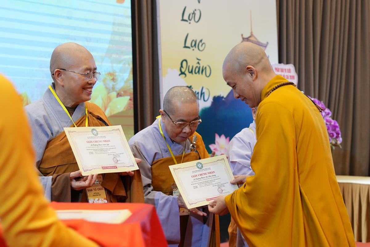 Trong giờ phút hoan hỷ, chư Ni đã được trao chứng chỉ hoàn thành khóa học, khép lại một hành trình tu học nghiêm túc, đồng thời mở ra chặng đường mới, nơi mỗi hành giả mang theo hành trang giới đức, trí tuệ và kỹ năng, tiếp tục cống hiến cho sự nghiệp hoằng dương Chính pháp, góp phần làm rạng danh Ni giới Việt Nam trong thời đại hội nhập và phát triển.