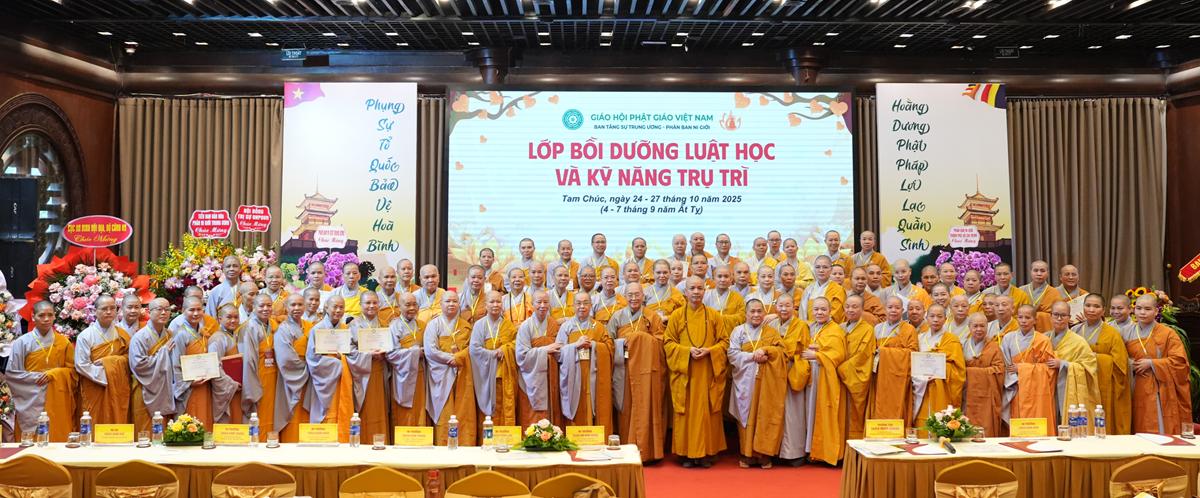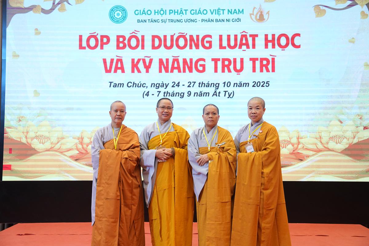 Sau bốn ngày học tập nghiêm túc và đầy ý nghĩa (từ ngày 24 đến 27/10/2025), khóa Bồi dưỡng Luật học và Kỹ năng Trụ trì do Phân ban Ni giới Trung ương tổ chức tại chùa Tam Chúc (tỉnh Ninh Bình) đã khép lại trong không khí trang nghiêm, hoan hỷ và viên mãn.