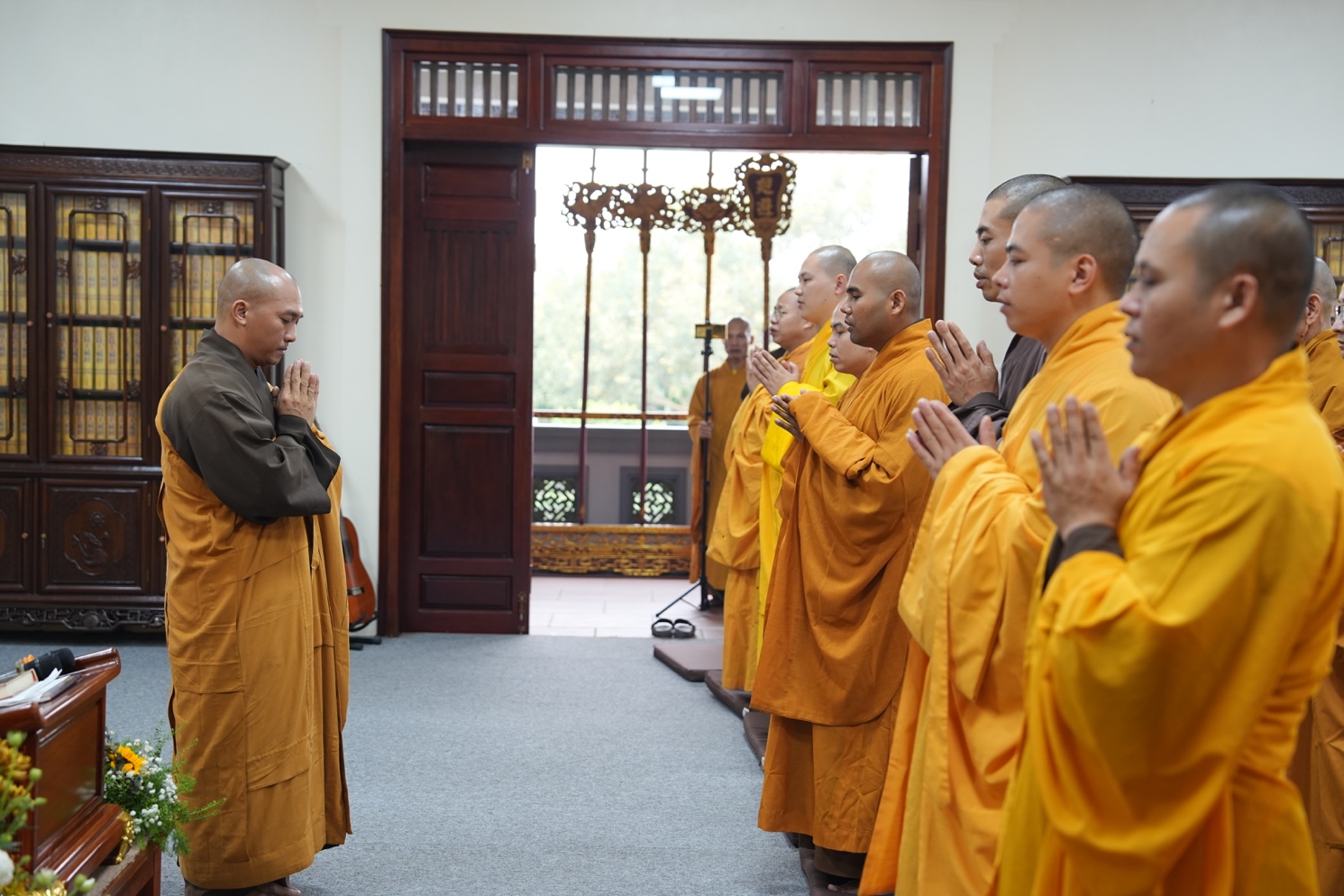 Khép lại phần pháp thoại, Thượng tọa đúc kết: Chính niệm là nền tảng để đại diện Như Lai. Mọi pháp tu đều quy về nuôi dưỡng chính niệm, hơi thở là chiếc cầu nối giúp quản trị tâm ý, Hoằng pháp không chỉ ở lời nói mà ở sự hành trì và chuyển hóa nội tâm, còn Hạnh khất thực chính là Bài học sống động về vô ngã và tương duyên.
