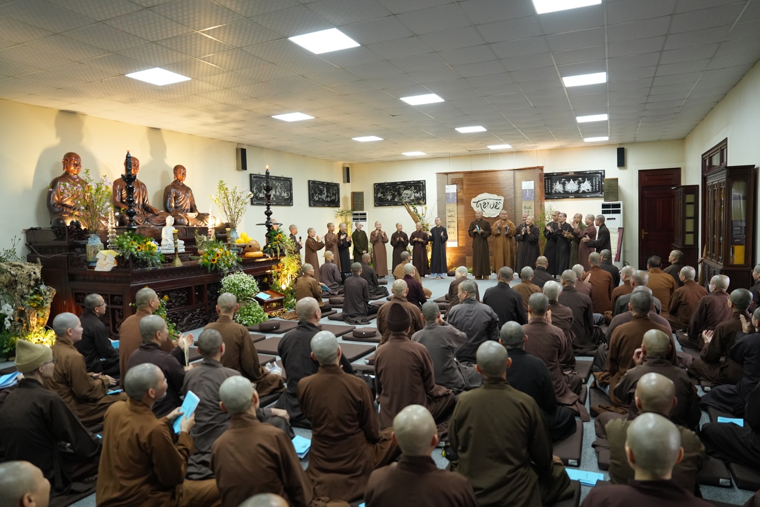 Ngày 27/03/2026 (nhằm ngày 09/02 năm Bính Ngọ), hơn 200 hành giả là chư Tăng Ni Giảng sinh thuộc Lớp Đào tạo Cao cấp Giảng sư khu vực phía Bắc khóa I, khóa II và khóa III đã bước sang ngày tu học thứ tư trong khóa tu xuất sĩ với chủ đề “Thắp sáng tình huynh đệ” tại chùa Vạn Phúc (xã Sóc Sơn, Hà Nội).