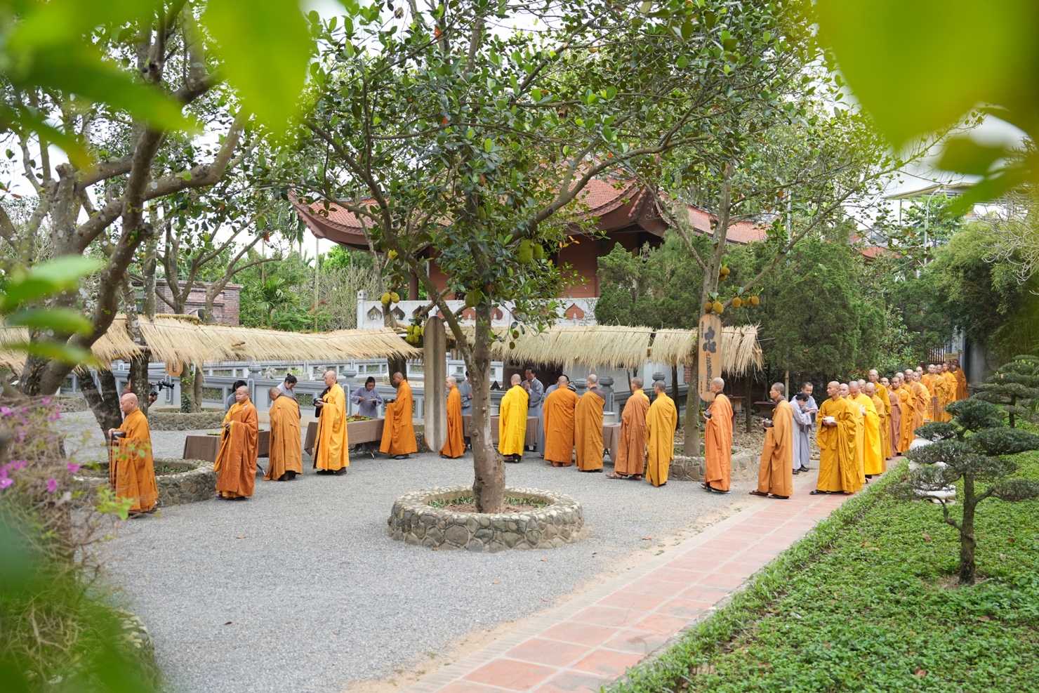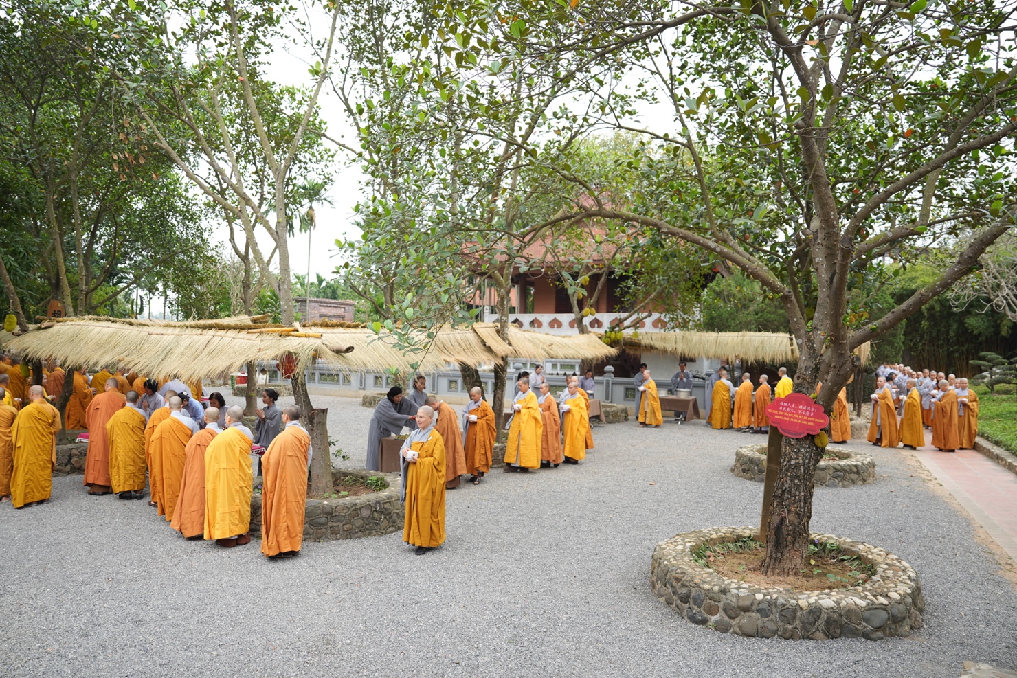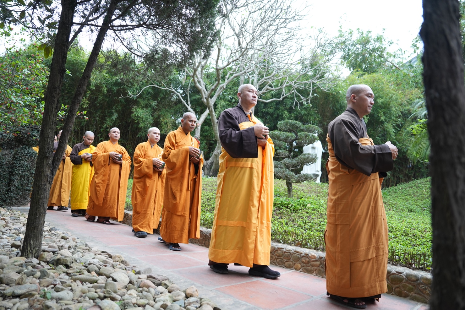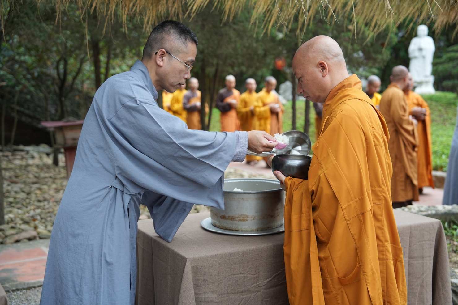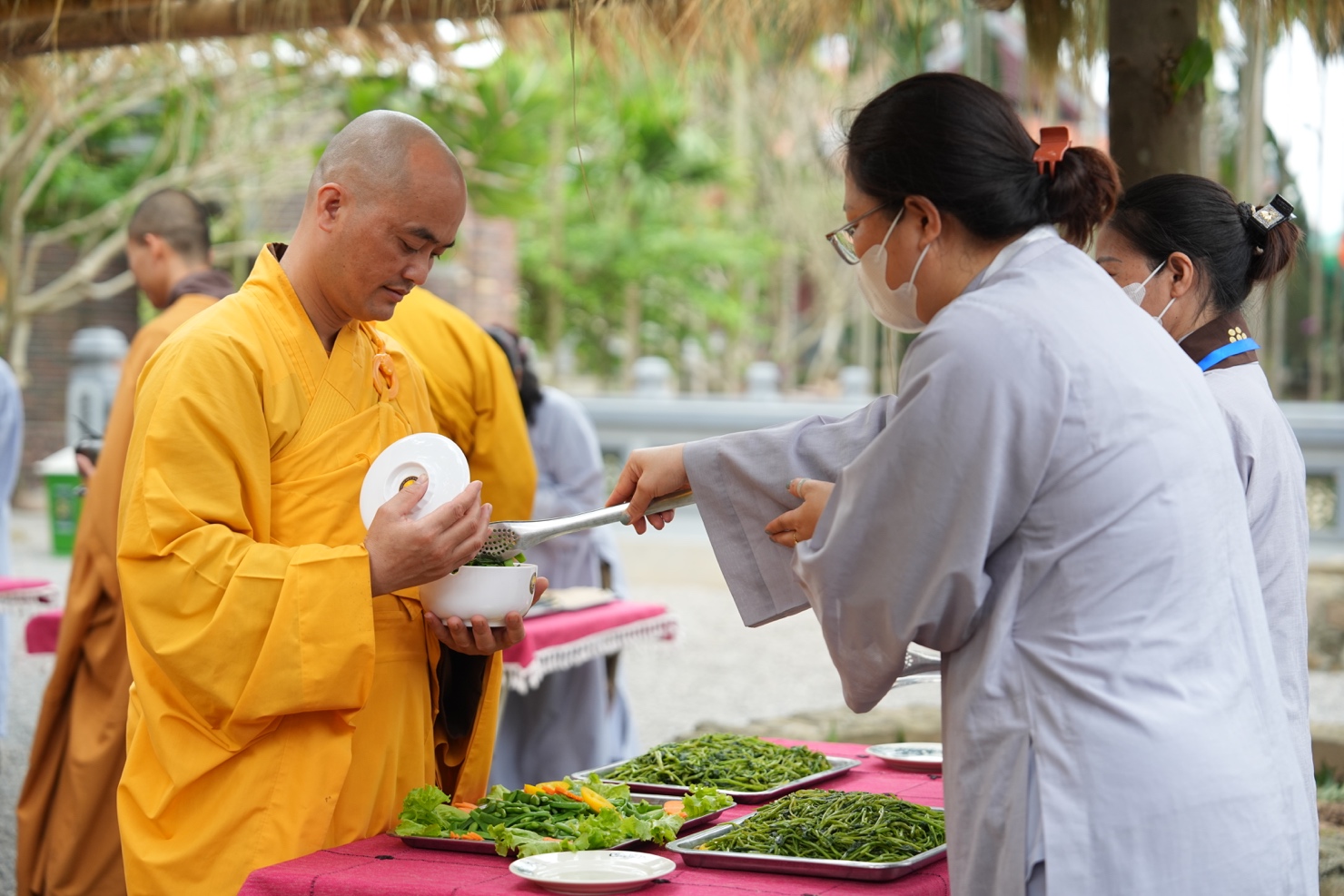Trong khuôn khổ khóa tu, hình ảnh chư Tăng Ni thực hành hạnh khất thực trong bữa trưa nay đã trở thành điểm nhấn sâu sắc. Từng bước chân an lạc, từng chiếc bình bát nâng trong tay đã tái hiện sinh động hình ảnh của Đức Phật và Tăng đoàn thuở xưa. Đây không chỉ là nghi thức truyền thống, mà là pháp tu căn bản nuôi dưỡng tâm khiêm cung, buông bỏ ngã chấp.