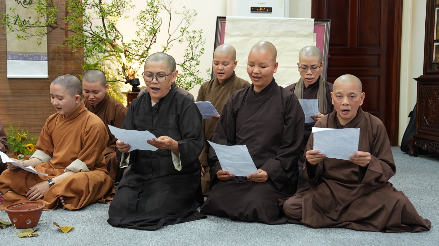 Khép lại phần pháp thoại, Thượng tọa đúc kết: Chính niệm là nền tảng để đại diện Như Lai. Mọi pháp tu đều quy về nuôi dưỡng chính niệm, hơi thở là chiếc cầu nối giúp quản trị tâm ý, Hoằng pháp không chỉ ở lời nói mà ở sự hành trì và chuyển hóa nội tâm, còn Hạnh khất thực chính là Bài học sống động về vô ngã và tương duyên.