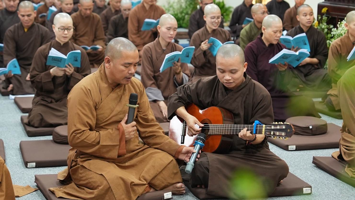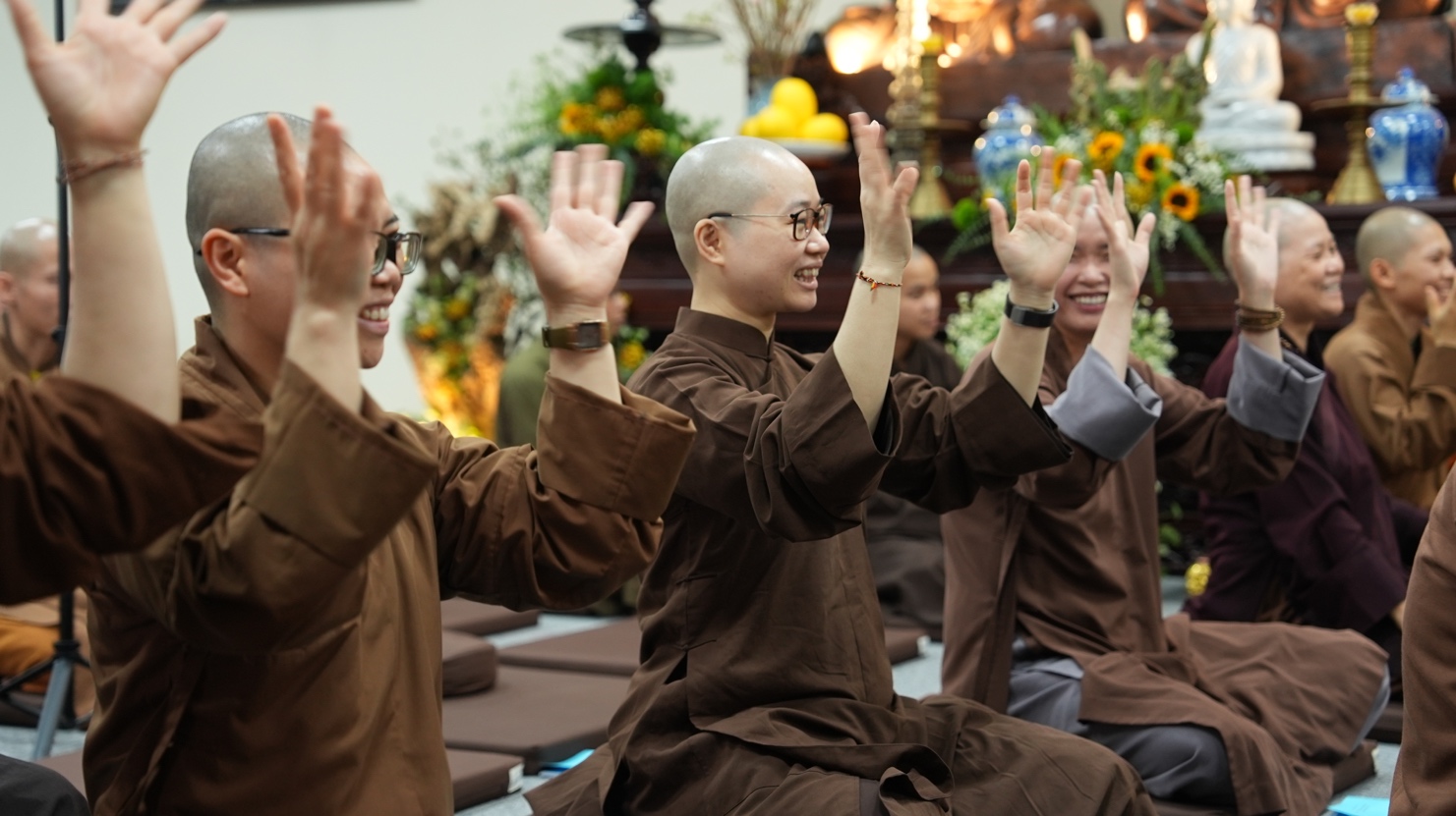 Trong không khí ấm áp của thiền môn, buổi giao lưu văn nghệ đã diễn ra như một pháp tu nhẹ nhàng. Những bài thiền ca vang lên không chỉ là âm nhạc, mà còn là phương tiện nuôi dưỡng tuệ giác và kết nối đại chúng. Từng giai điệu trở thành dòng suối mát, tưới tẩm tâm hồn, giúp hành giả thêm vững chãi và an lạc trên hành trình phạm hạnh. “Thắp sáng tình huynh đệ” không chỉ là chủ đề của khóa tu, mà còn là kim chỉ nam cho đời sống Tăng đoàn. Tình huynh đệ ấy không dừng ở hình thức, mà được nuôi dưỡng bằng hiểu biết, cảm thông và tinh thần vô ngã vị tha. Như lời Thiền sư Chân Nguyên đã dạy: “Tu tri sinh tử xứ – Ngộ thị tức Bồ đề”. Giác ngộ không ở đâu xa, mà ngay nơi sự quán chiếu sâu sắc thực tại. Khi mỗi hành giả biết trở về với chính mình, sống tỉnh thức trong từng hơi thở, thì tình huynh đệ tự nhiên được thắp sáng, và con đường hoằng pháp cũng từ đó mà rộng mở. Khóa tu tiếp tục là hành trình hun đúc lý tưởng phụng sự, để mỗi vị giảng sư tương lai mang theo ánh sáng tỉnh thức và tình huynh đệ, lan tỏa vào cuộc đời, lợi lạc quần sinh.