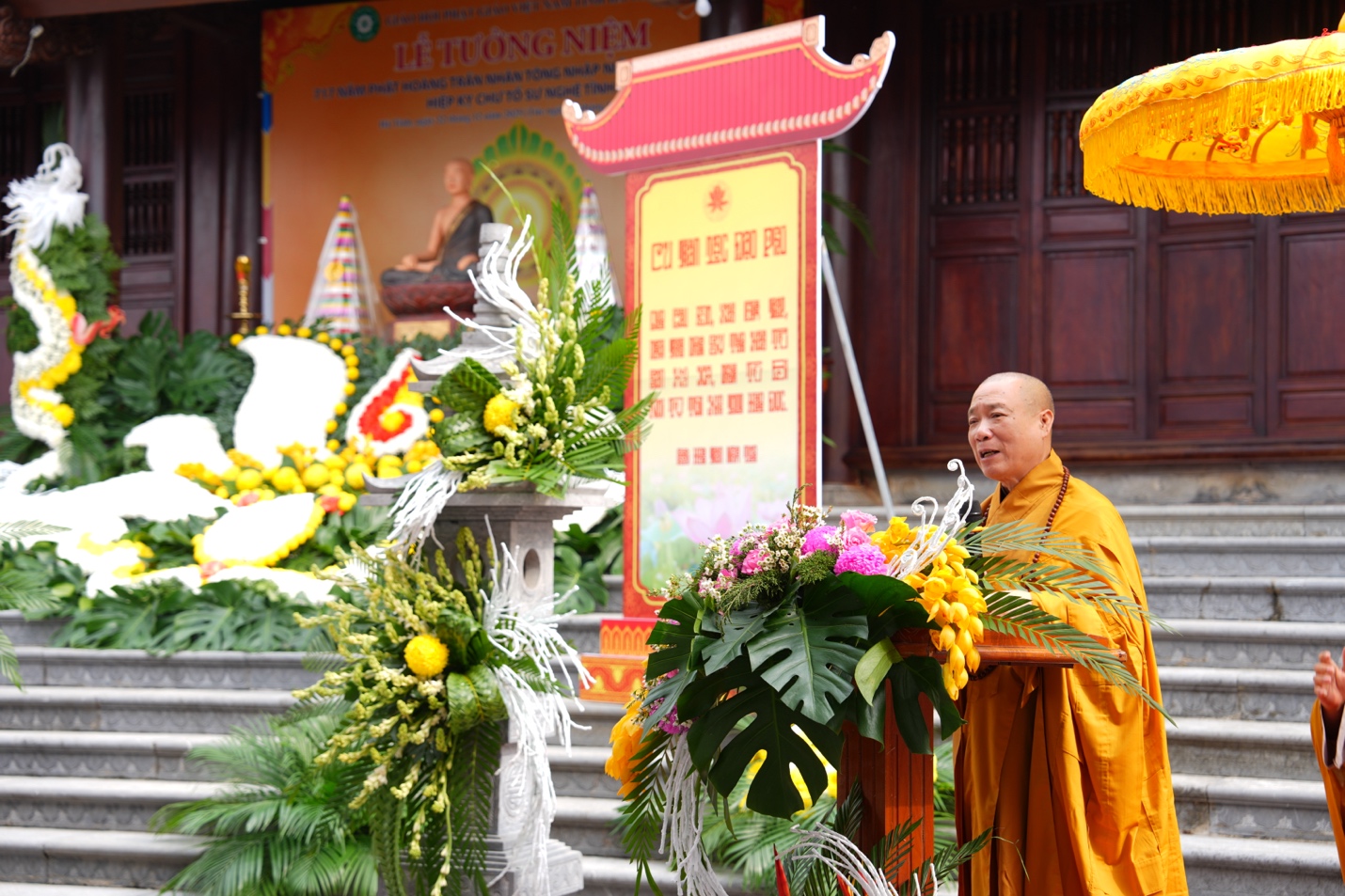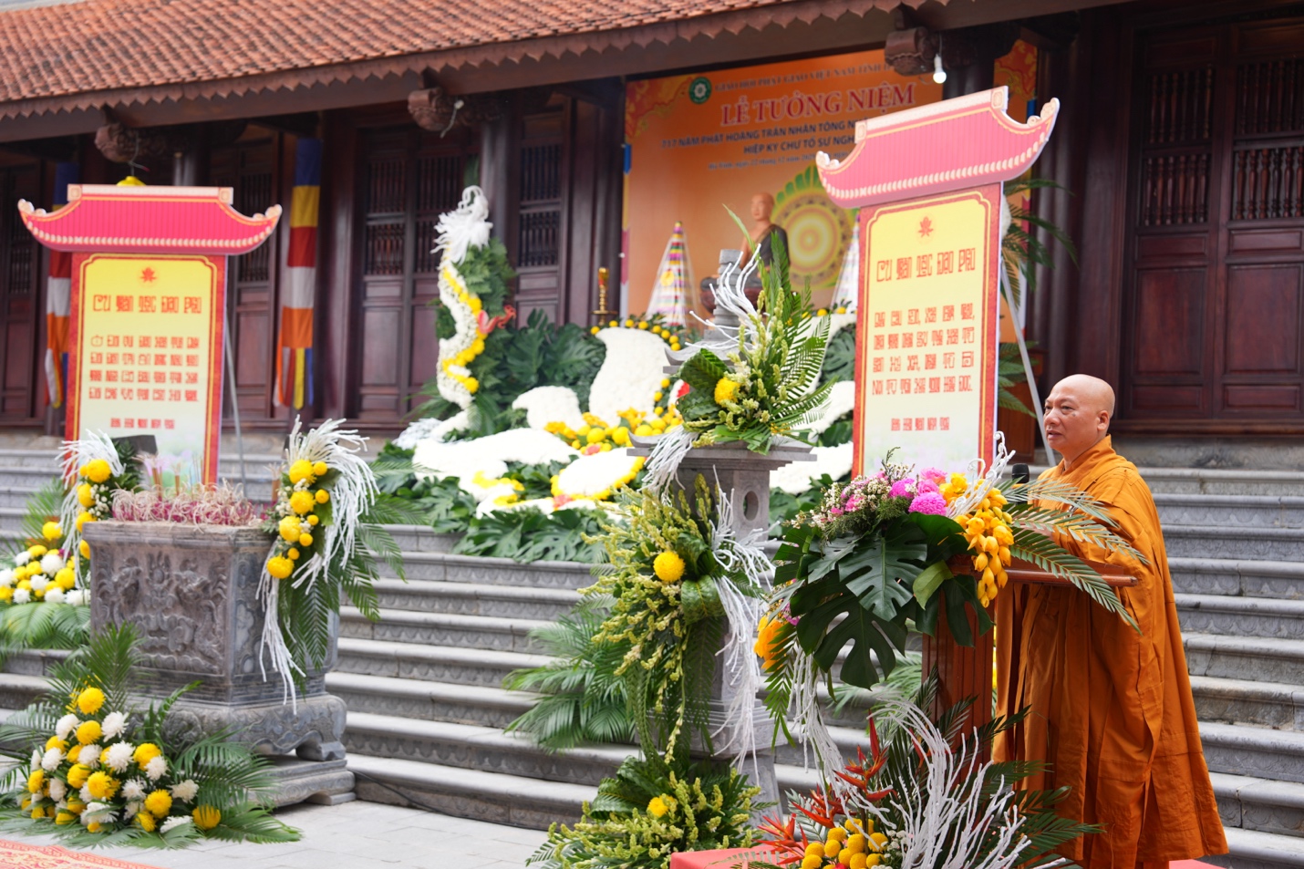 Dâng lời tưởng niệm của TW GHPGVN, Hoà thượng Thích Bảo Nghiêm bày tỏ lòng tri ân sâu sắc đối với công hạnh và đạo nghiệp của Đức Phật hoàng Trần Nhân Tông. Ngài là vị hoàng đế anh minh, lãnh tụ thiên tài, anh hùng dân tộc, nhà văn hóa lớn, nhà tư tưởng lớn, đồng thời là nhà tu hành giác ngộ đã để lại hệ thống tư tưởng đặc sắc về Phật giáo. Ngài sáng lập nền Phật giáo Trúc Lâm và dòng thiền Trúc Lâm Yên Tử, được các thế hệ nhân dân ta tôn xưng là Vua Phật Việt Nam.