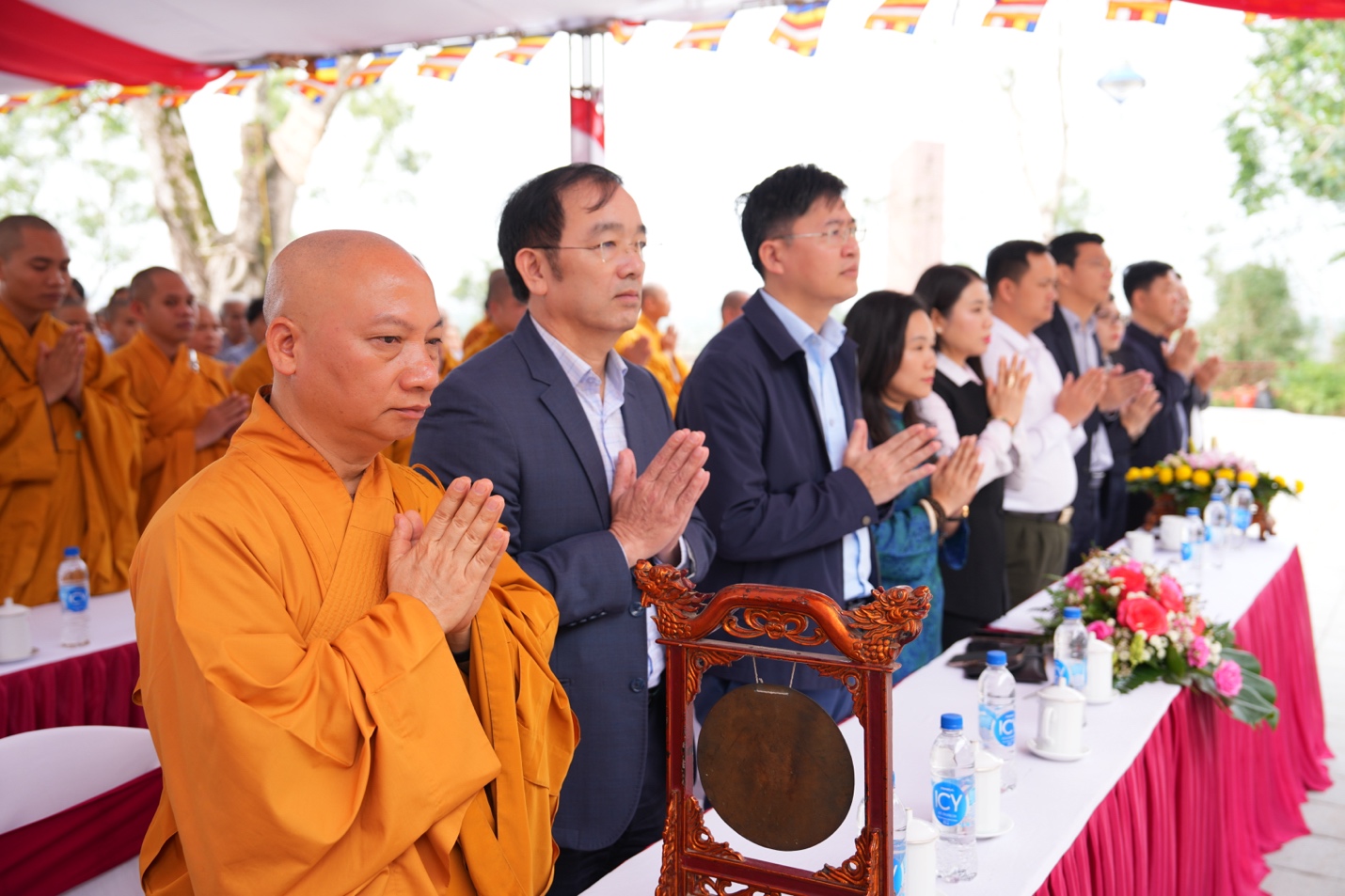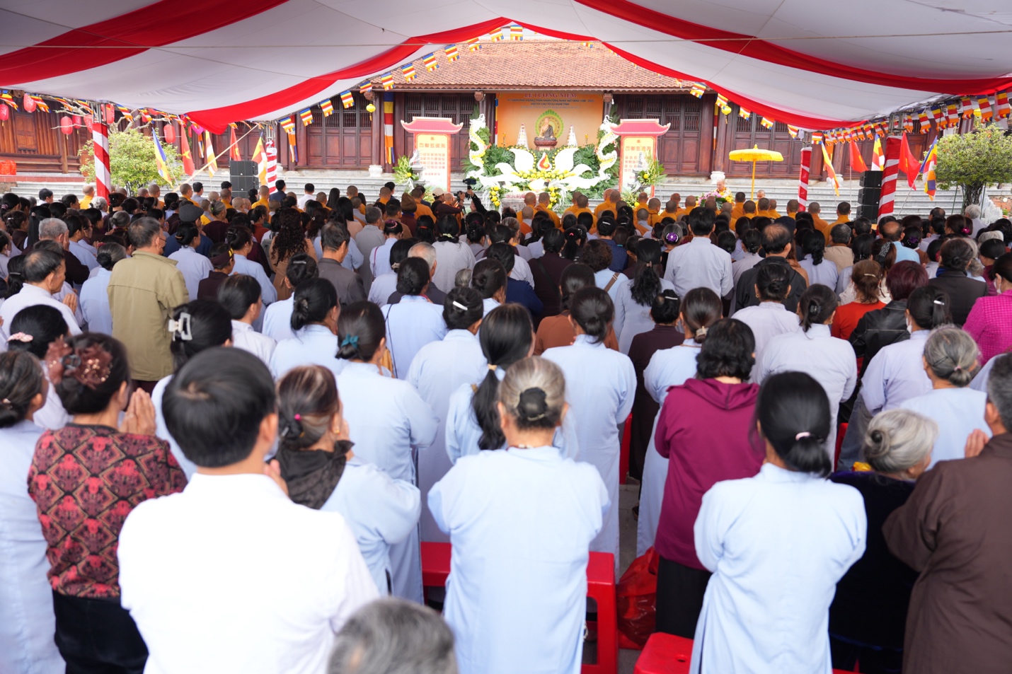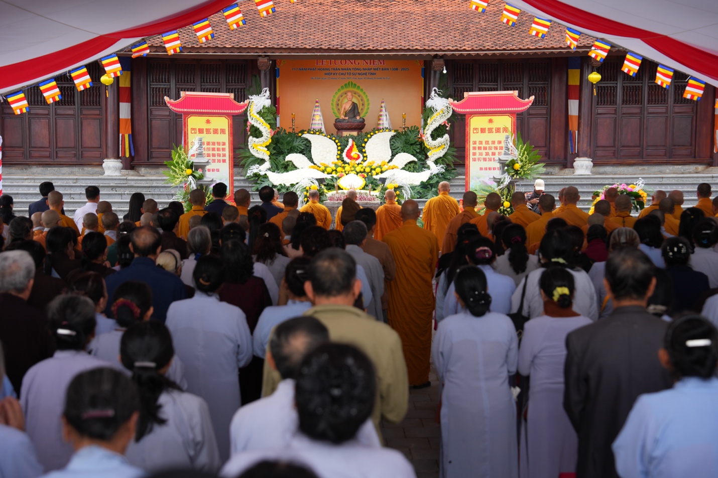 Trước lễ đài, Hoà Thượng Trưởng ban cùng chư tôn đức BTS GHPGVN tỉnh Hà Tĩnh và lãnh đạo địa phương đã dâng hương tưởng niệm, nhất tâm tri ân công đức Đức Vua – Phật Hoàng Trần Nhân Tông, khép lại buổi lễ thành tựu viên mãn.