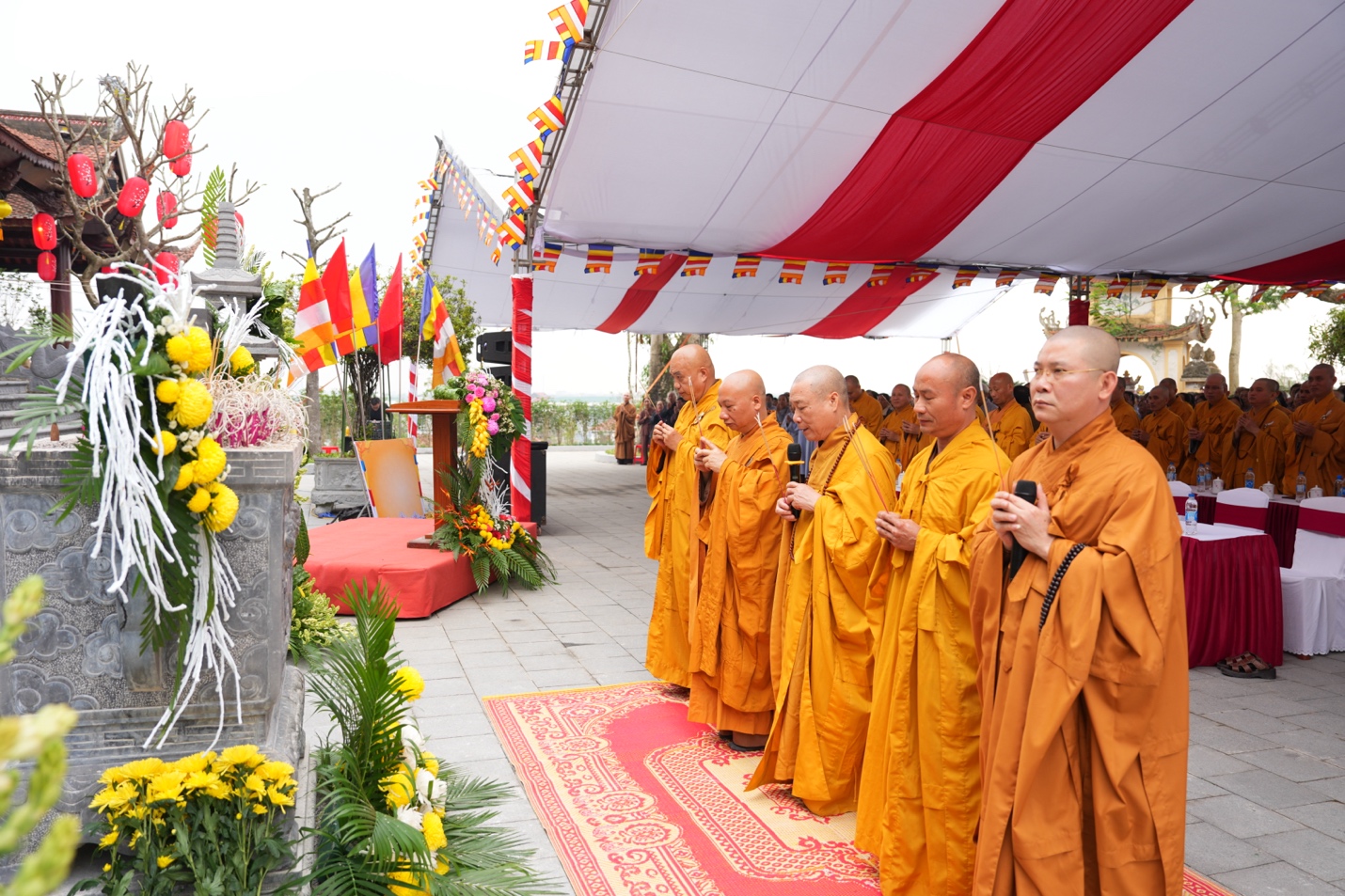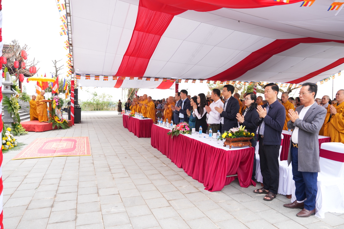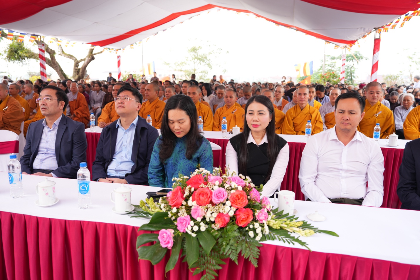 Trước lễ đài, Hoà Thượng Trưởng ban cùng chư tôn đức BTS GHPGVN tỉnh Hà Tĩnh và lãnh đạo địa phương đã dâng hương tưởng niệm, nhất tâm tri ân công đức Đức Vua – Phật Hoàng Trần Nhân Tông, khép lại buổi lễ thành tựu viên mãn.