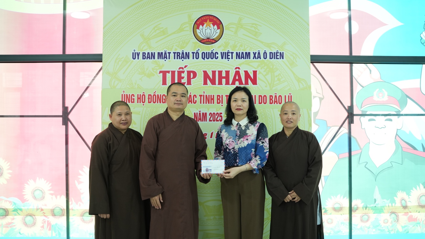 Chiều ngày 02/12/2025, chư Tăng Ni GHPGVN khu vực Đan Phượng (TP. Hà Nội) do Đại đức Thích Thái Minh – UV BTS GHPGVN TP. Hà Nội, Chánh Văn phòng Trường TCPH TP. Hà Nội làm trưởng đoàn, đã đến Ủy ban MTTQVN xã Đan Phượng, xã Liên Minh, xã Ô Diên để gửi số tiền ủng hộ các tỉnh miền Trung, Tây Nguyên bị thiệt hại do bão lũ năm 2025.