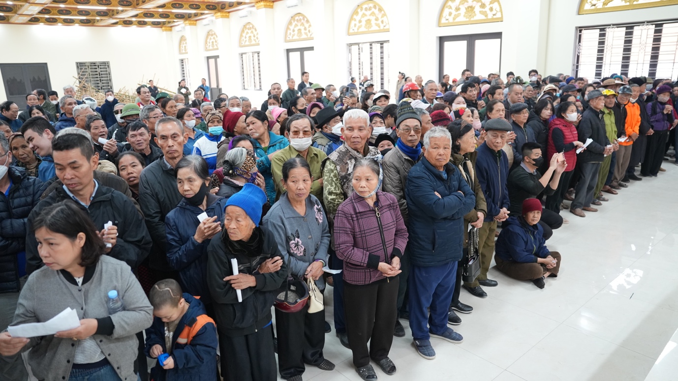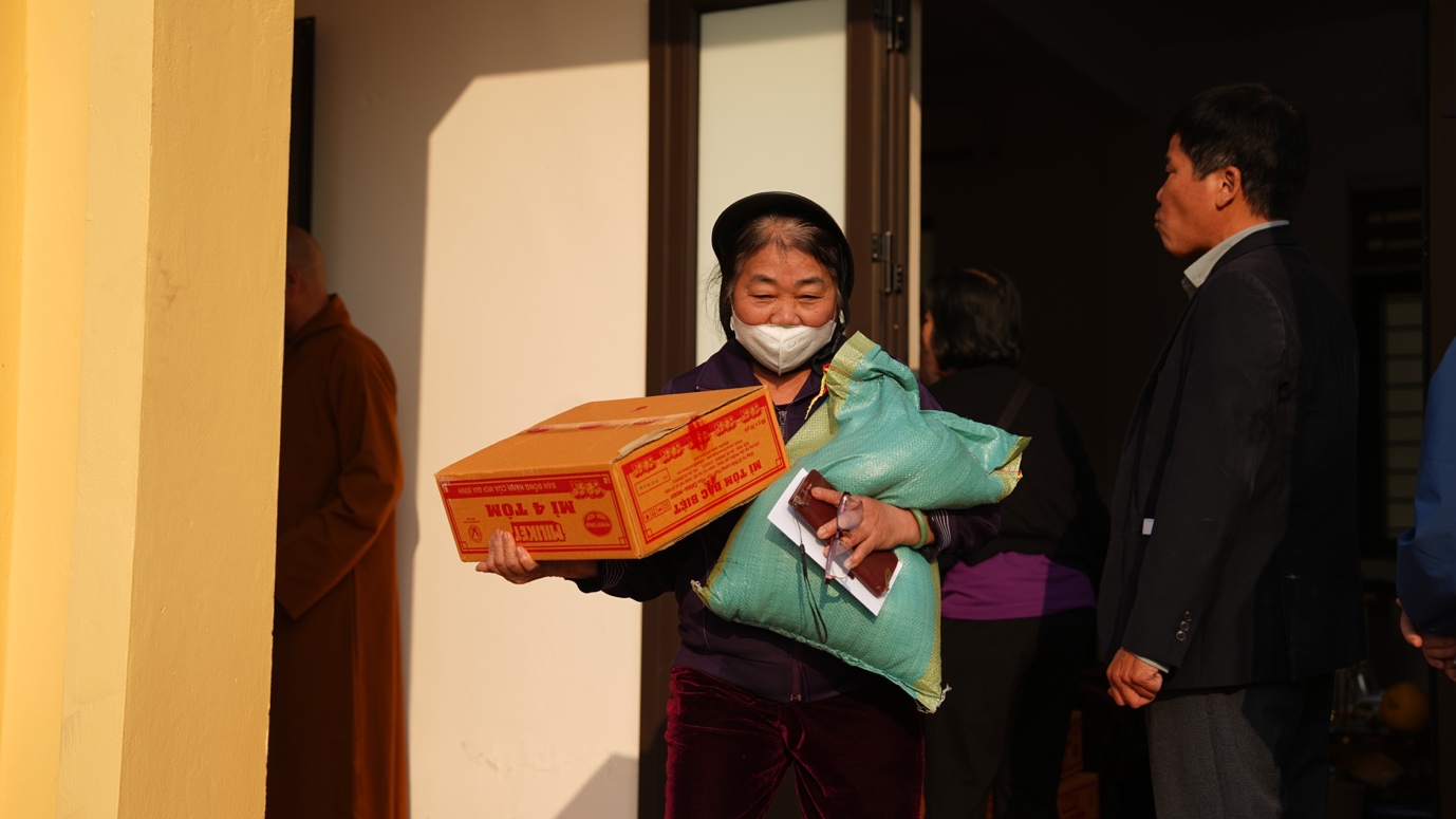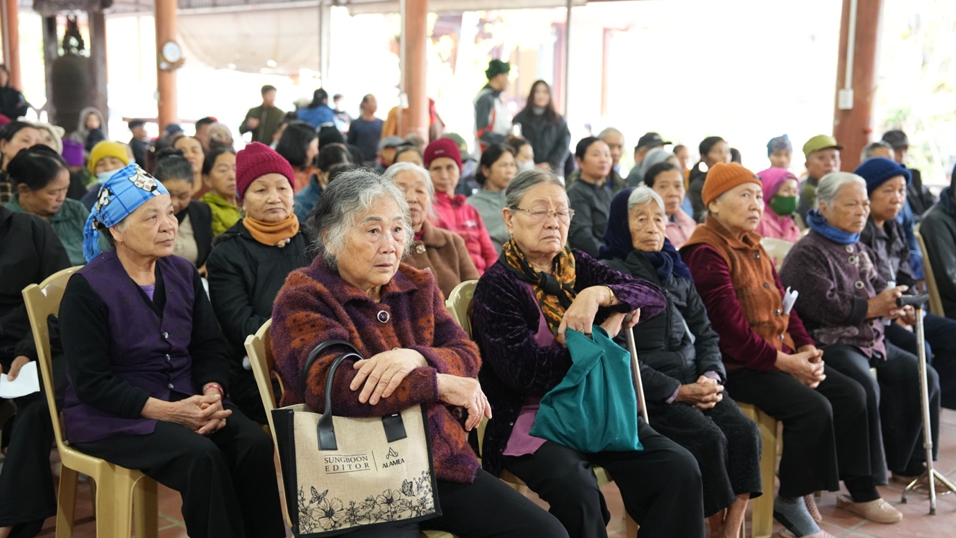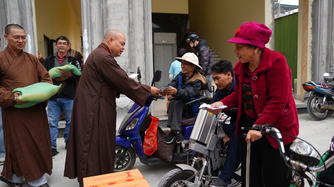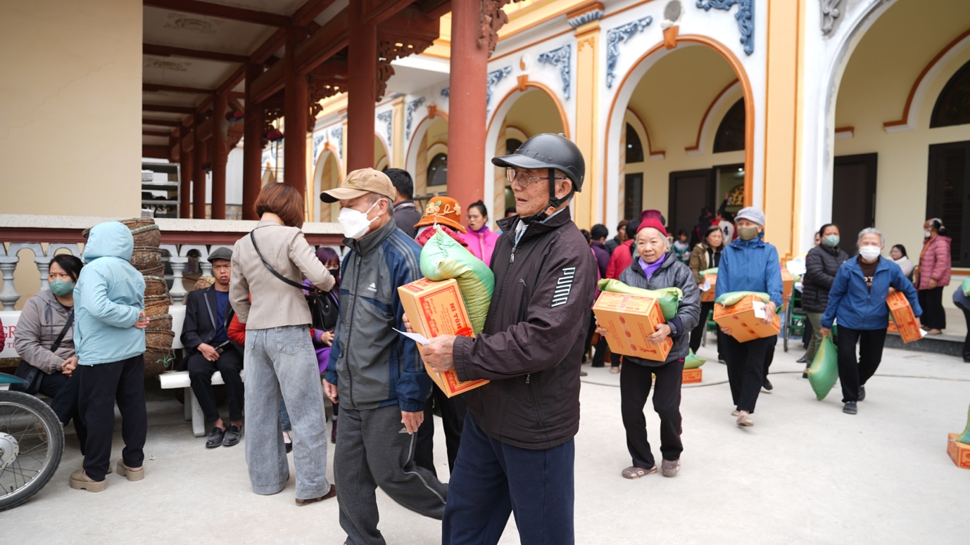 Tiếp nối hành trình thiện nguyện đầy ý nghĩa, chùa Thánh Long (tỉnh Hưng Yên) tiếp tục là điểm dừng chân quen thuộc hàng năm của đoàn từ thiện. Tại đây, đoàn đã trao tặng 800 phần quà Tết đến các hộ gia đình có hoàn cảnh đặc biệt khó khăn và người khuyết tật. Trong tiết trời ngày đông se lạnh, những cái nắm tay thật chặt, những nụ cười hiền hòa, ấm áp cùng những phần quà nghĩa tình được trao tận tay đã tạo nên một không gian thấm đẫm yêu thương, lan tỏa tinh thần sẻ chia và gắn kết. Đó cũng chính là sự gặp gỡ của những tấm lòng đồng cảm, là biểu hiện sinh động cho tinh thần “Phật giáo đồng hành cùng dân tộc”, luôn hiện hữu và sẻ chia cùng đời sống nhân dân.