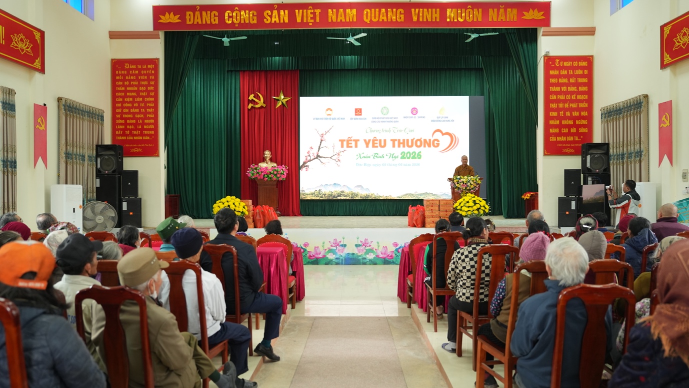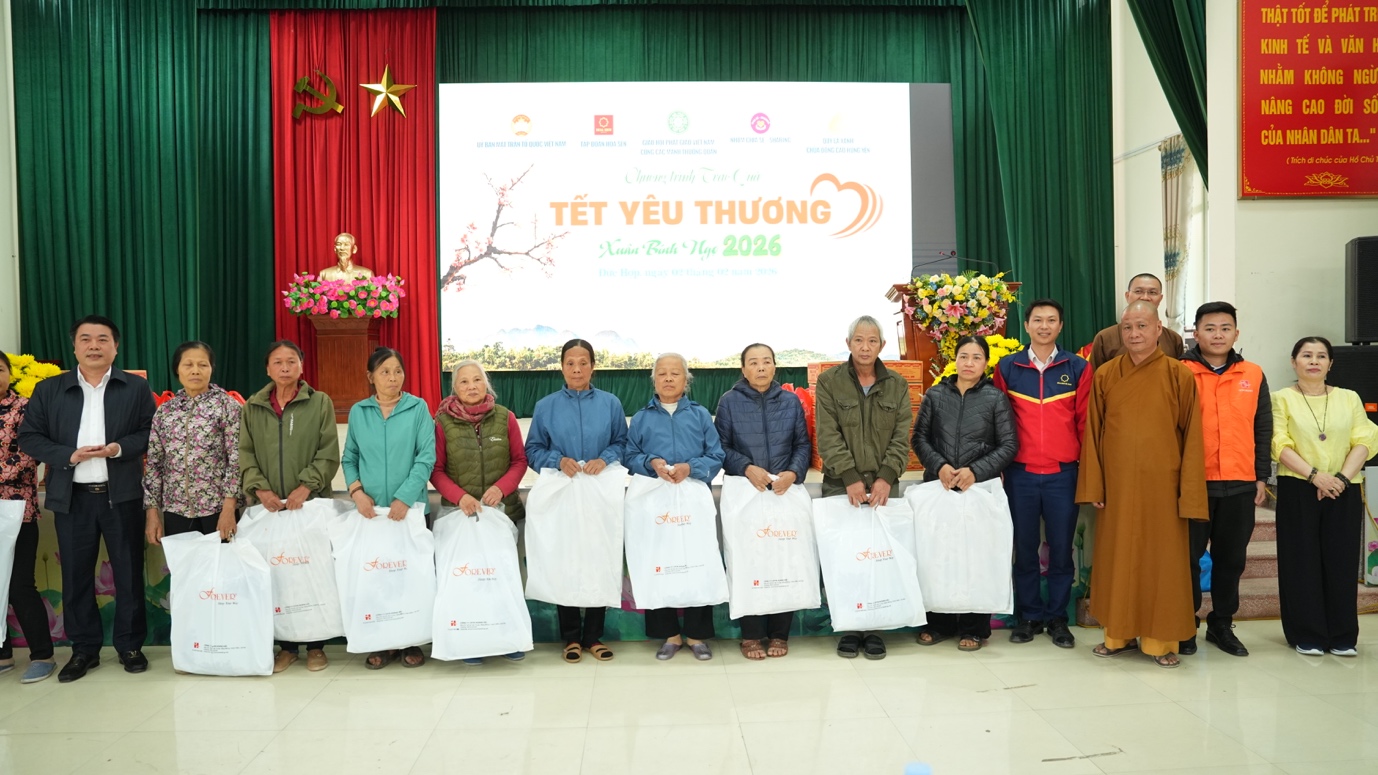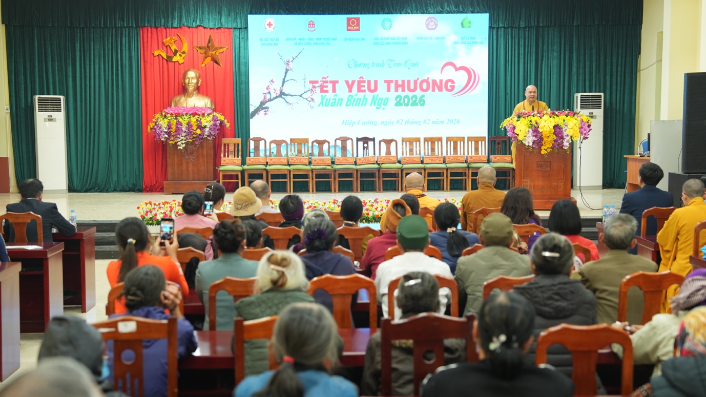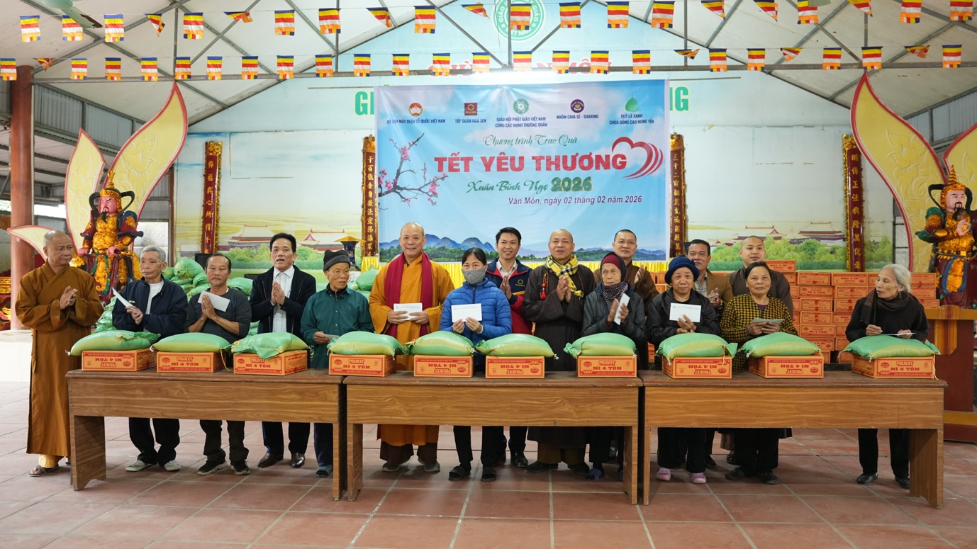 Trong chuỗi hành trình “Tết yêu thương Xuân Bính Ngọ 2026”, ngày 02/02/2026, Đoàn Ban Kinh tế Tài chính TW GHPGVN, Ban TT-XH GHPGVN TP.HCM phối hợp với Nhóm Chia sẻ – Sharing, Quỹ Lá xanh chùa Đống Cao (Hưng Yên), Tập đoàn Hoa Sen, cùng các mạnh thường quân đã trao gửi hơn 2.000 phần quà đến tận tay người dân tỉnh Hưng Yên.