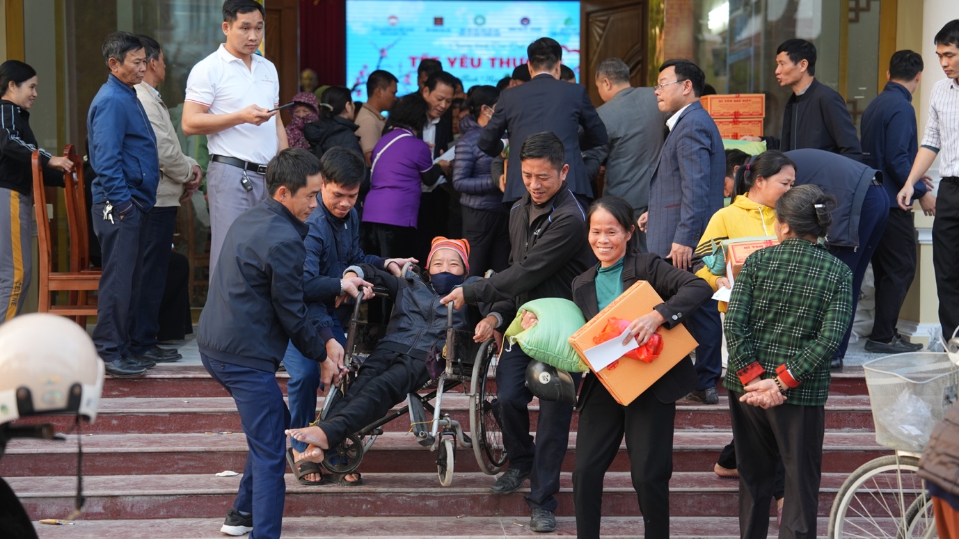 Chiều cùng ngày, đoàn tiếp tục trao tặng 1.600 phần quà đến người dân tại các xã Đức Hợp, Hiệp Cường, Hoàng Hoa Thám, Đa Lộc và xã Tiên Tiến (tỉnh Hưng Yên). Những phần quà tuy giản dị nhưng thấm đượm tình đời nghĩa đạo, gửi gắm sự quan tâm, sẻ chia và những lời chúc an lành, ấm áp của chư tôn đức cùng quý mạnh thường quân đến với bà con trong những ngày Tết cổ truyền đang cận kề, góp phần mang thêm niềm vui và hơi ấm mùa Xuân đến với từng gia đình.