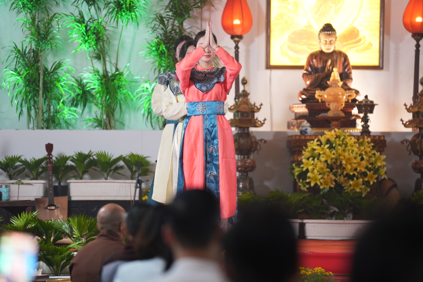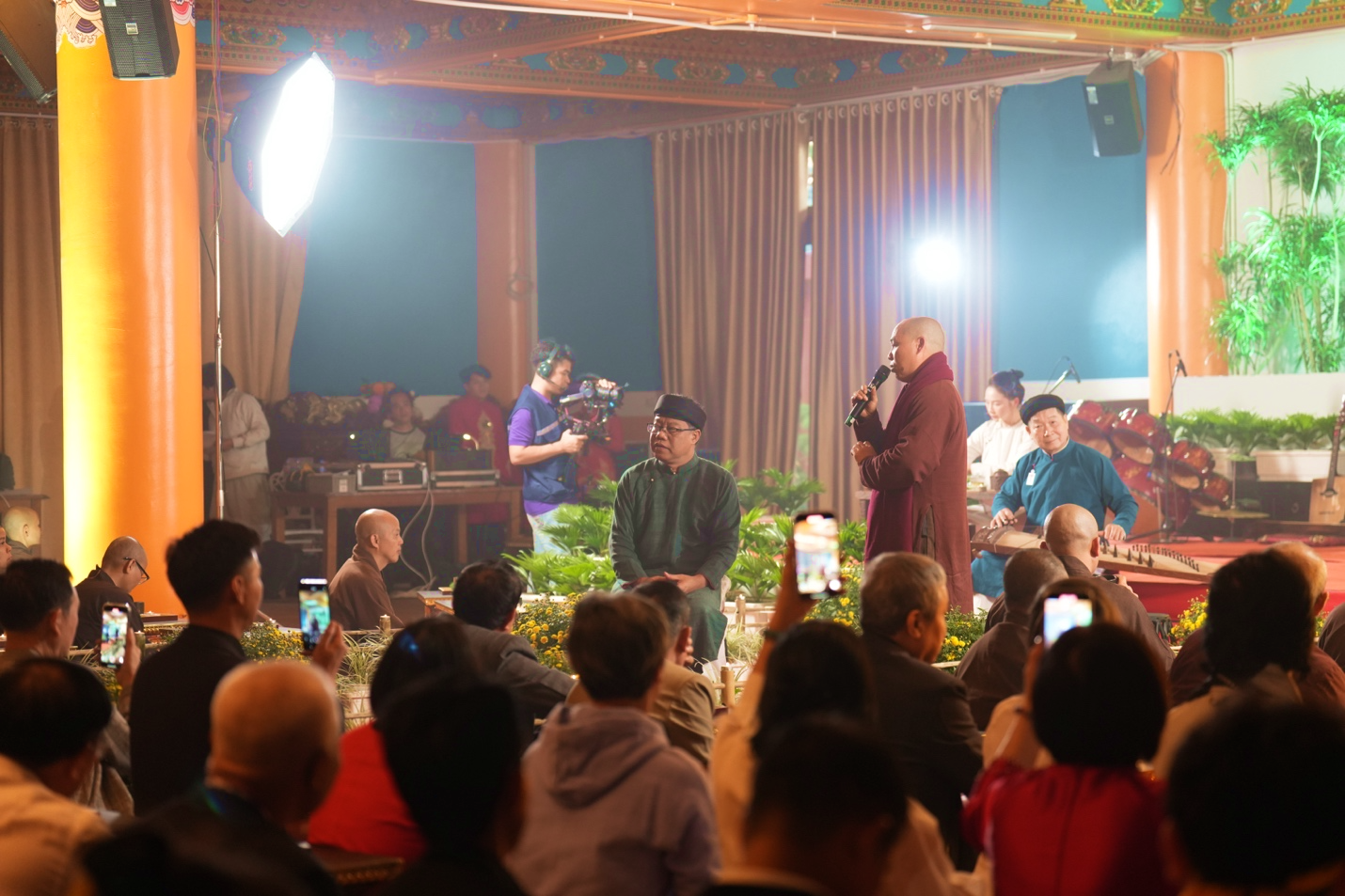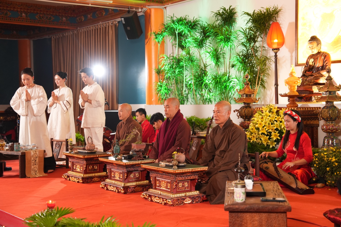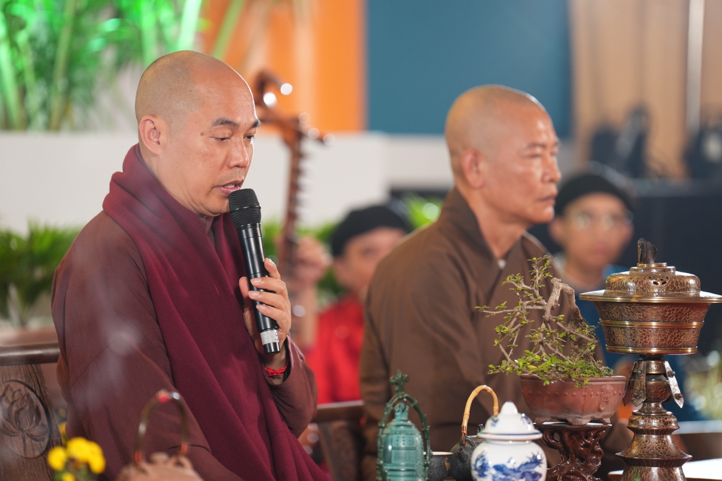 Khi hương trà vẫn đang lan nhẹ trong từng nhịp thở, toàn thể khán phòng bước vào một miền sâu lắng hơn nữa – đó là miền của thiền – của thơ – của sự tỉnh thức qua ngôn từ và âm thanh. Những tiếng thơ trầm ấm đã được ngâm nga qua sự thể hiện của TT Thích Trường Xuân và Tiến sĩ Nguyễn Xuân Diện.