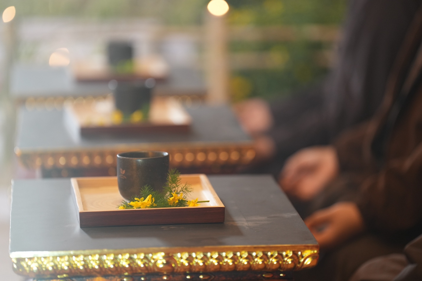 Giữa hương trầm nhẹ bay, giữa ánh sáng dịu lành, tiếng nhạc thiền êm ái bên tai, tất cả cùng hội tụ về nơi đây để bước vào không gian Thiền Trà Tri Ân – nơi nước và lửa gặp nhau, nơi tâm được soi chiếu qua từng giọt trà, và là nơi năng lượng từ bi được lan tỏa trong từng hơi thở chính niệm.