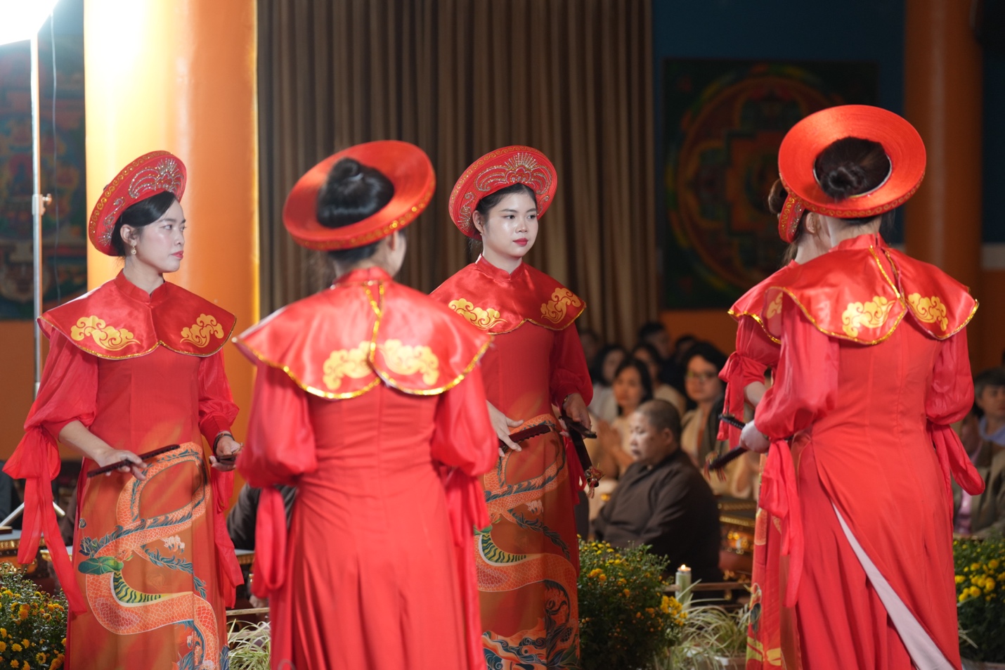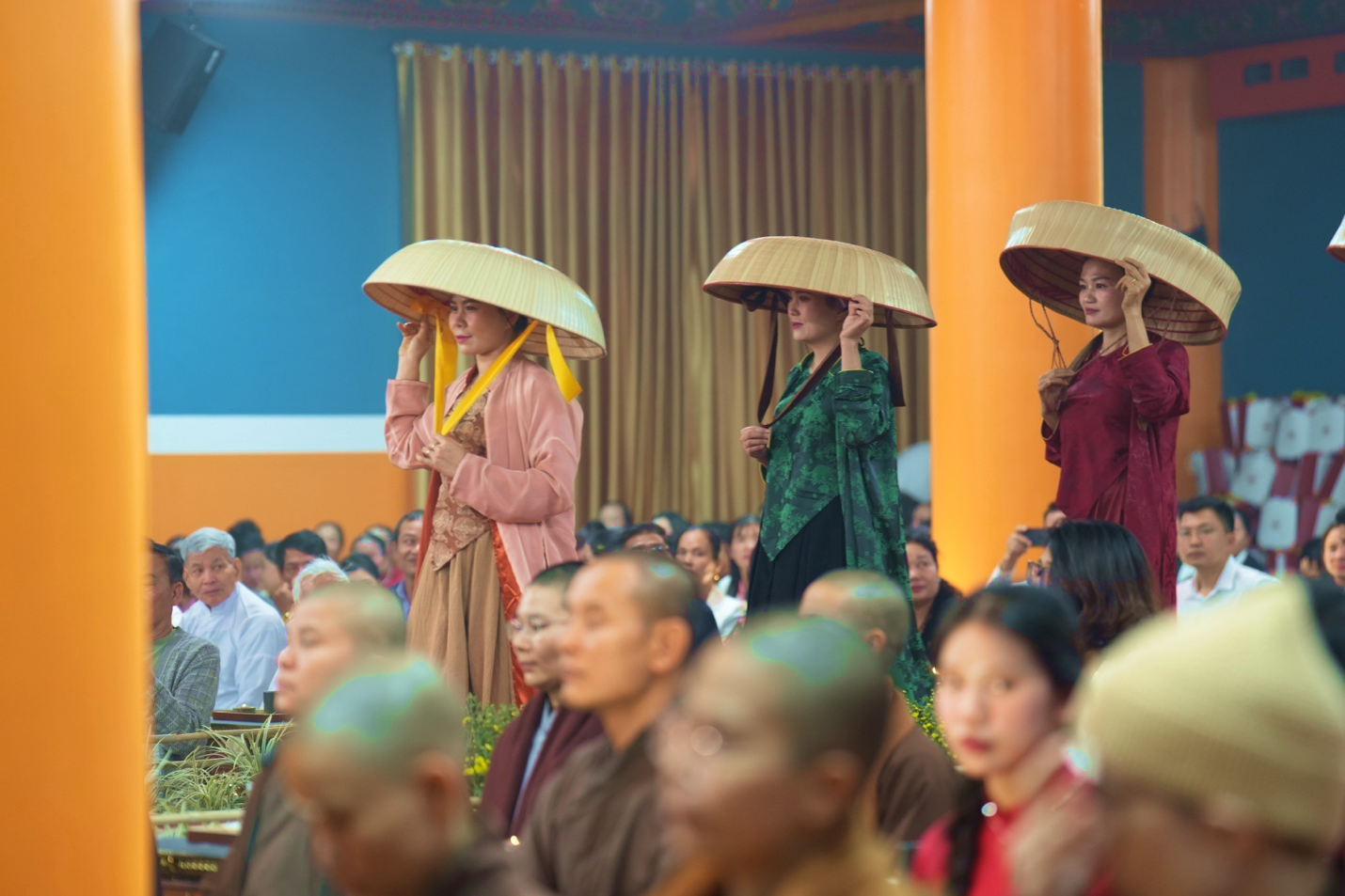 Sau những vần thiền thi sâu lắng, cả gian phòng cùng trở về với hơi thở của làng quê – của văn hóa dân tộc – của cội nguồn Việt qua phần Trình diễn Quốc phục truyền thống do nhân dân Làng Liên Trì thực hiện, họ không phải là người mẫu sân khấu, mà là những con người chân chất của đời sống thường ngày, mang trên mình hồn cốt quê hương.