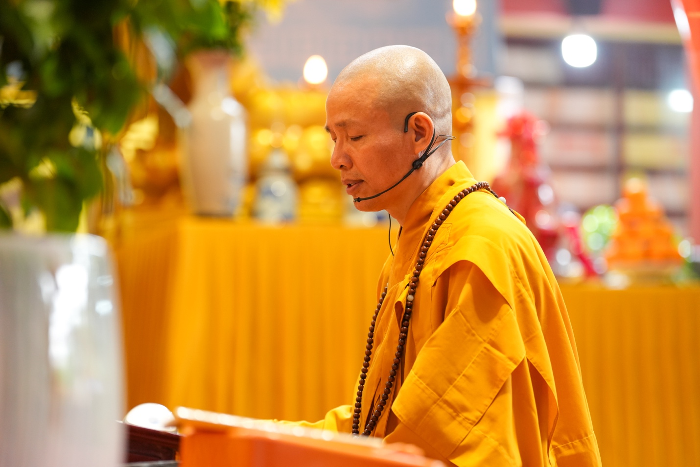 Thượng tọa cầu nguyện Phật pháp hưng long, quốc thái dân an, đạo tâm kiên cố, chúng sinh an lạc.