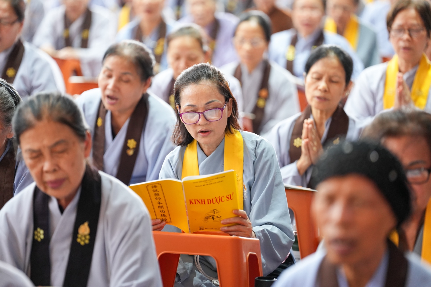 Sau thời pháp thoại, Thượng tọa Thích Minh Quang tiếp dẫn đại chúng tụng thời Kinh Dược Sư, đồng nhất tâm cầu nguyện cho thế giới hòa bình, nhân sinh an lạc, mưa thuận gió hòa. Khép lại buổi sáng ngày thứ 4 của Pháp hội Dược Sư lần thứ XX trong bầu không khí trang nghiêm và viên mãn.
