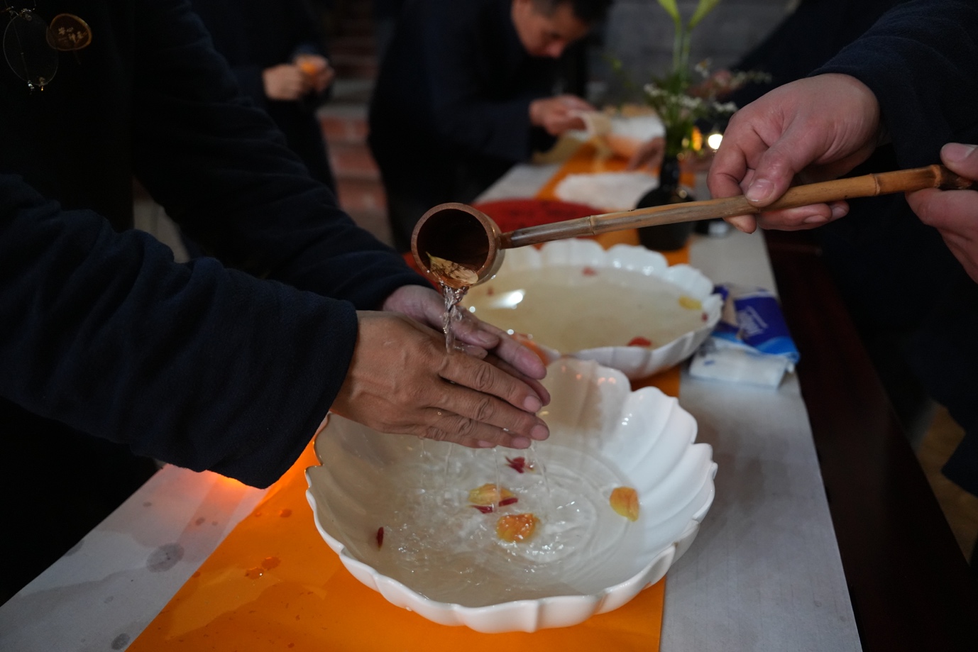Trước khi vào buổi trà đạo chính thức, tất cả những người tham dự đều phải rửa tay sạch sẽ. Đây là nghi thức thanh tịnh thân tâm, thể hiện lòng kính trọng và sự chuẩn bị tinh thần bước vào không gian tĩnh lặng. Hành động này giúp gột rửa bụi bẩn thực tế và phiền não, tập trung vào hiện tại, kết nối với tinh chất trà và thiên nhiên.