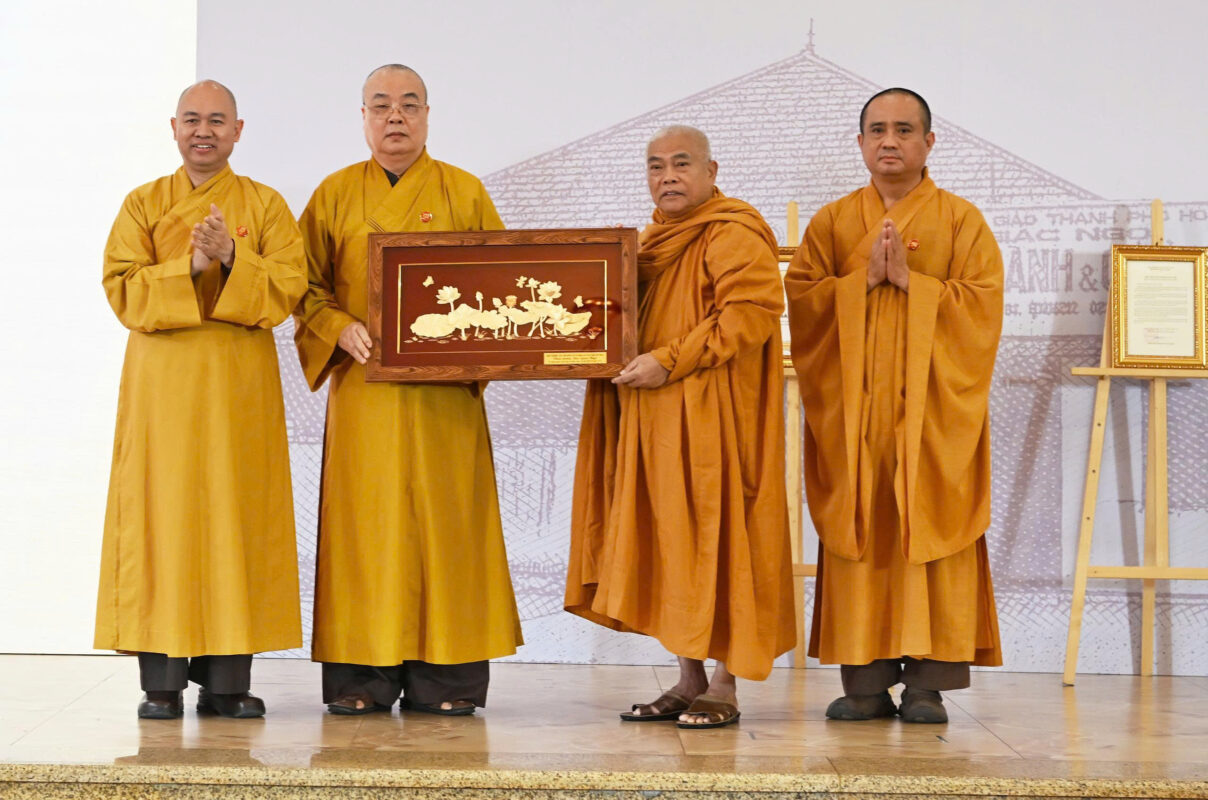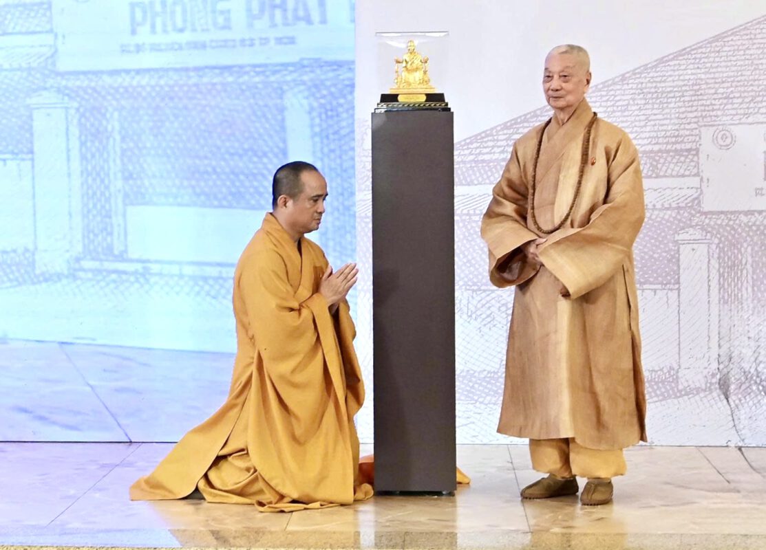 Tại buổi lễ, Đức Pháp chủ GHPGVN đã trao tặng Báo Giác Ngộ tôn tượng Đức Phật hoàng Trần Nhân Tông. Món quà đặc biệt này tôn vinh tinh thần “hộ quốc an dân” và truyền thống Phật giáo dấn thân. Đây chính là giá trị cốt lõi mà Báo Giác Ngộ luôn gìn giữ trong hành trình phụng sự đạo pháp và dân tộc