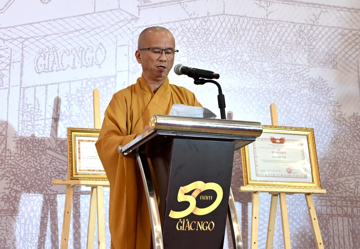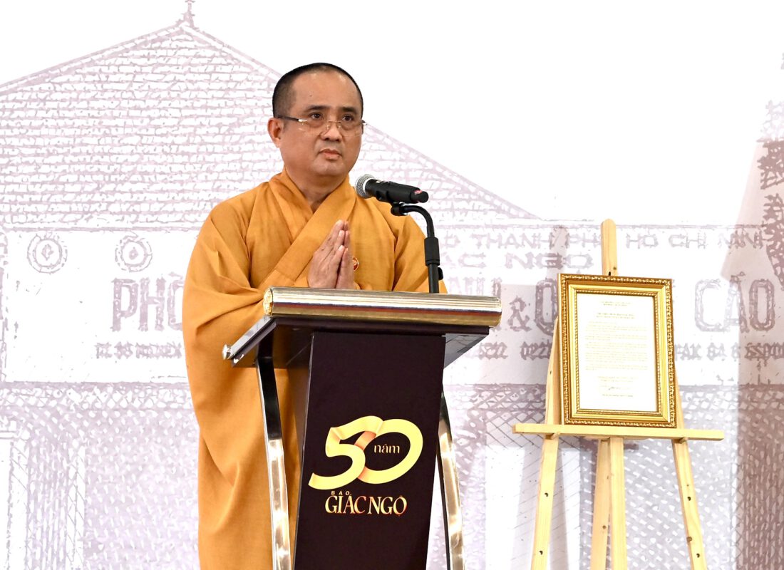 Phát biểu khai mạc tại buổi lễ, Thượng tọa Thích Tâm Hải – Tổng Biên tập Báo Giác Ngộ bày tỏ niềm xúc động sâu sắc trước sự hiện diện đông đủ của chư Tôn Trưởng lão, chư Hòa thượng, chư vị giáo phẩm, quý lãnh đạo và bạn hữu gần xa, xem đây là nguồn động viên lớn lao đối với tập thể những người làm Báo Giác Ngộ trong thời khắc đặc biệt – đánh dấu nửa thế kỷ hoạt động liên tục của tờ báo Phật giáo lâu đời nhất, đồng thời gắn liền với 100 năm Báo chí Cách mạng Việt Nam.