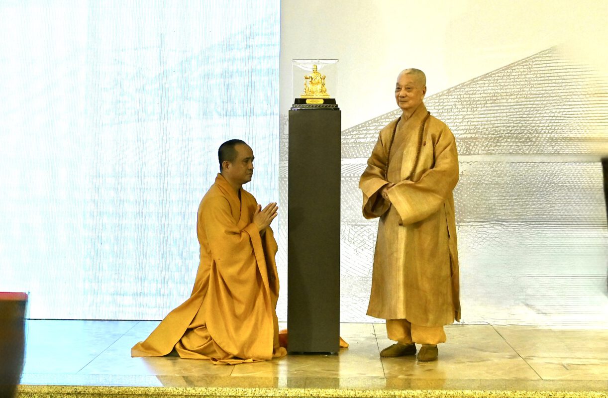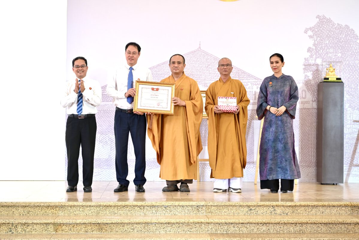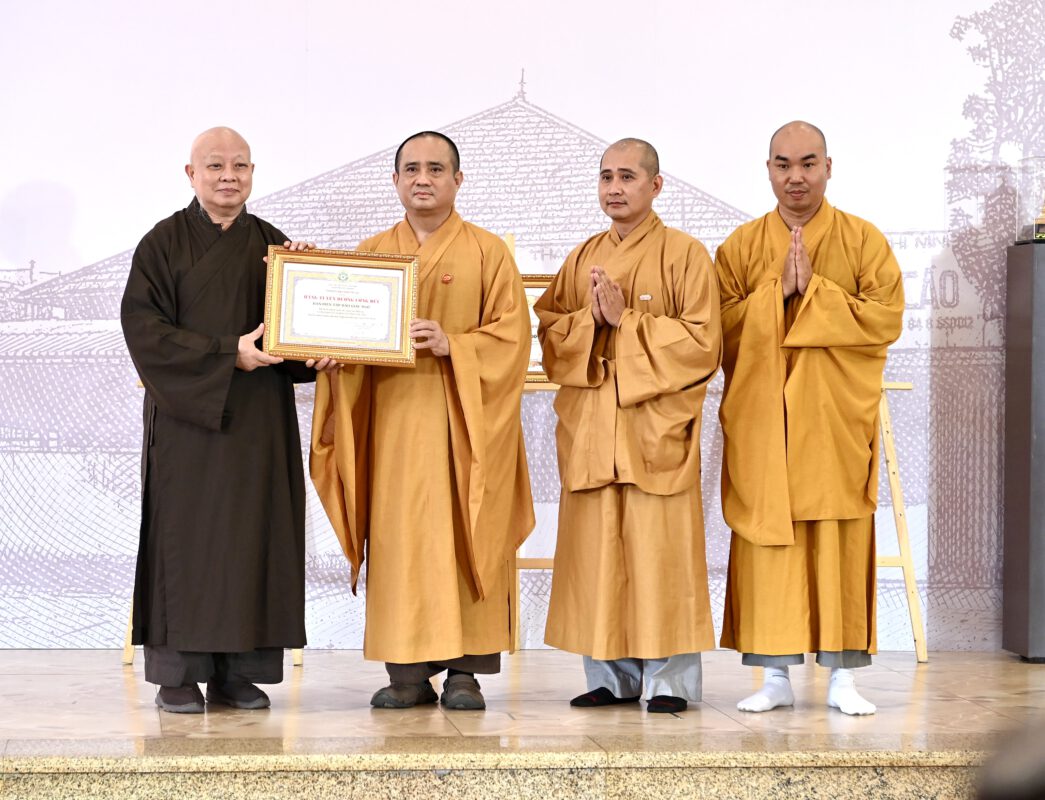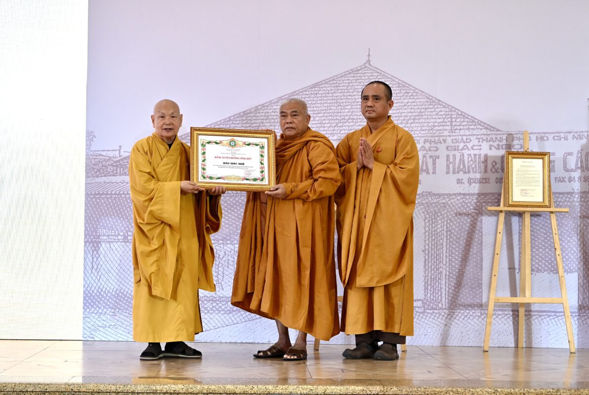 Tại buổi lễ, Đức Pháp chủ GHPGVN đã trao tặng Báo Giác Ngộ tôn tượng Đức Phật hoàng Trần Nhân Tông. Món quà đặc biệt này tôn vinh tinh thần “hộ quốc an dân” và truyền thống Phật giáo dấn thân. Đây chính là giá trị cốt lõi mà Báo Giác Ngộ luôn gìn giữ trong hành trình phụng sự đạo pháp và dân tộc