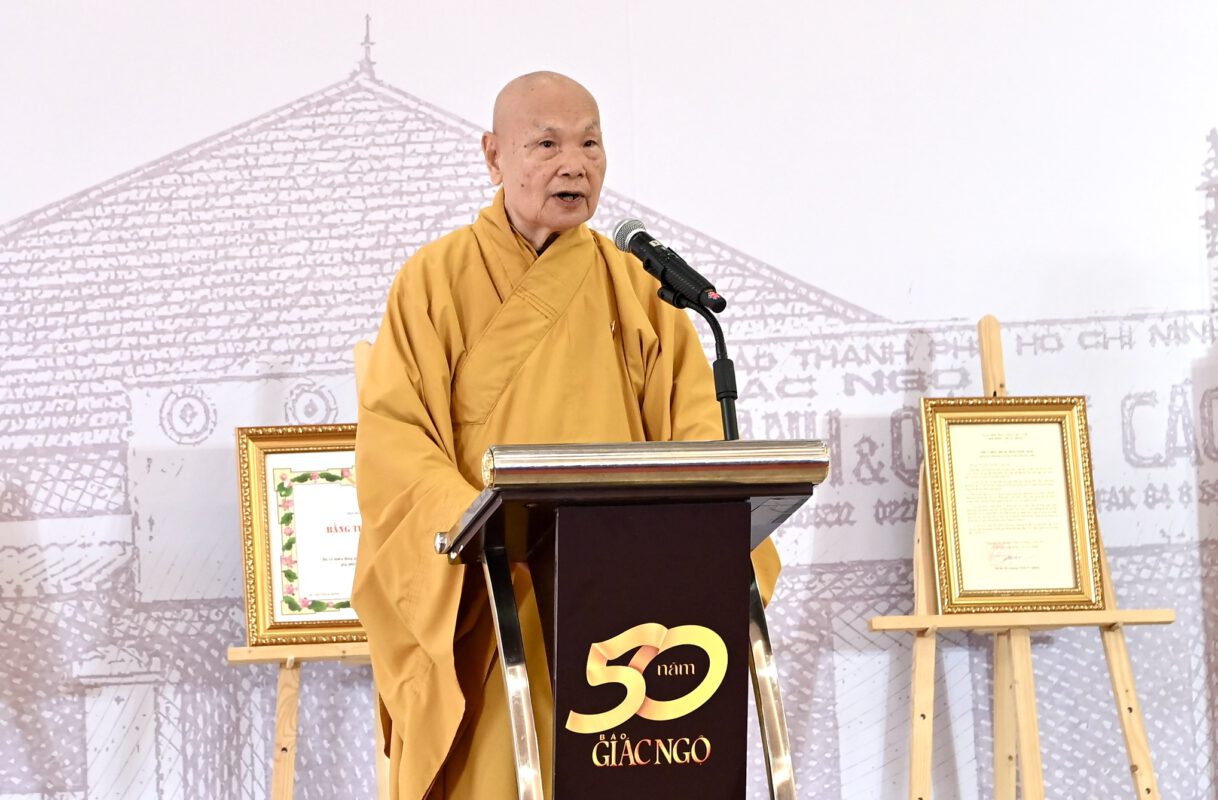Nhân sự kiện đặc biệt này, Trưởng lão Hòa thượng Viên Minh đã tuyên đọc thư chúc mừng của Đức Pháp chủ GHPGVN – Đại lão Hòa thượng Thích Trí Quảng. Trong thư, Ngài ghi nhận Báo Giác Ngộ là cơ quan báo chí Phật giáo có bề dày lịch sử nhất Việt Nam, đồng thời bày tỏ niềm tin tờ báo sẽ tiếp tục giữ vững vị thế là tiếng nói tin cậy của Giáo hội, là người bạn đồng hành “thiện hữu tri thức” của Tăng Ni, Phật tử trong kỷ nguyên thông tin đa dạng.