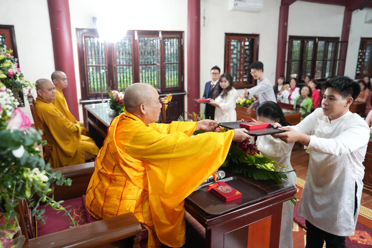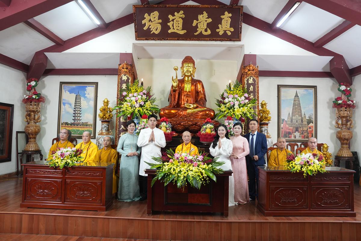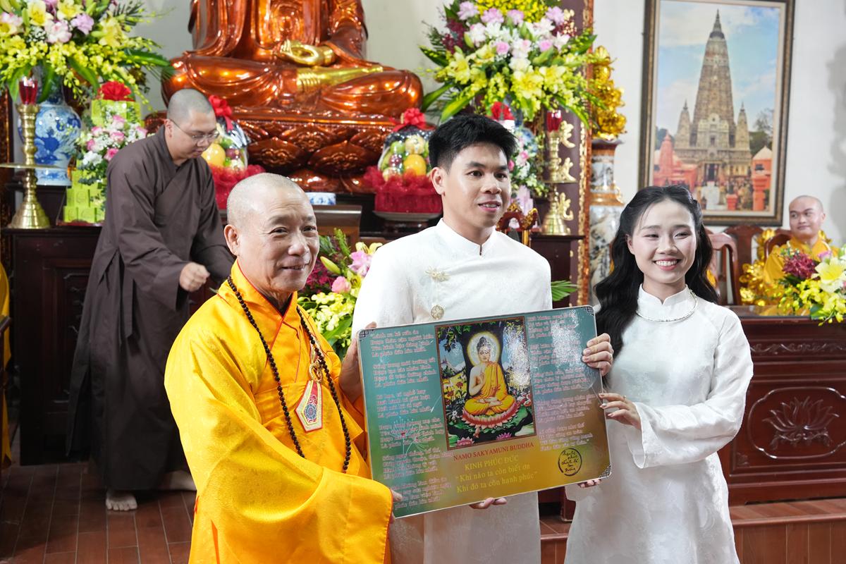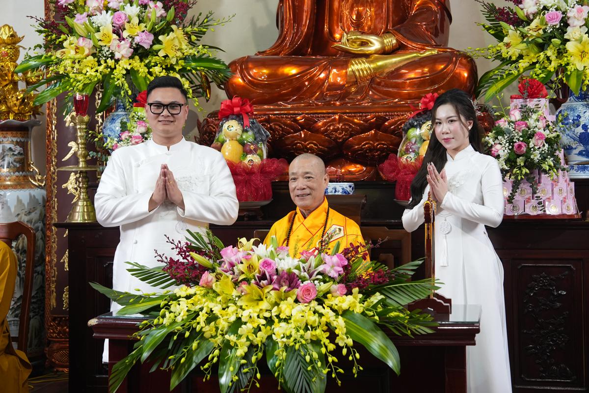 Cuối buổi lễ, Hòa thượng trụ trì cùng chư tôn đức và toàn thể đại chúng đã làm lễ chúc phúc cho ba đôi trẻ “trăm năm tình viên mãn, bạc đầu nghĩa phu thê”.
