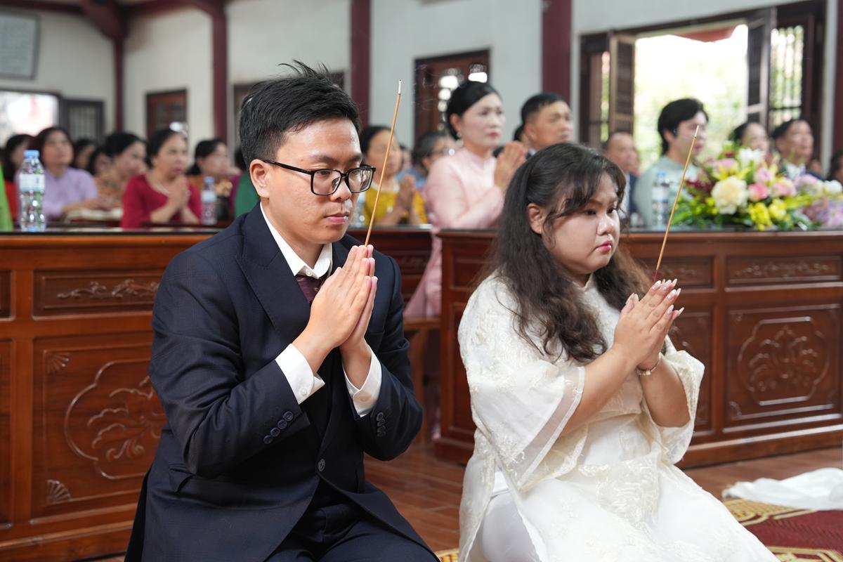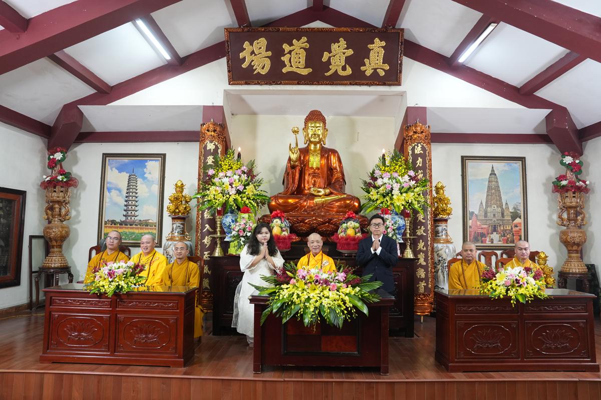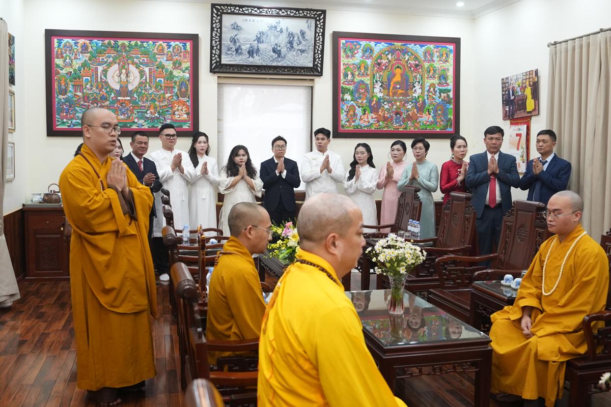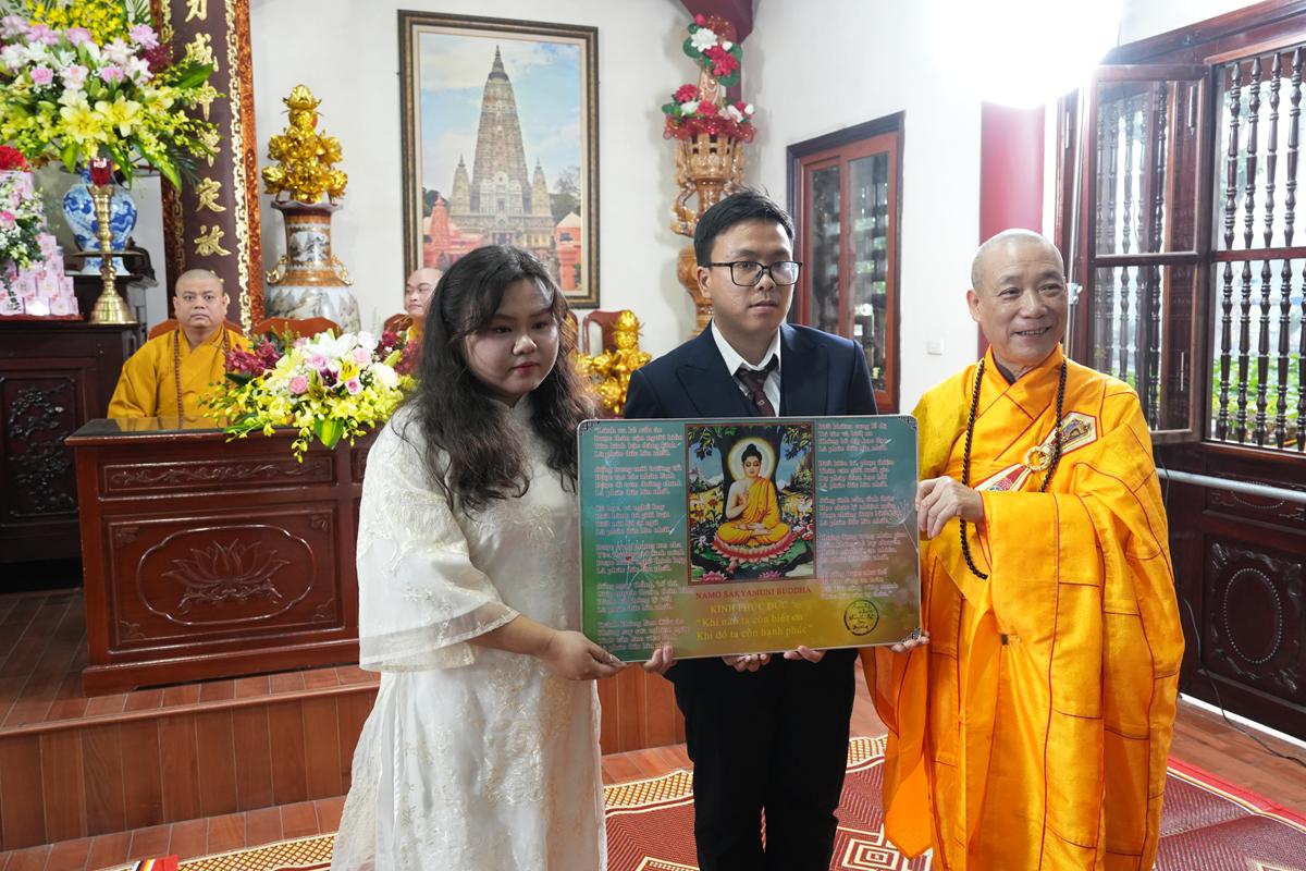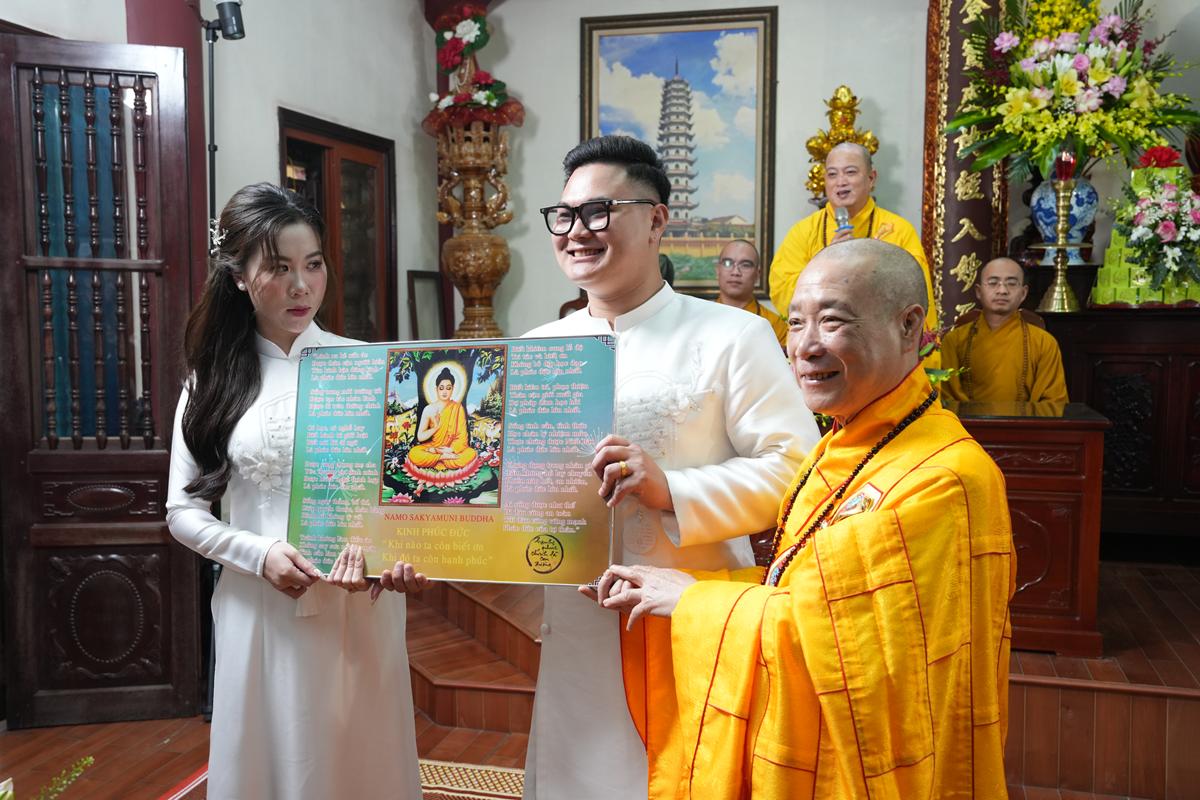 Cuối buổi lễ, Hòa thượng trụ trì cùng chư tôn đức và toàn thể đại chúng đã làm lễ chúc phúc cho ba đôi trẻ “trăm năm tình viên mãn, bạc đầu nghĩa phu thê”.