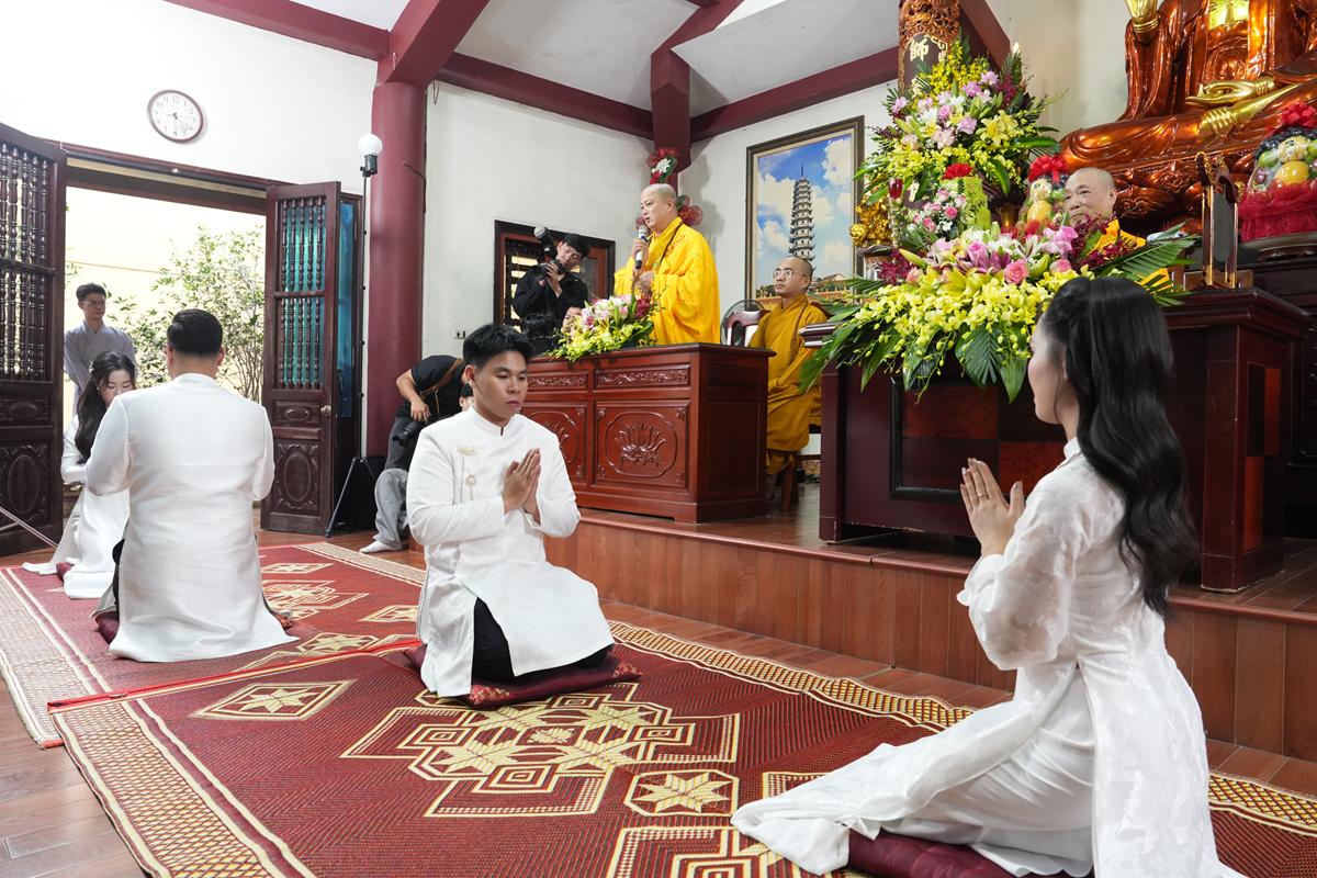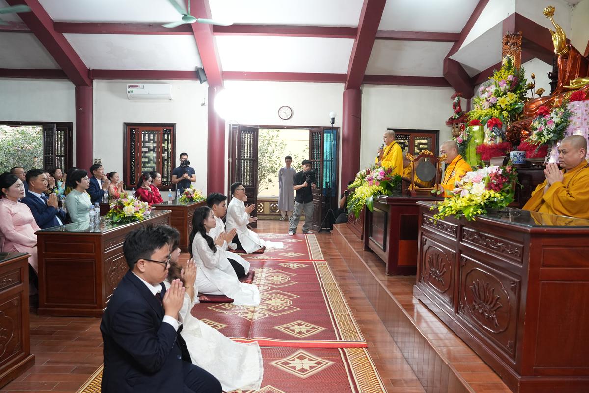 Trước khi cử hành nghi lễ hằng thuận, ba đôi bạn trẻ đã được Hòa thượng trụ trì và chư Tăng tác pháp quy y Tam Bảo và trao truyền Ngũ Giới để làm kim chỉ nam cho cuộc sống hiện tại. Ba đôi tân lang tân nương đã được lắng nghe Hòa thượng trụ trì Thích Bảo Nghiêm giảng giải về đạo nghĩa vợ chồng trong kinh Thiện Sinh. Hòa thượng khuyến tấn ba đôi trẻ phải sống trọn vẹn bổn phận làm vợ và làm chồng, làm dâu hiền, rể thảo cùng xây dựng hạnh phúc gia đình.