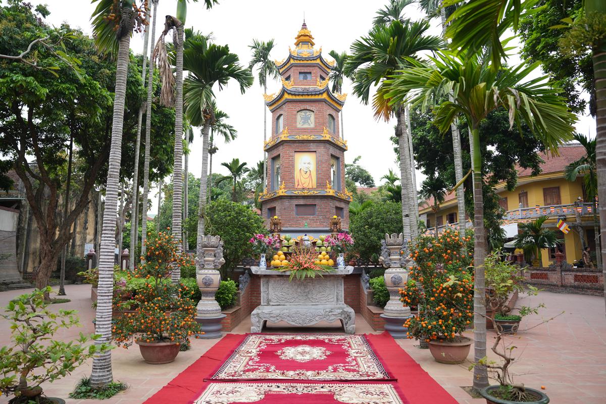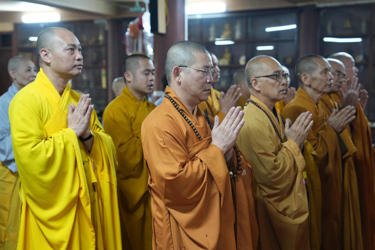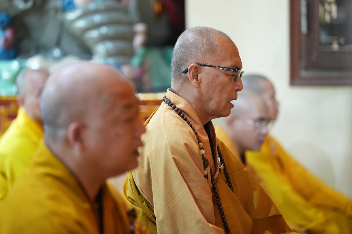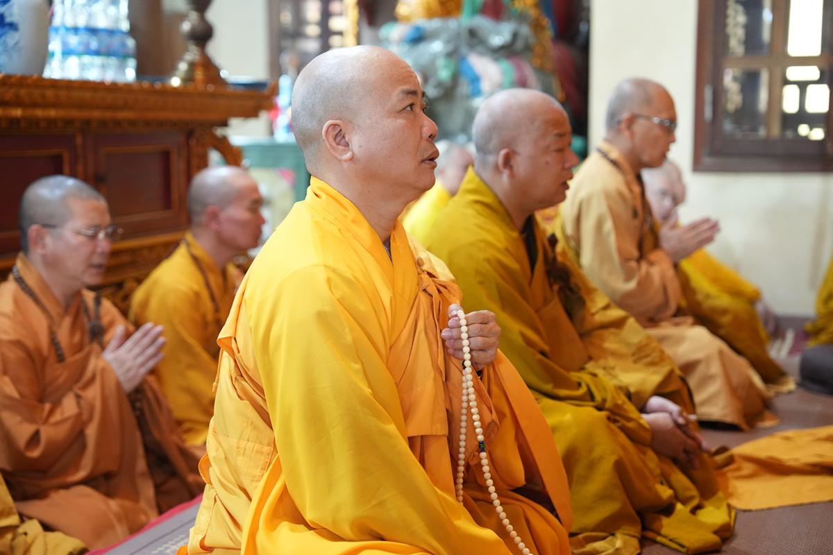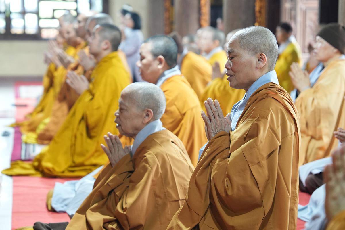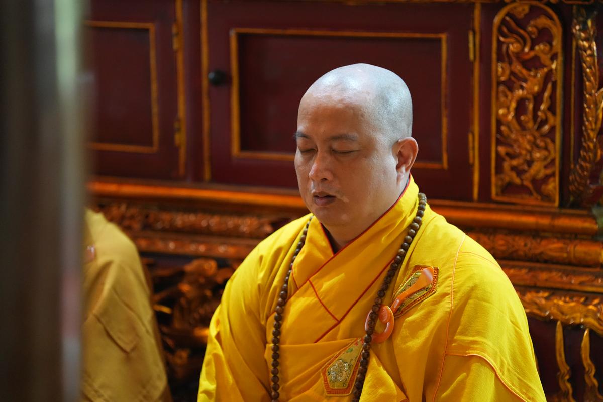 Trong không khí trang nghiêm nơi chốn Tổ, chư tôn đức đã thành kính cử hành nghi thức cúng Phật, cúng Tổ, sau đó vân tập trước Tam Bảo tụng thời Kinh A Di Đà huân tu, nhất tâm hướng lòng tưởng niệm bậc tôn túc khả kính đã trọn đời hiến dâng cho Đạo pháp và Dân tộc. Sau thời kinh, chư tôn đức cùng đại chúng trang nghiêm nhiễu quanh bảo tháp thờ Đức Đệ nhị Pháp chủ, dâng nén tâm hương tri ân và kính ngưỡng trước đạo phong cao khiết của bậc long tượng thiền môn.