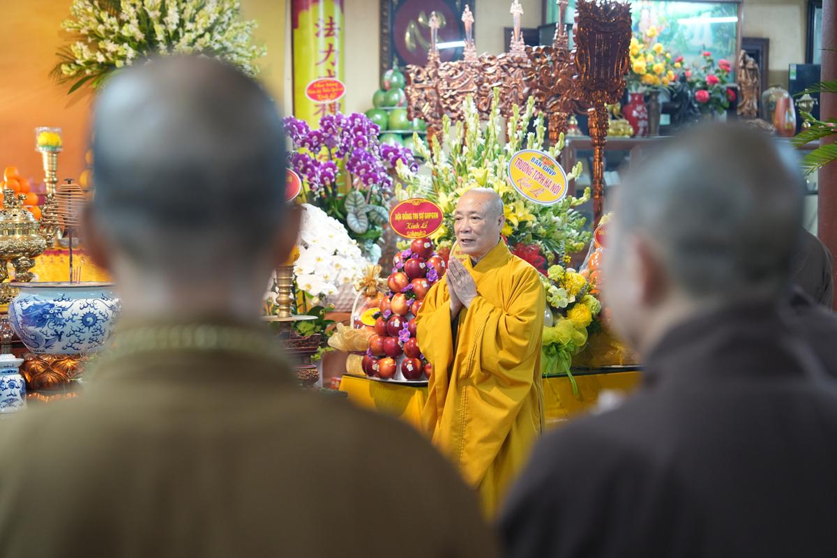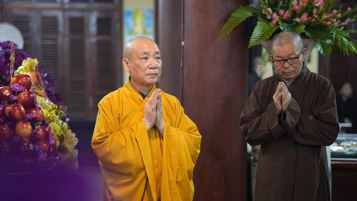 Với tất cả tấm lòng chí thành chí kính, chư tôn đức lãnh đạo Trung ương Giáo hội Phật giáo Việt Nam đã quang lâm nơi Giác linh đường, thành kính dâng hương đỉnh lễ tưởng niệm, nhất tâm cầu nguyện giác linh Cố Đại lão Hòa thượng cao đăng Phật quốc, thùy từ chứng giám và gia hộ cho Phật pháp xương minh, Tăng đoàn hòa hợp, quốc thái dân an, muôn loài chúng sinh đồng triêm lợi lạc.