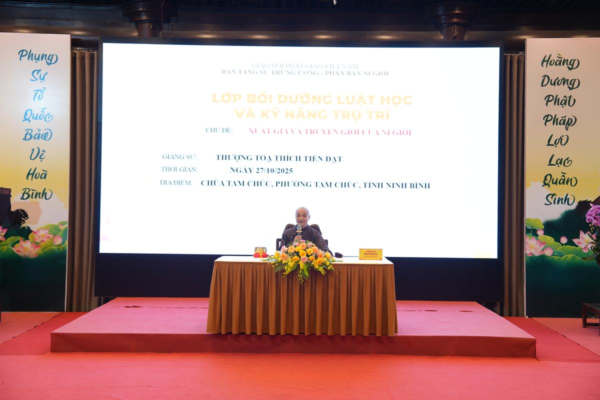 Ngày 27/10/2025, trong không khí trang nghiêm tại chùa Tam Chúc (tỉnh Ninh Bình), Thượng tọa Thích Tiến Đạt – Phó Viện trưởng Viện Nghiên cứu Phật học Việt Nam tại Hà Nội tiếp tục có buổi pháp thoại ý nghĩa với Ni chúng trong Khóa Bồi dưỡng Luật học và Kỹ năng trụ trì, với chủ đề: “Xuất gia và truyền giới của Ni giới”.