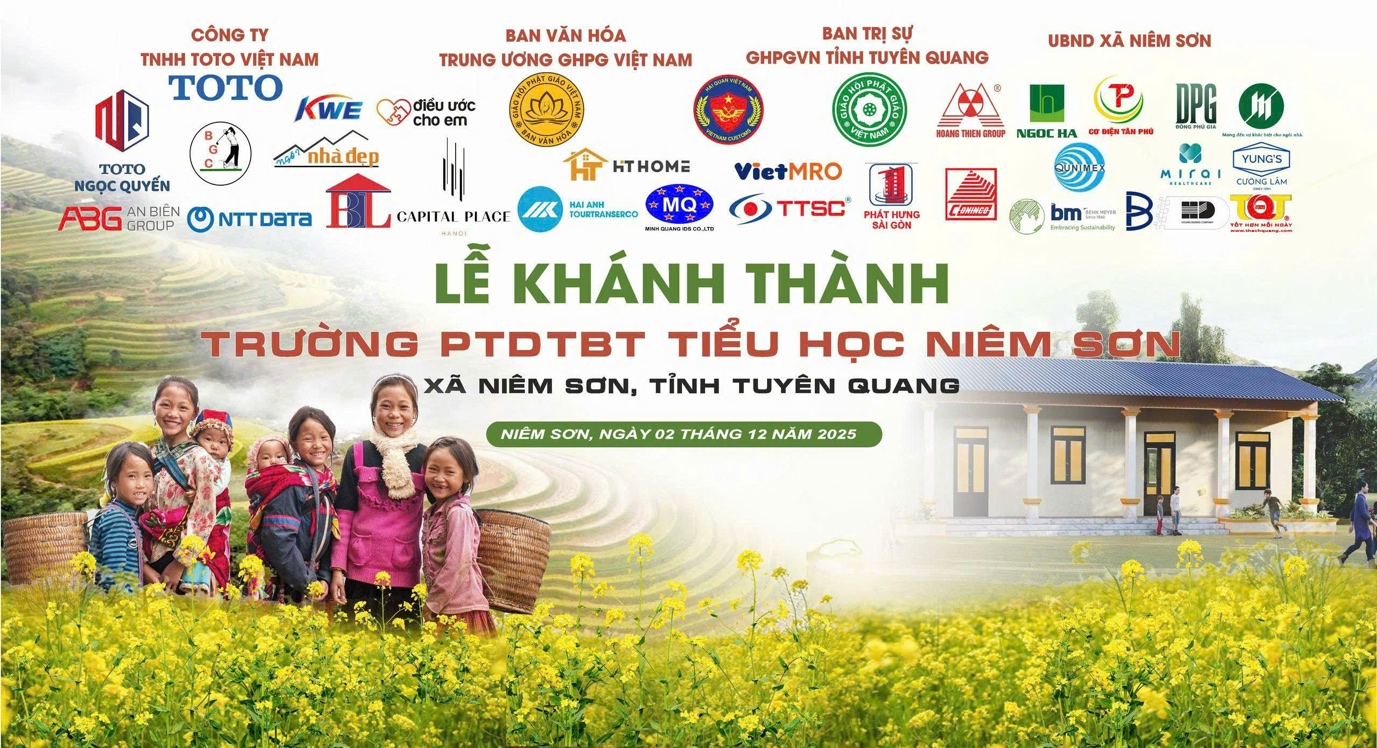 Vừa qua, tại Trường Phổ thông Dân tộc Bán trú Tiểu học Niêm Sơn (xã Niêm Sơn, tỉnh Tuyên Quang), Ban Văn hoá Trung ương Giáo hội Phật giáo Việt Nam phối hợp với Ban Trị sự GHPGVN tỉnh Tuyên Quang, chính quyền địa phương, Ban Giám hiệu nhà trường đã tổ chức Lễ cắt băng khánh thành Nhà bán trú trường PTDTBT Tiểu học Niêm Sơn.