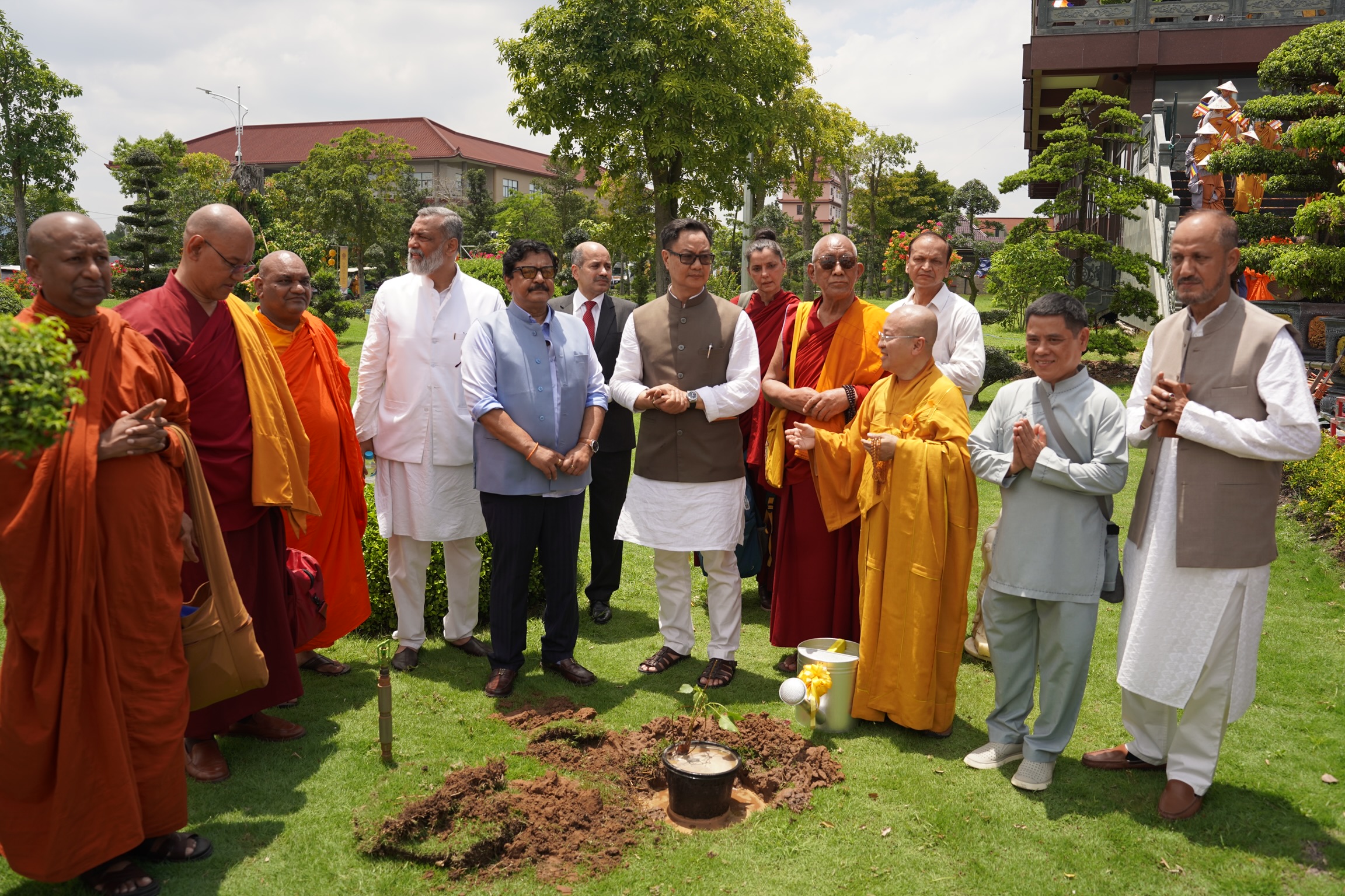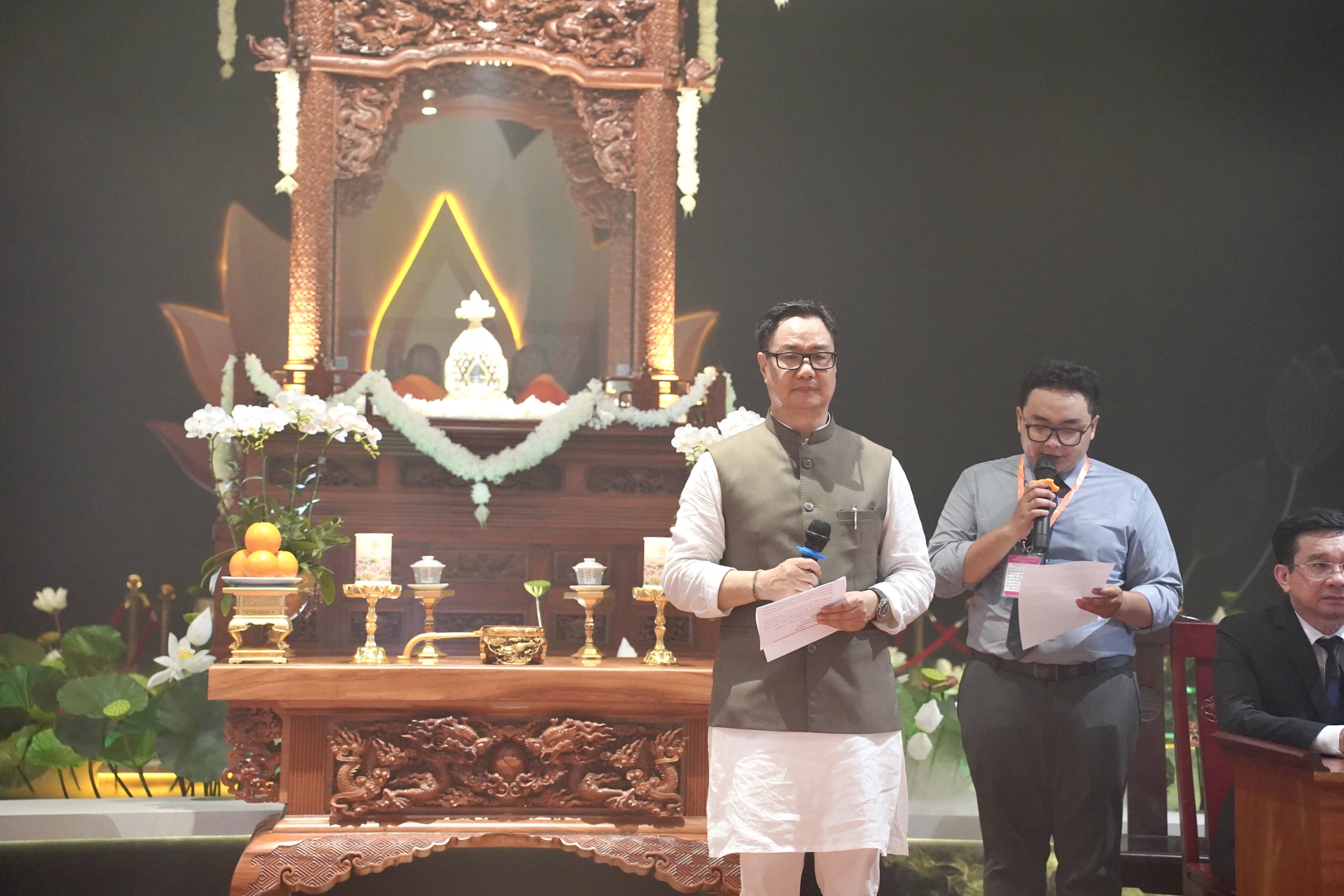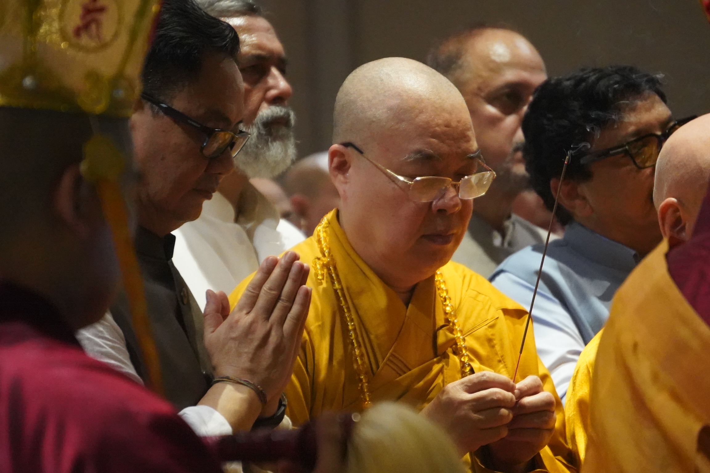 Chủ trì lễ tiếp đón và cung rước Xá-lợi có Đức Đệ tứ Pháp chủ – Đại lão Hòa thượng Thích Trí Quảng và Đức Phó Pháp chủ Hội đồng Chứng minh kiêm Chủ tịch Hội đồng Trị sự – Trưởng lão Hoà thượng Thích Thiện Nhơn cùng chư Tôn đức Giáo phẩm GHPGVN, đại diện Chính phủ, đoàn chuyên gia Ấn Độ cùng sự hiện diện của đông đảo Tăng Ni với pháp khí, nhạc lễ cổ truyền, cờ lọng và đoàn Phật tử dâng hoa, tất cả cùng hòa chung lòng tôn kính Đức Thế Tôn.