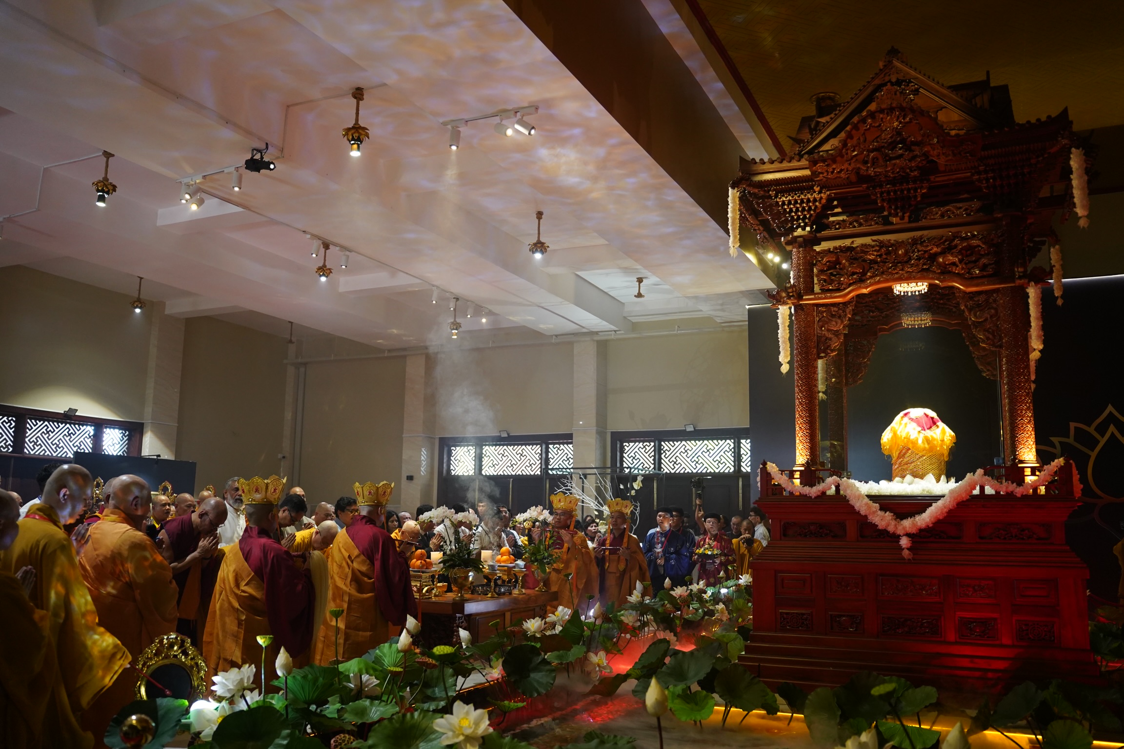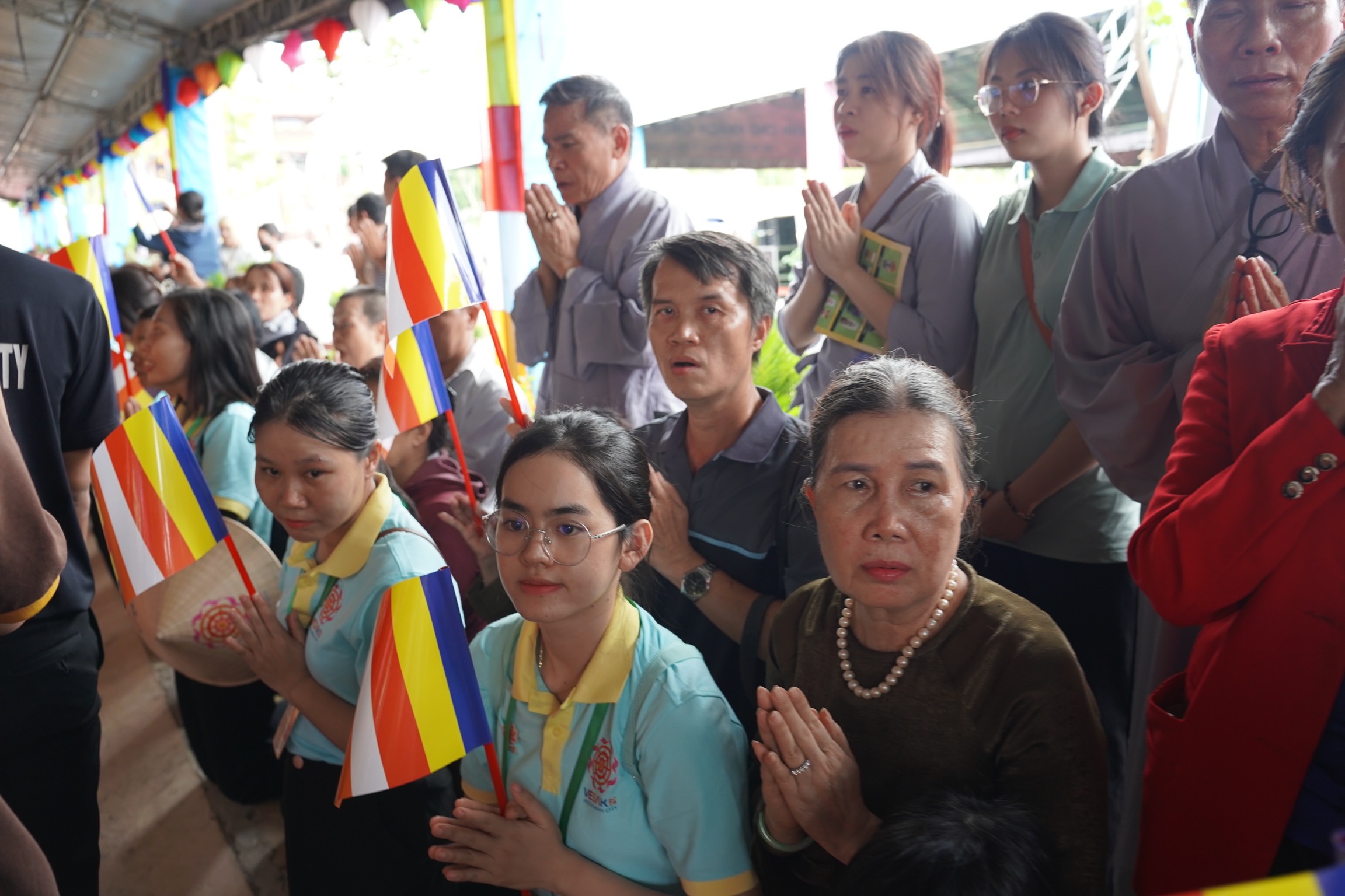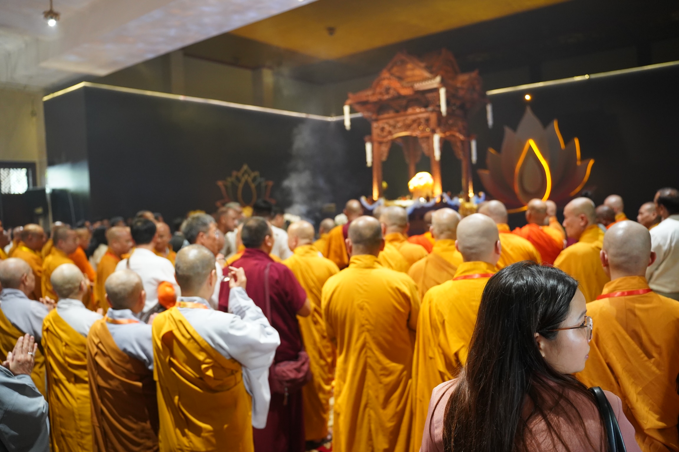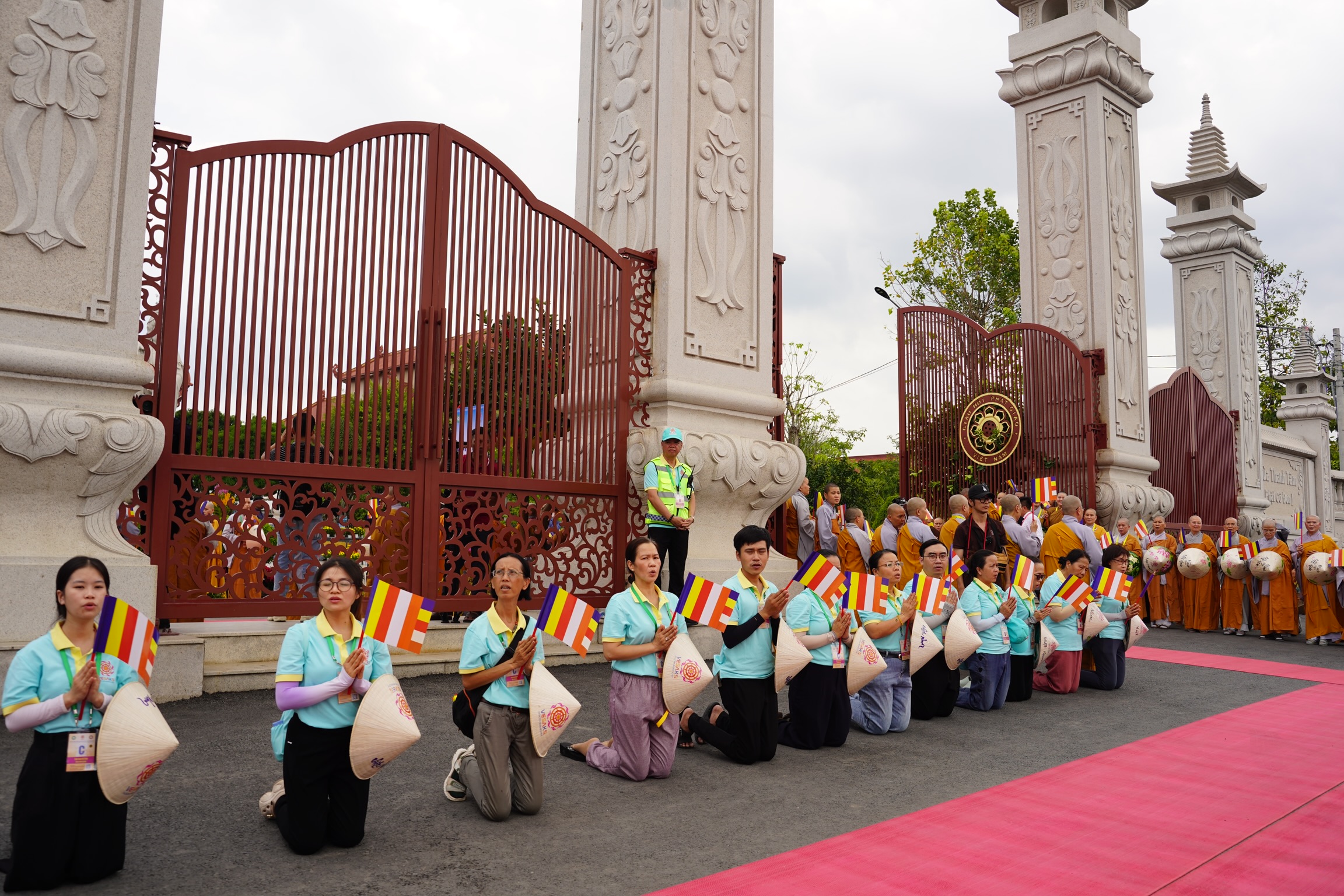 Nơi đây, hàng ngàn Phật tử thành kính chắp tay cung nghinh đón sự hiện diện quý báu, biểu trưng cho từ quang và trí tuệ vô lượng của Đức Thế Tôn.