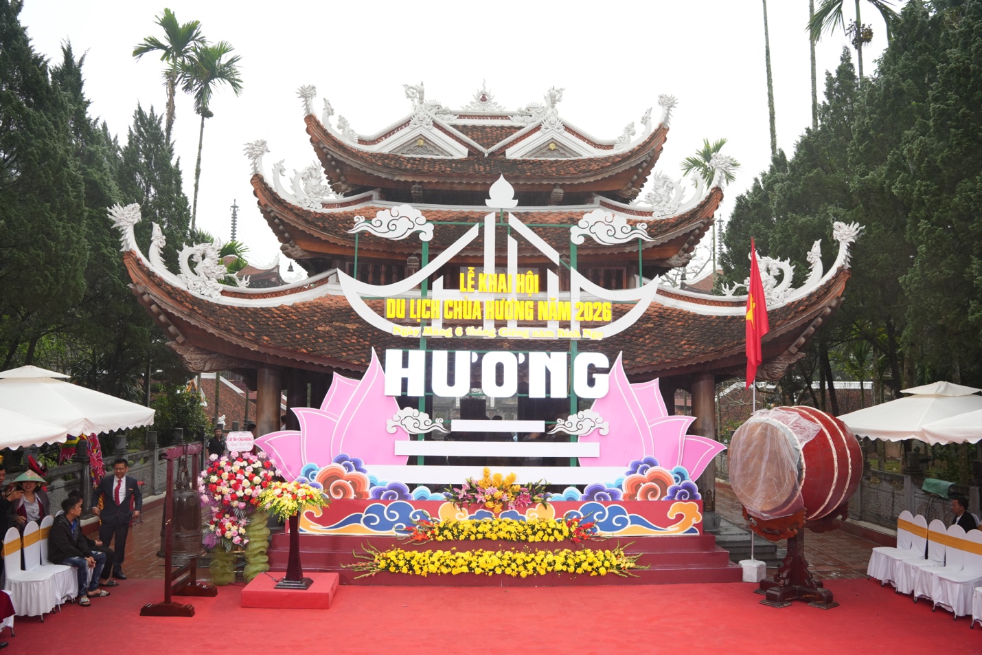 Sáng ngày 22/02/2026 (nhằm ngày mùng 6 tháng Giêng năm Bính Ngọ), tại Chùa Hương, thành phố Hà Nội, trong mưa xuân nặng hạt, hàng nghìn Phật tử và du khách thập phương đã đội mưa hành hương về Hương Sơn để tham dự lễ khai hội Du lịch Chùa Hương năm 2026.